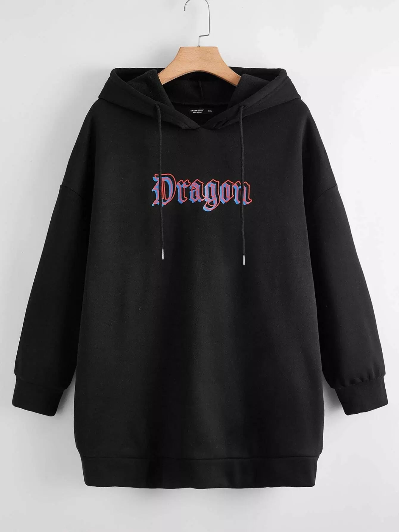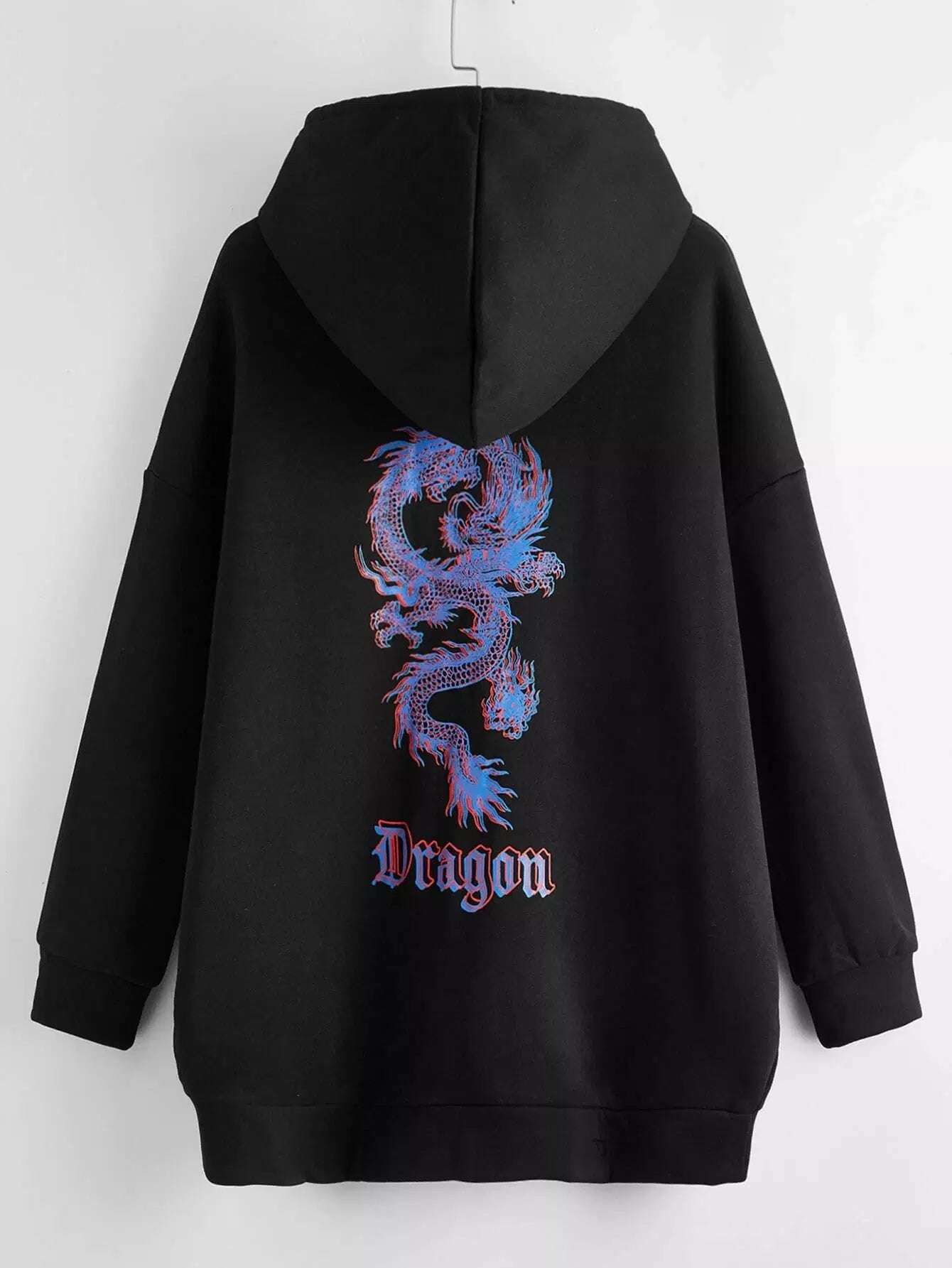 Plus Chinese Dragon Print Longline Hoodie