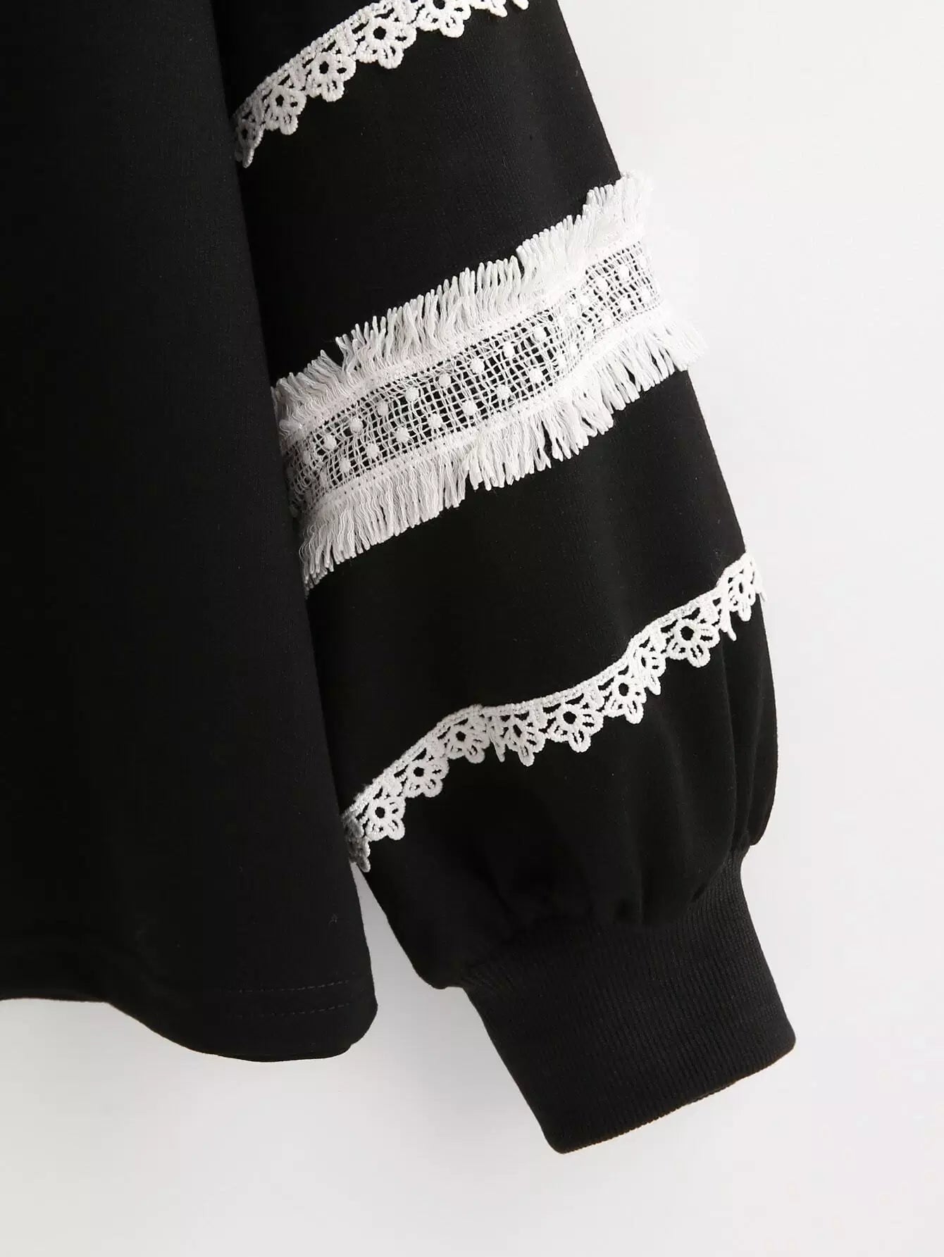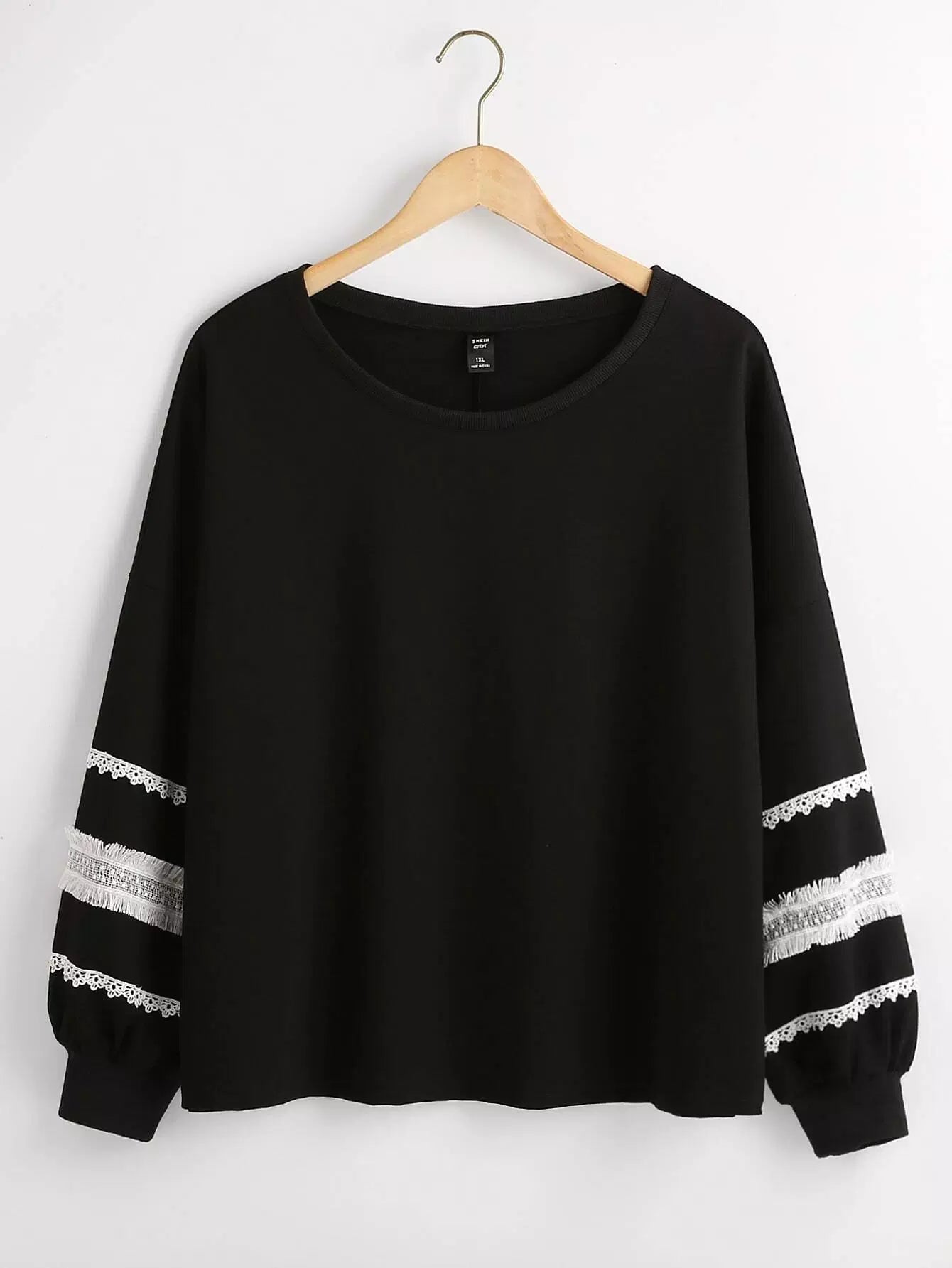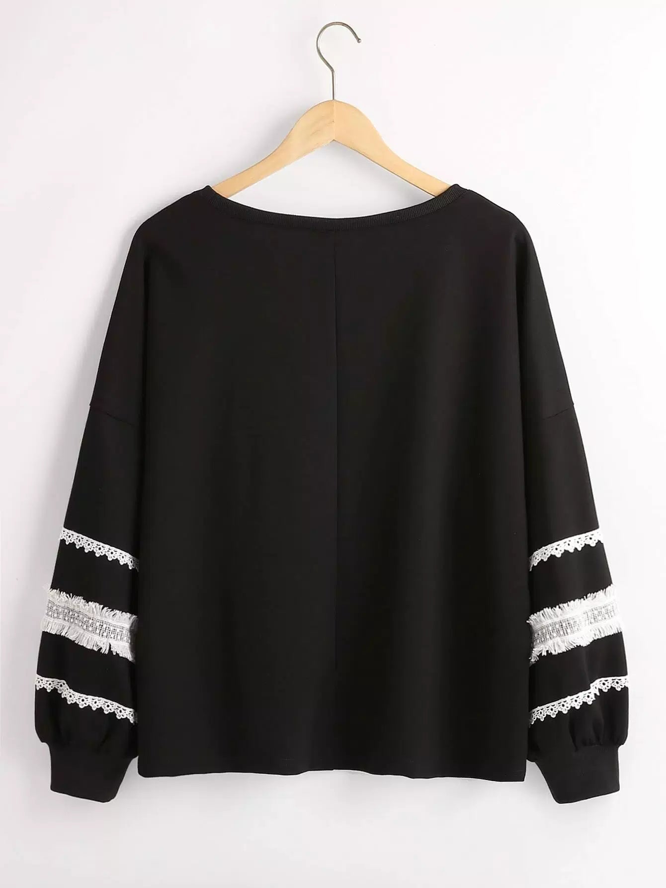Plus Contrast Guipure Lace Fringe Detail Sweatshirt