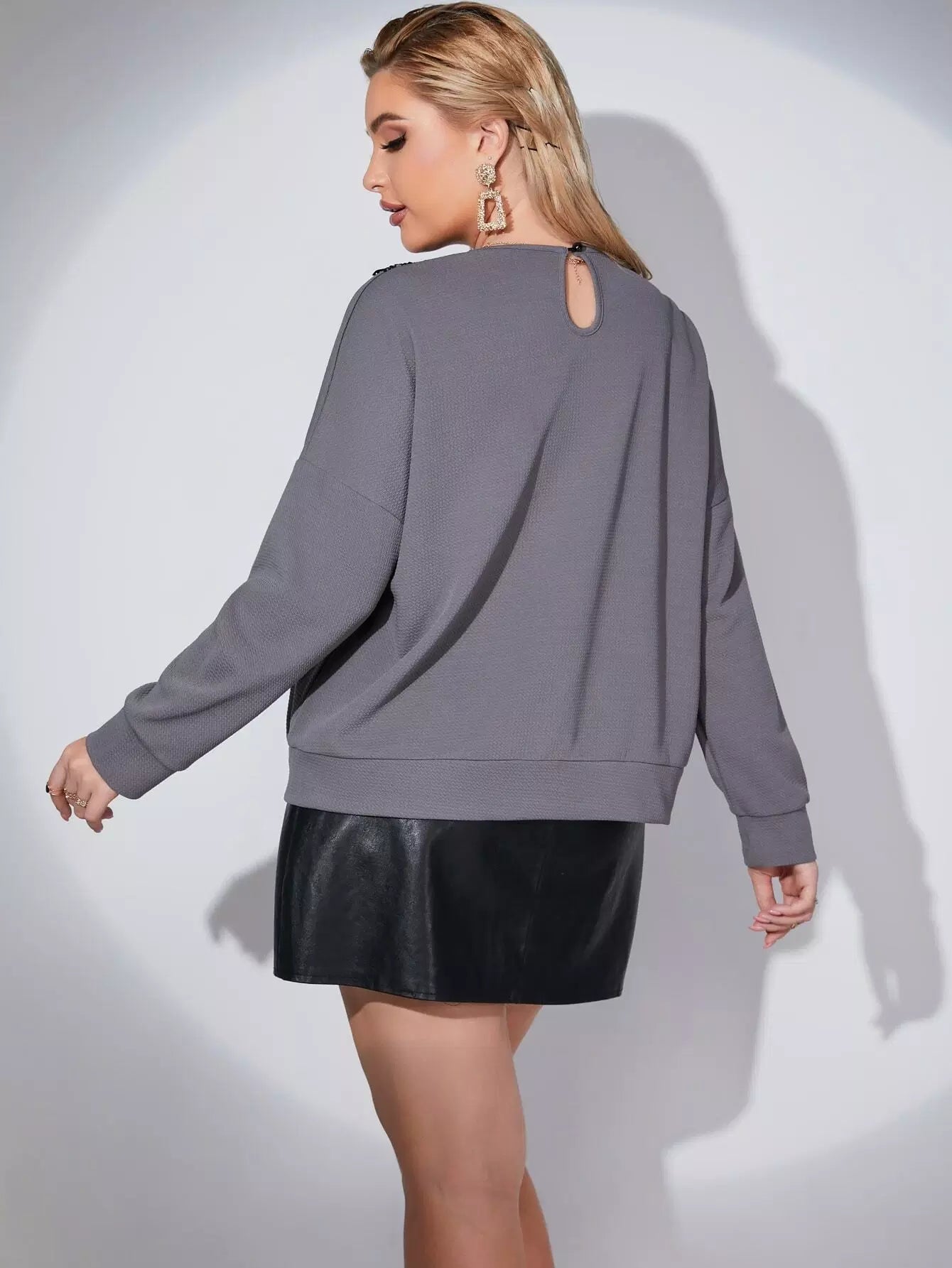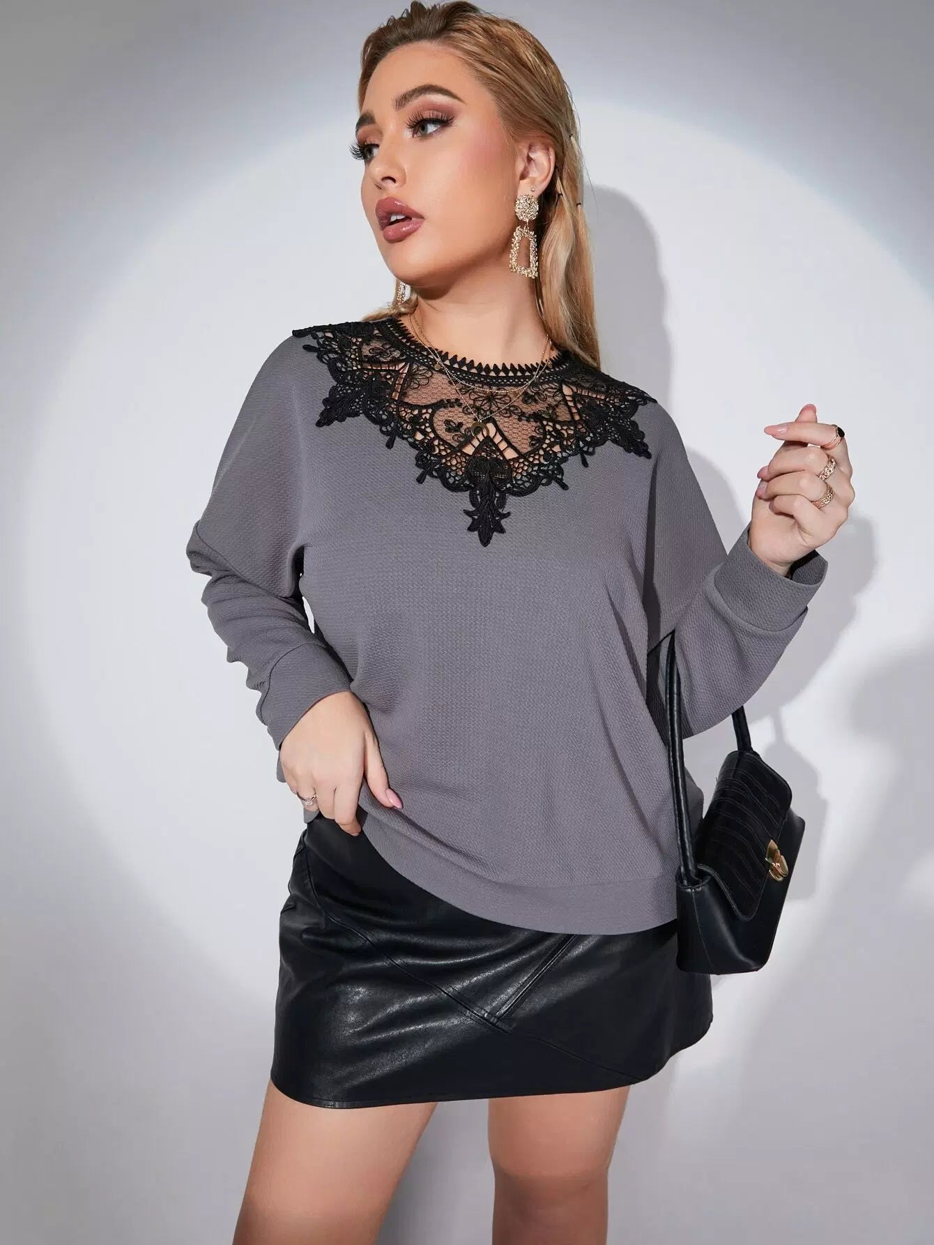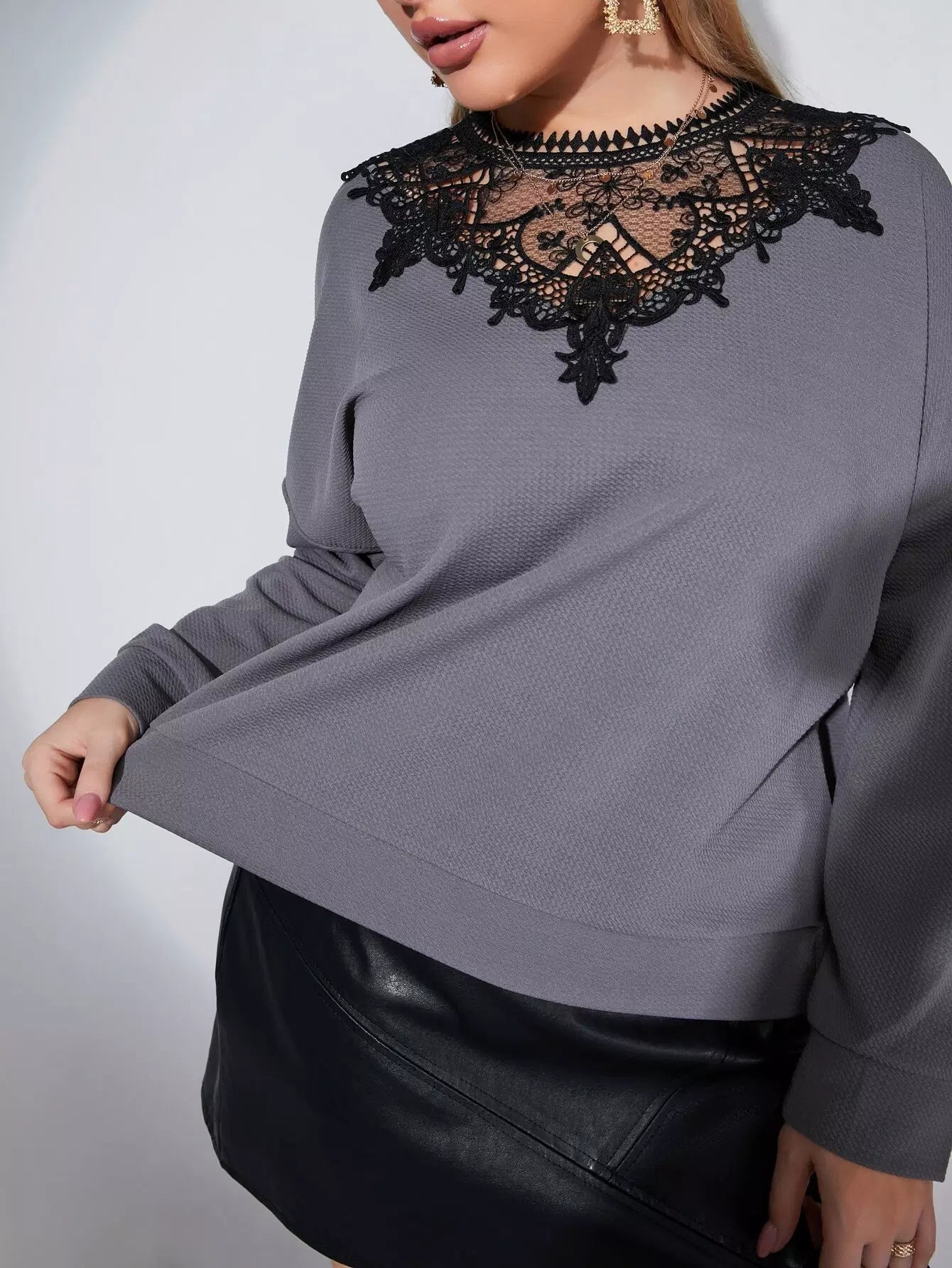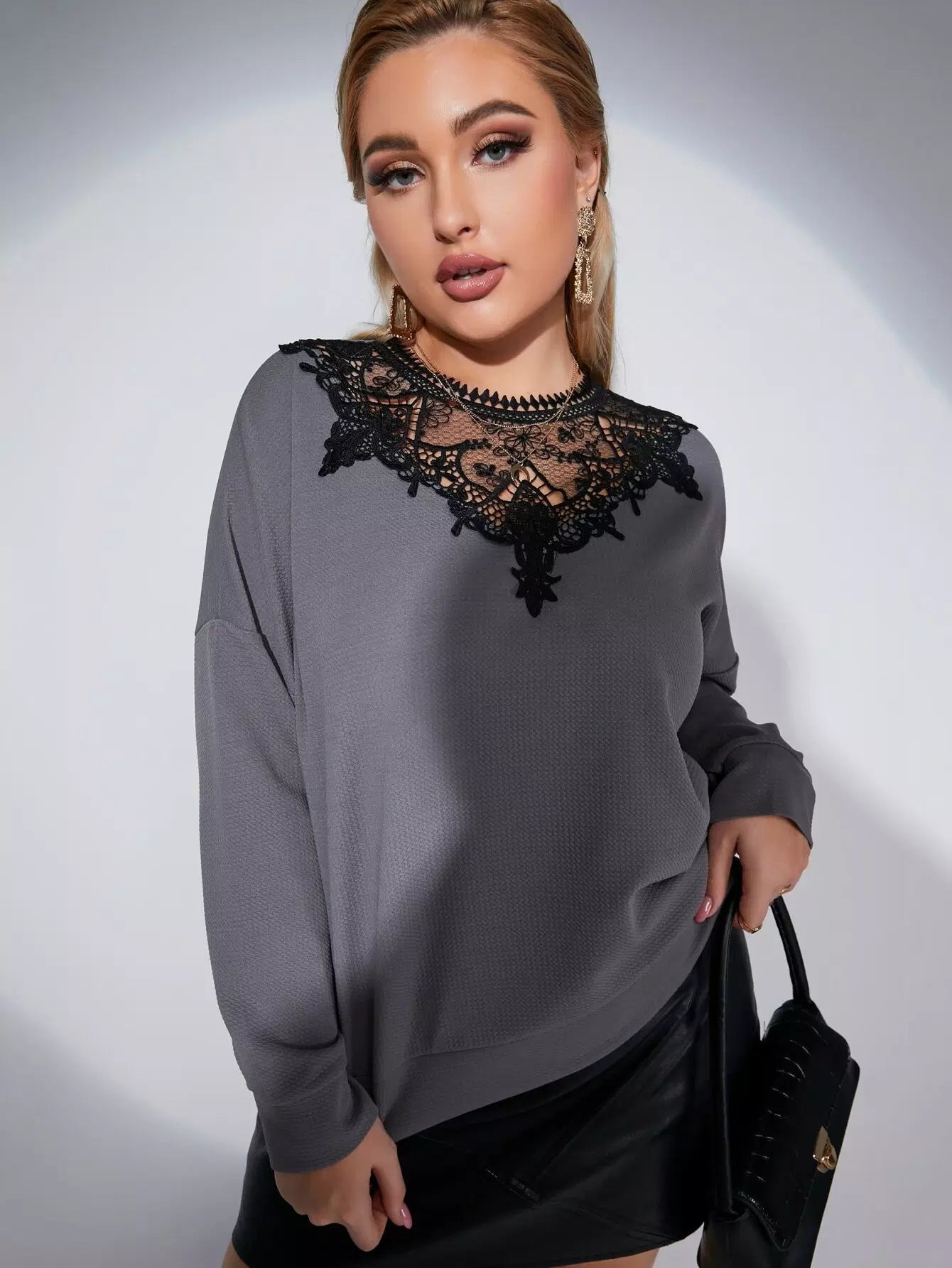 Plus Contrast Guipure Lace Keyhole Back Drop Shoulder Pullover