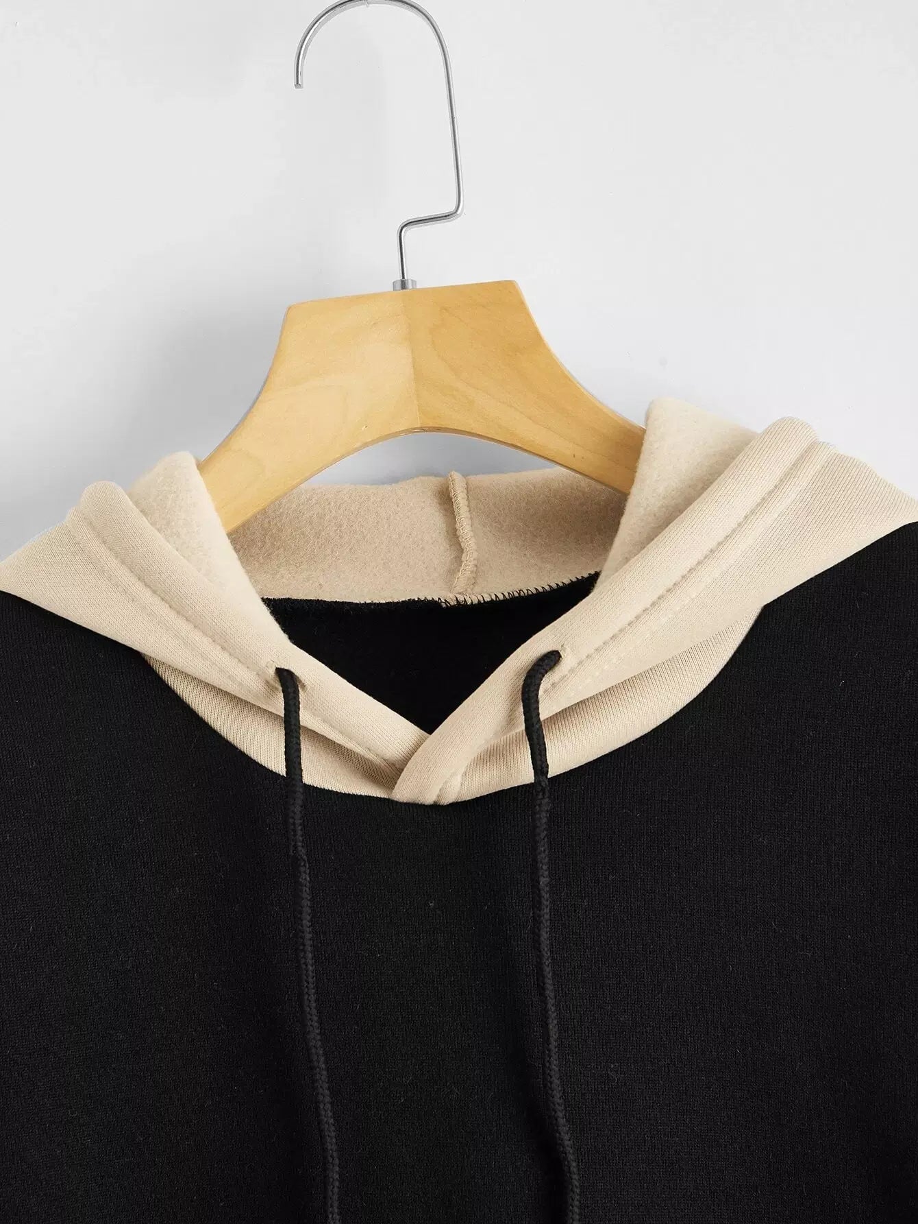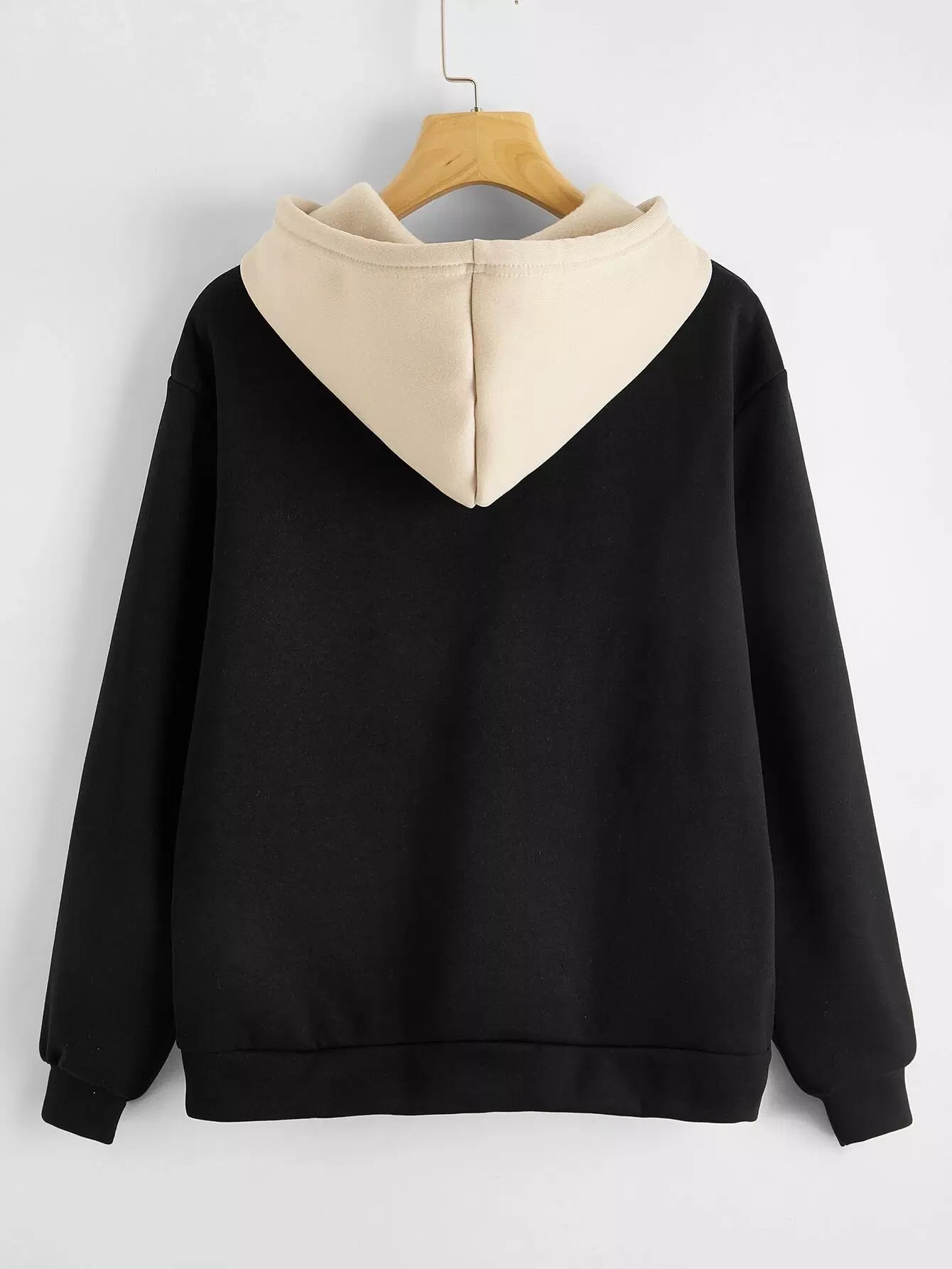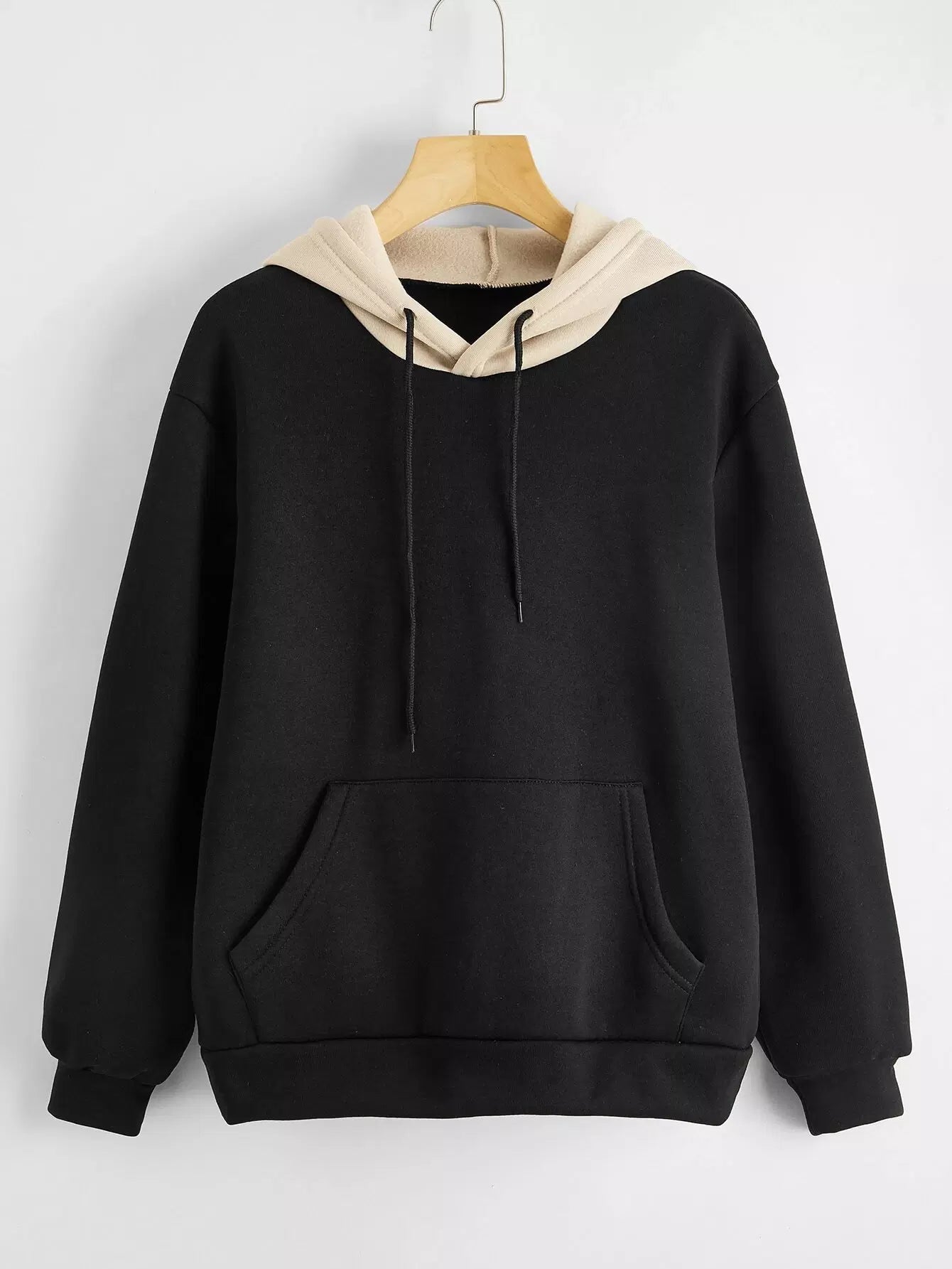 Women - Plus Contrast Hooded Drawstring Sweatshirt