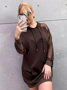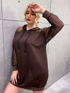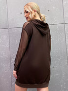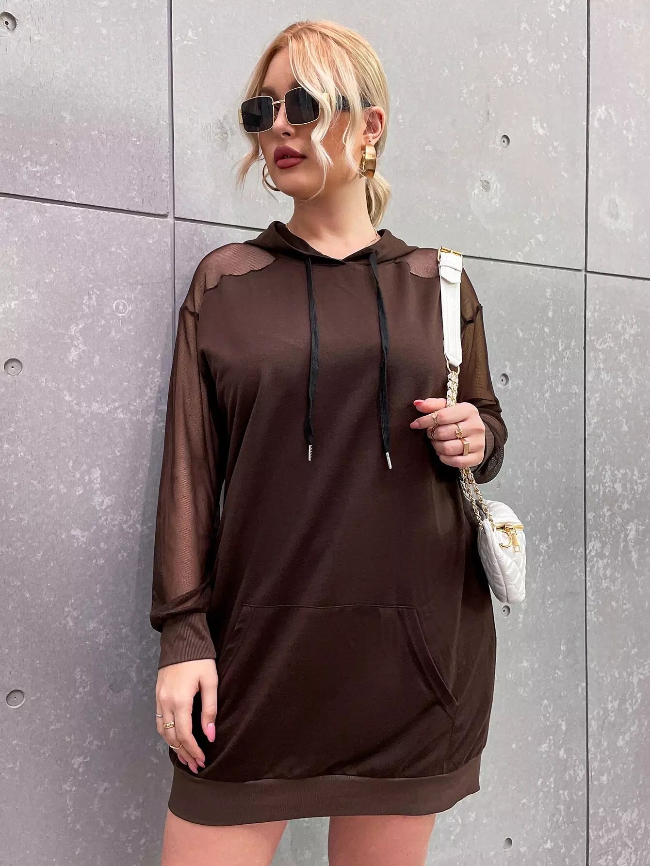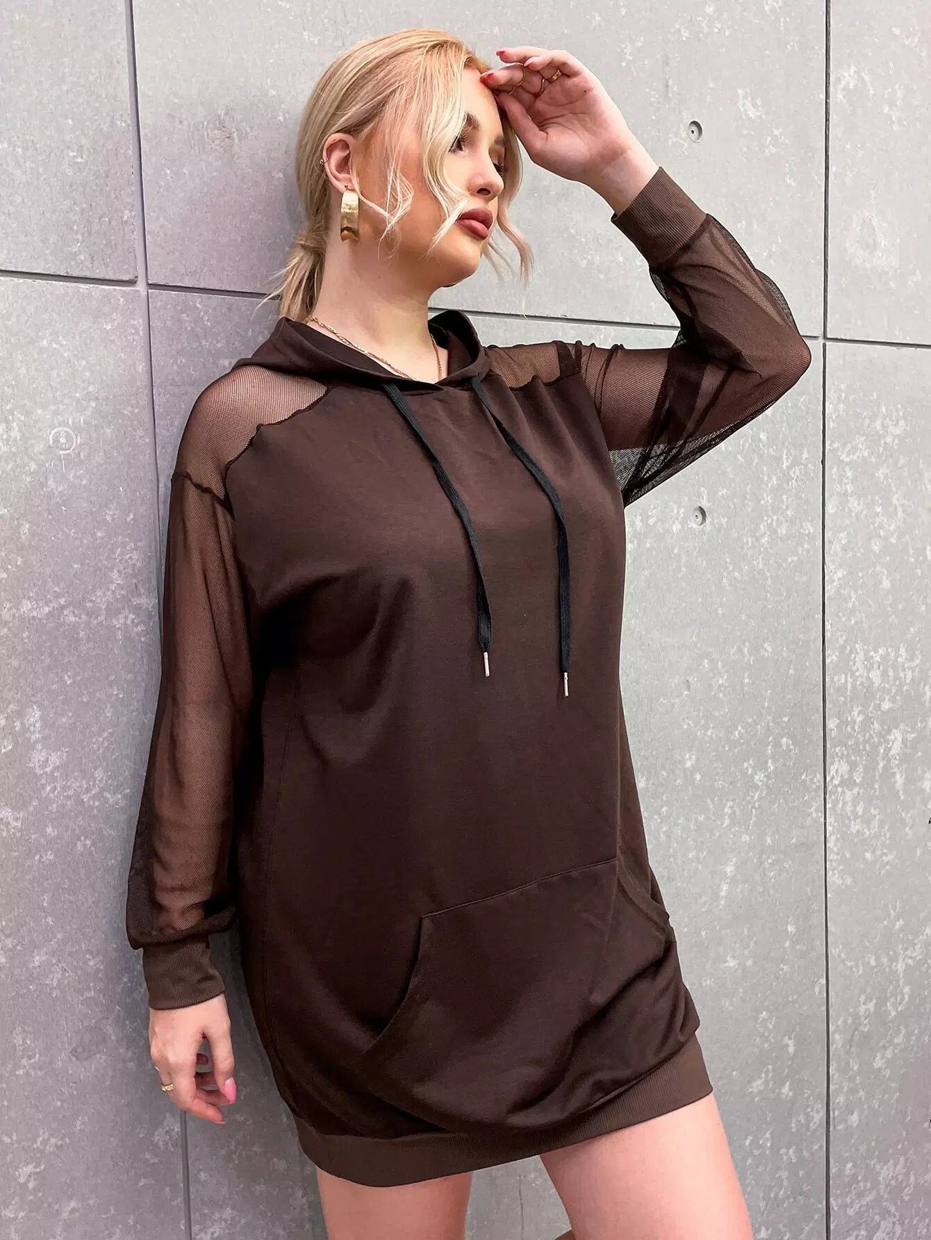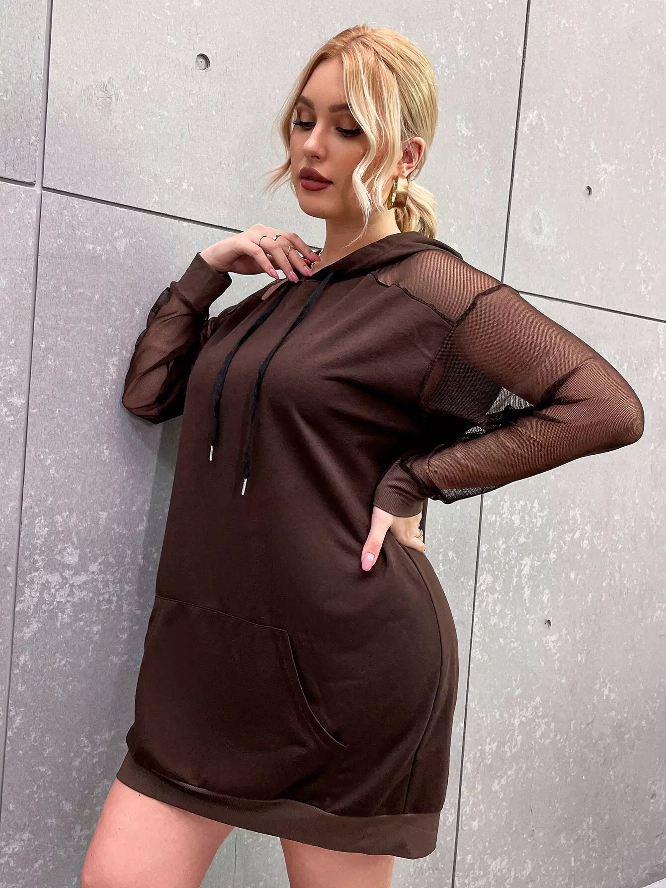 Plus Contrast Mesh Raglan Sleeve Hooded Sweatshirt Dress