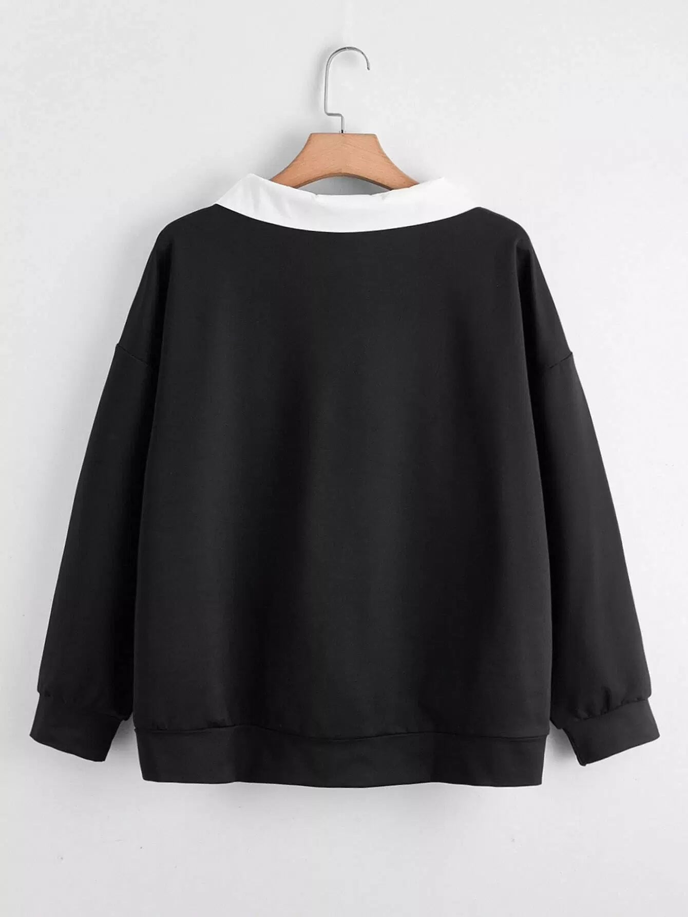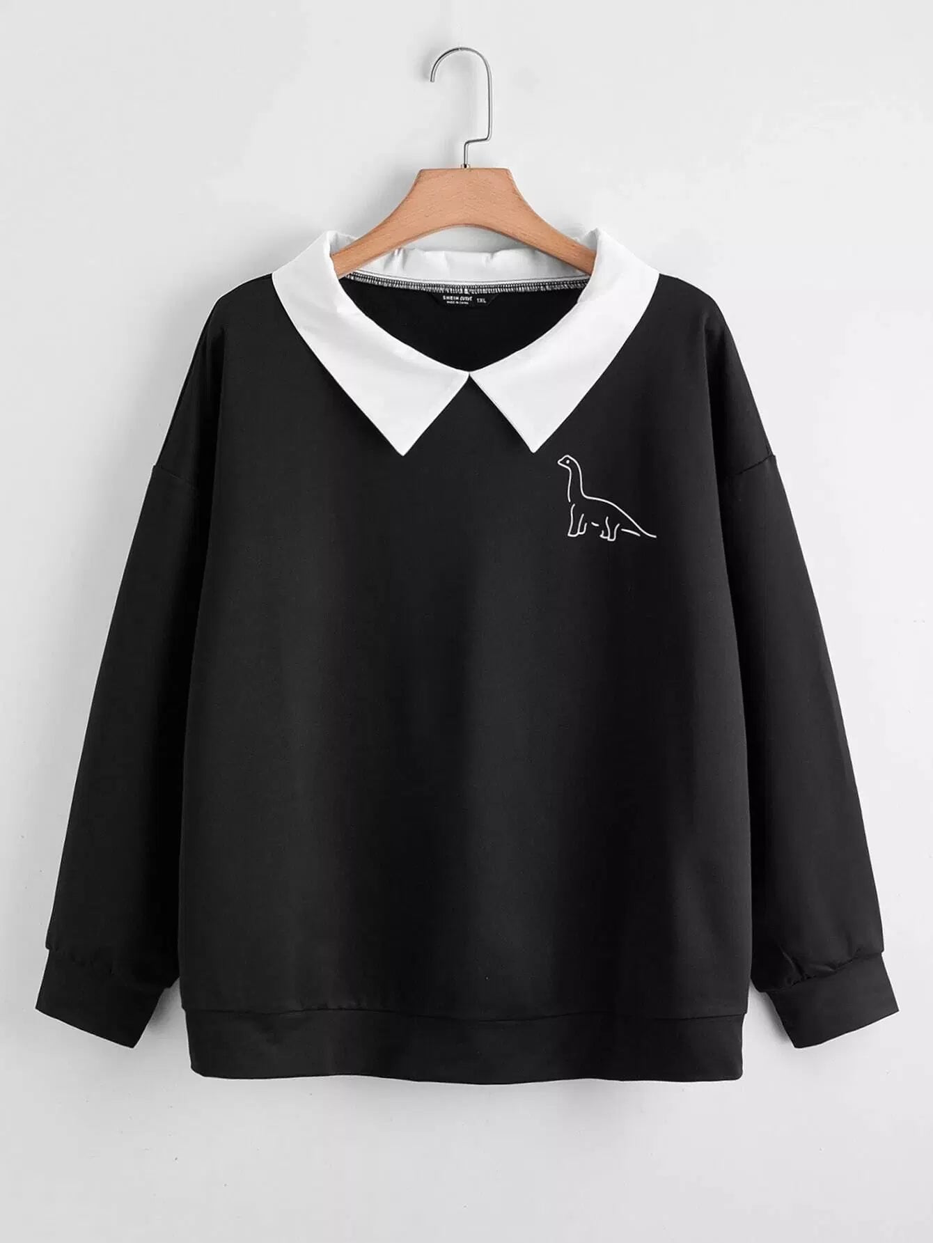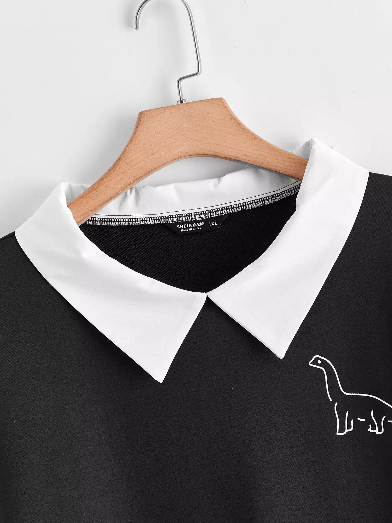 Plus Dinosaur Print Contrast Collar Sweatshirt