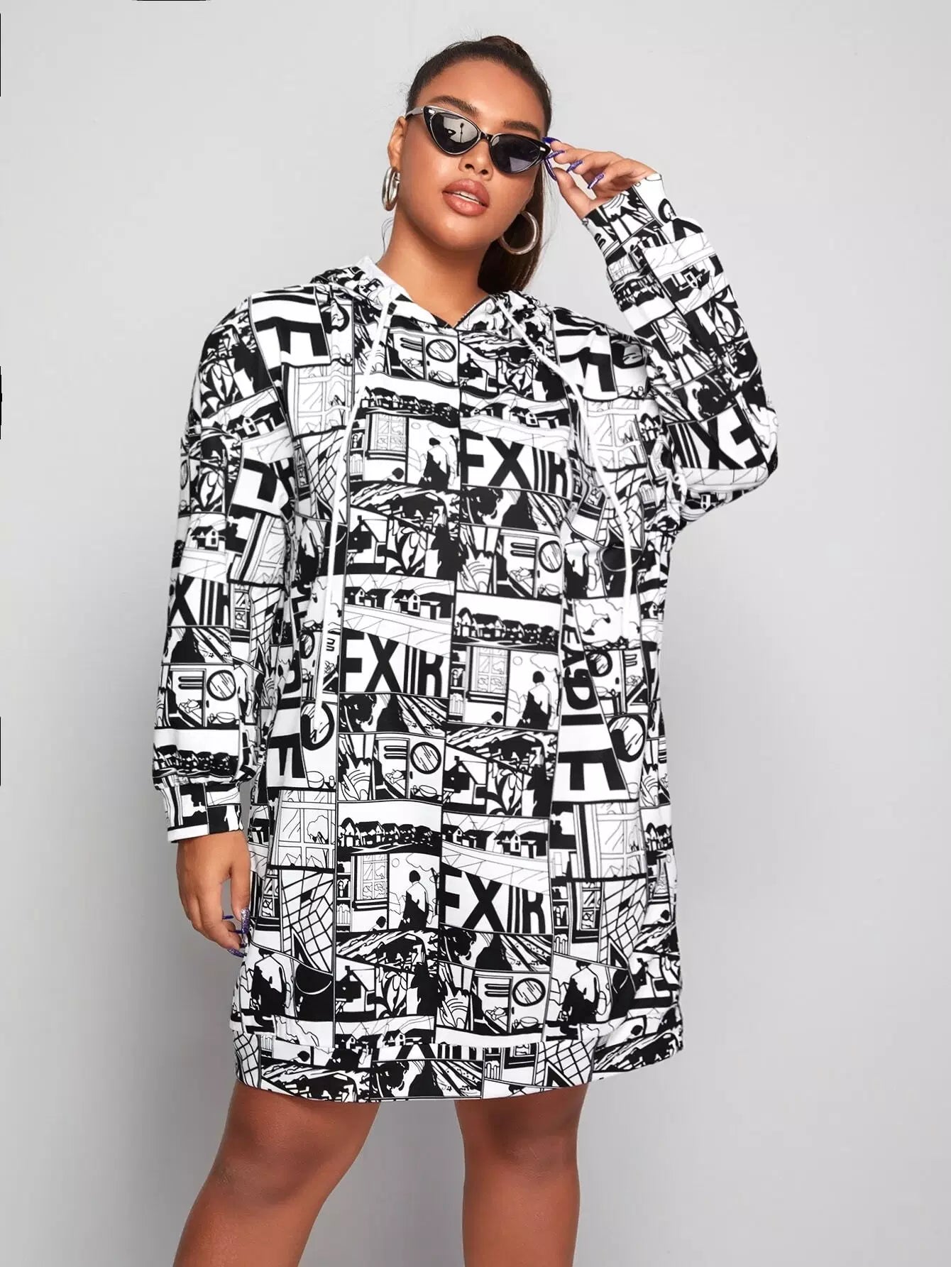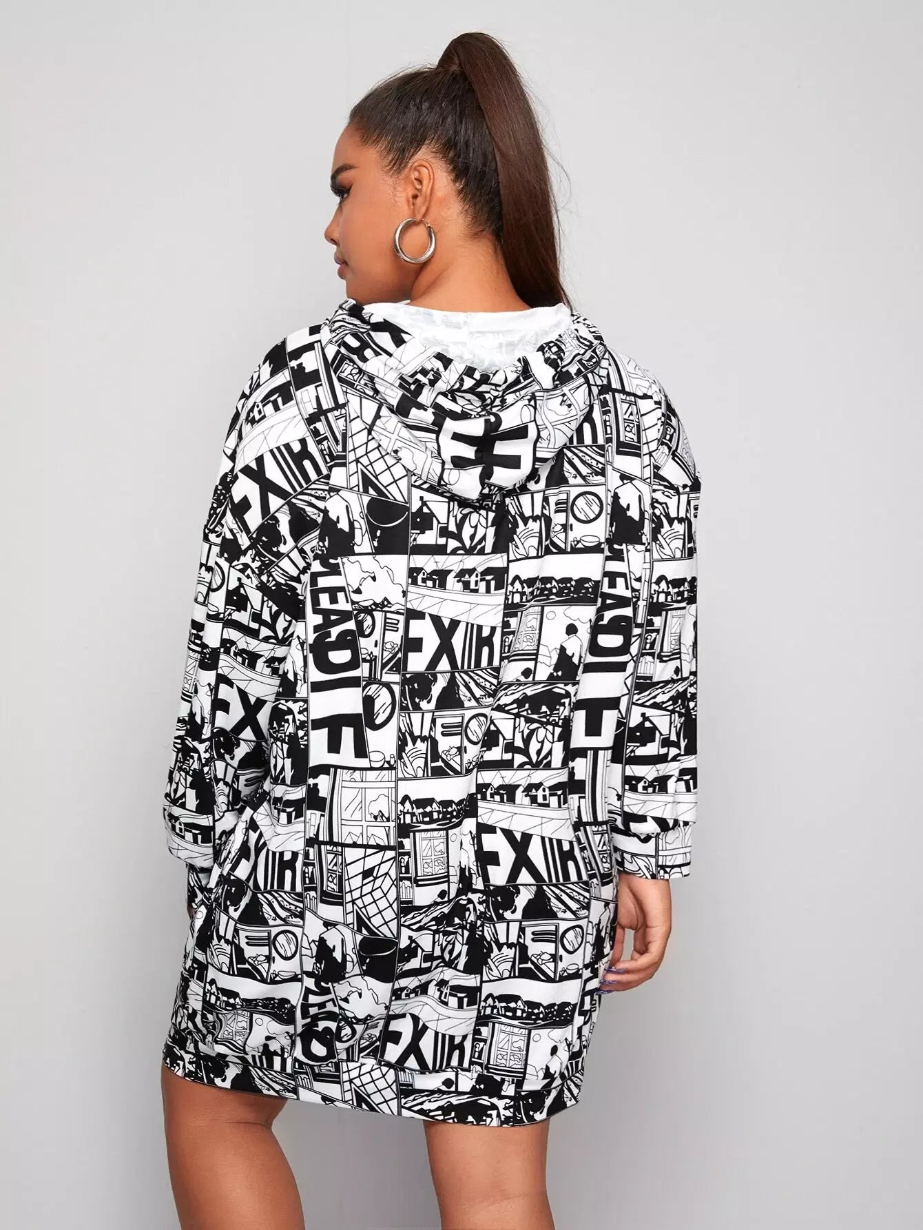 Plus Drawstring Detail Pop Art Print Sweatshirt Dress