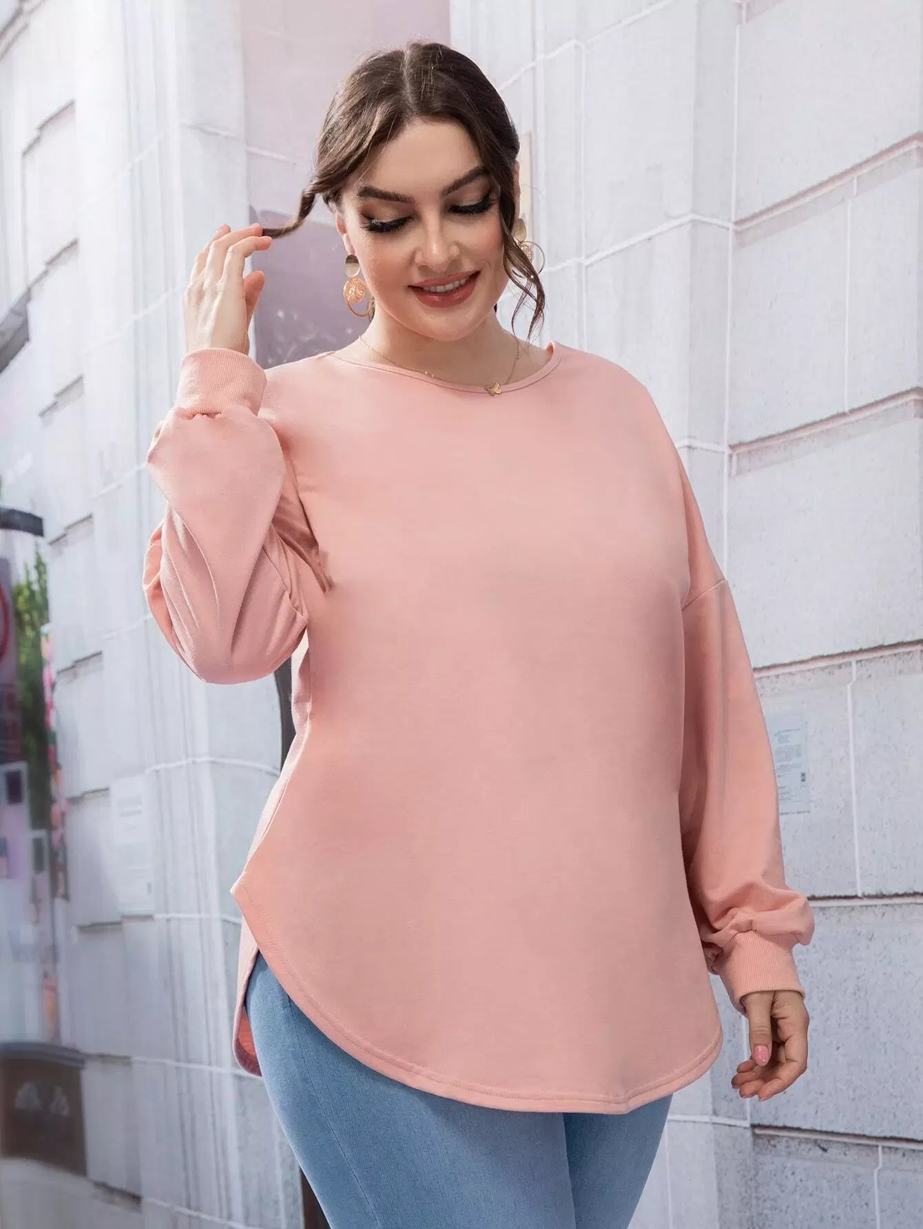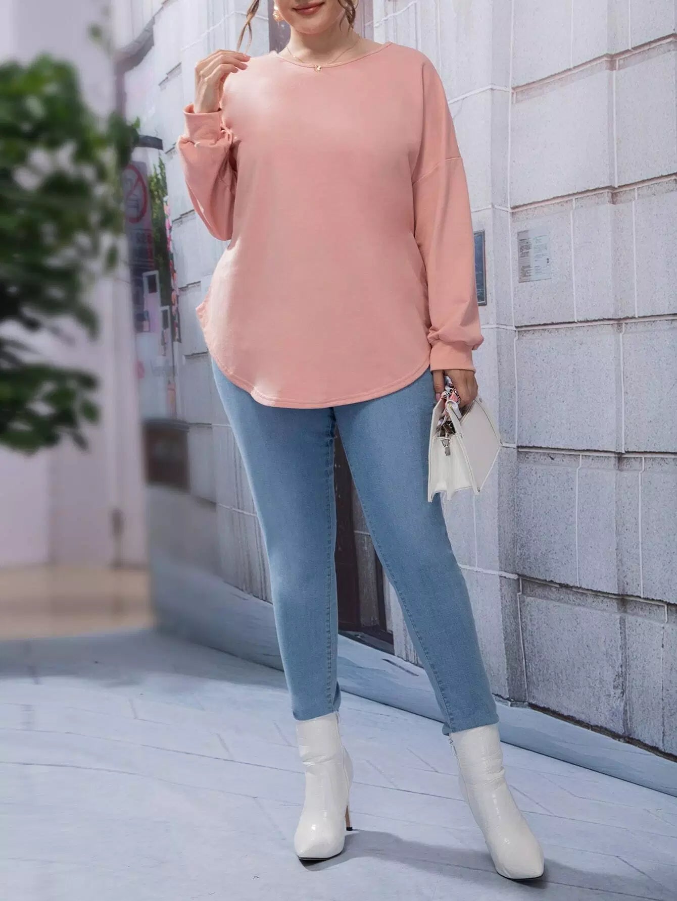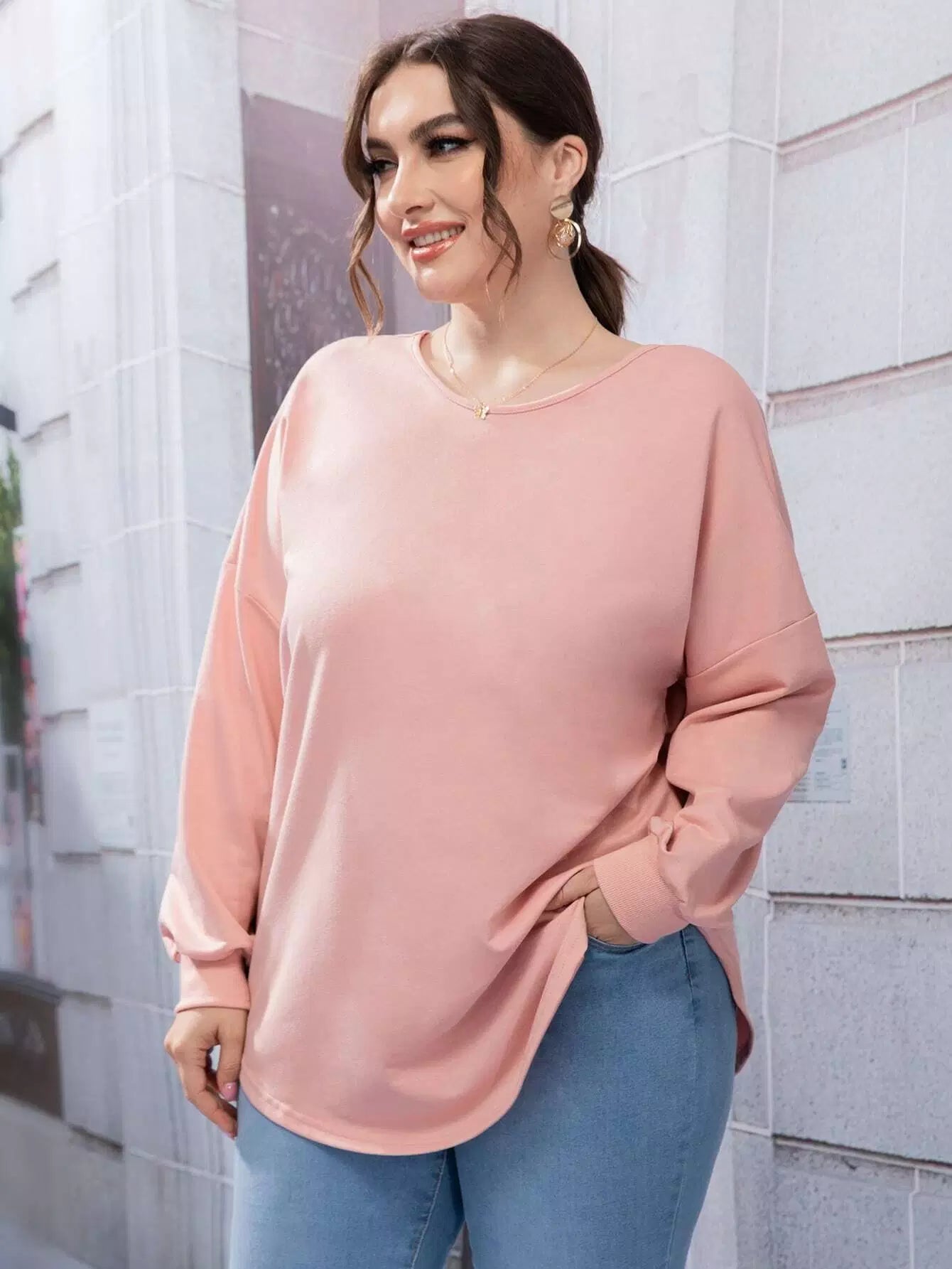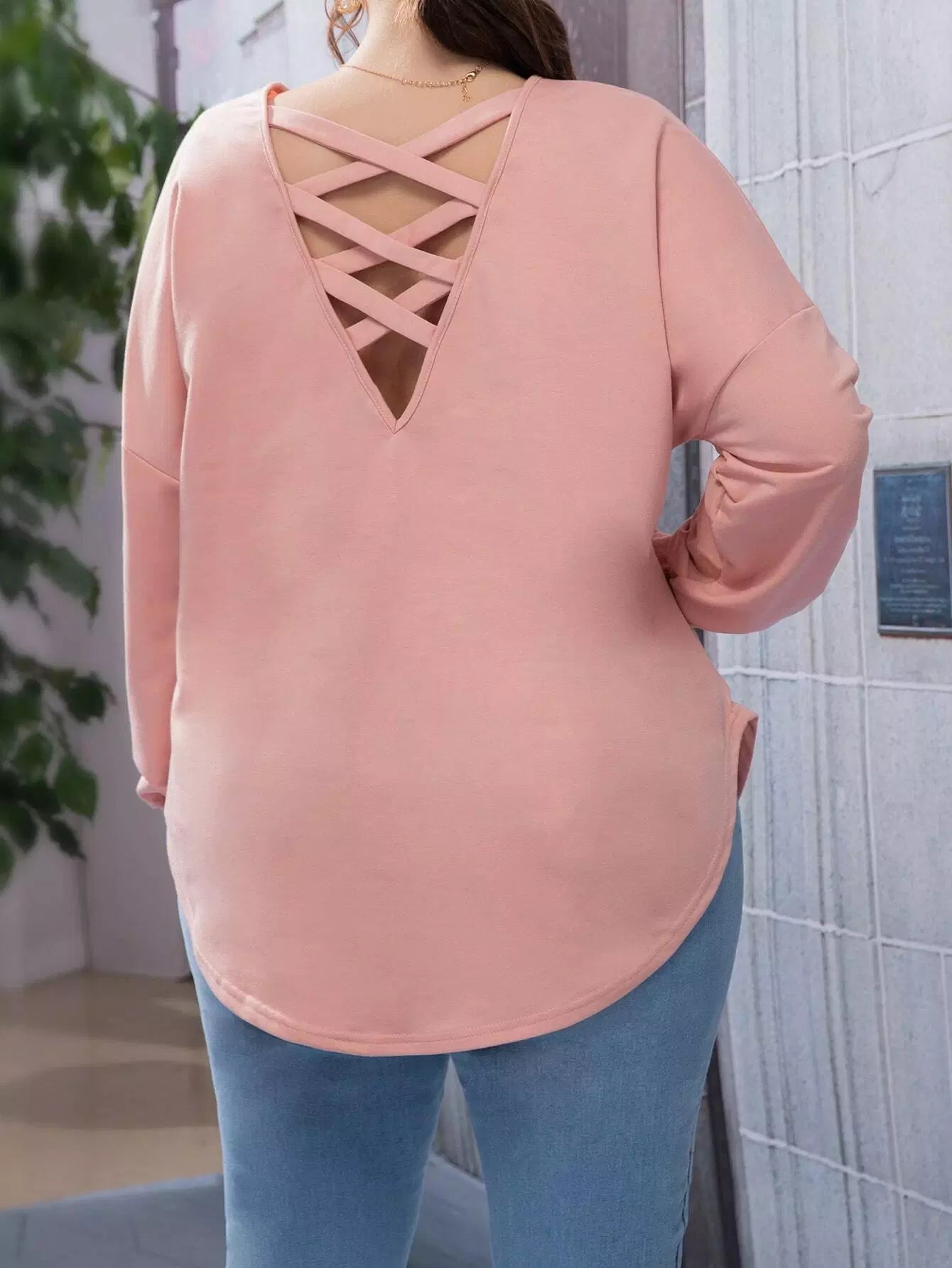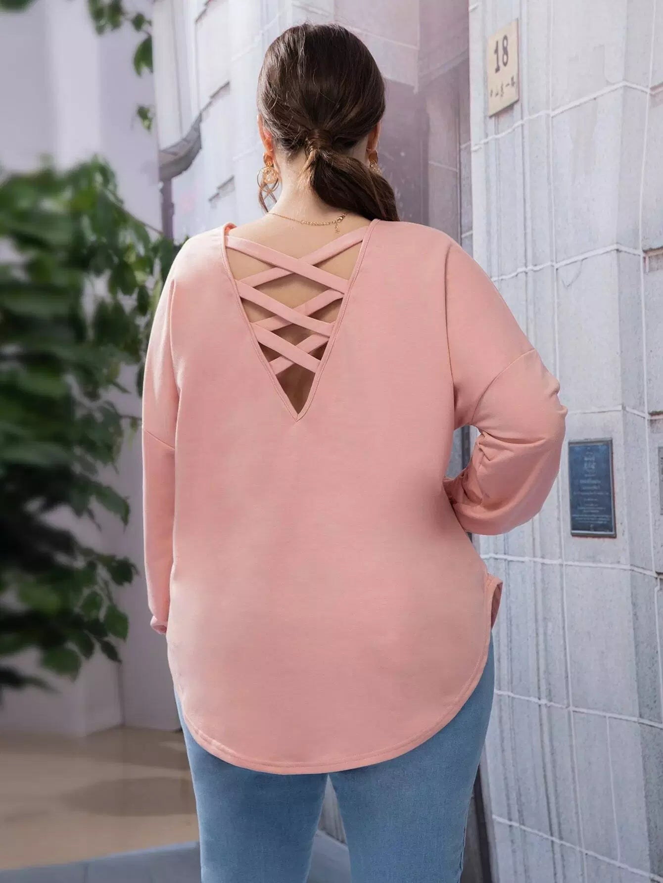 Plus Drop Shoulder Crisscross Back Sweatshirt