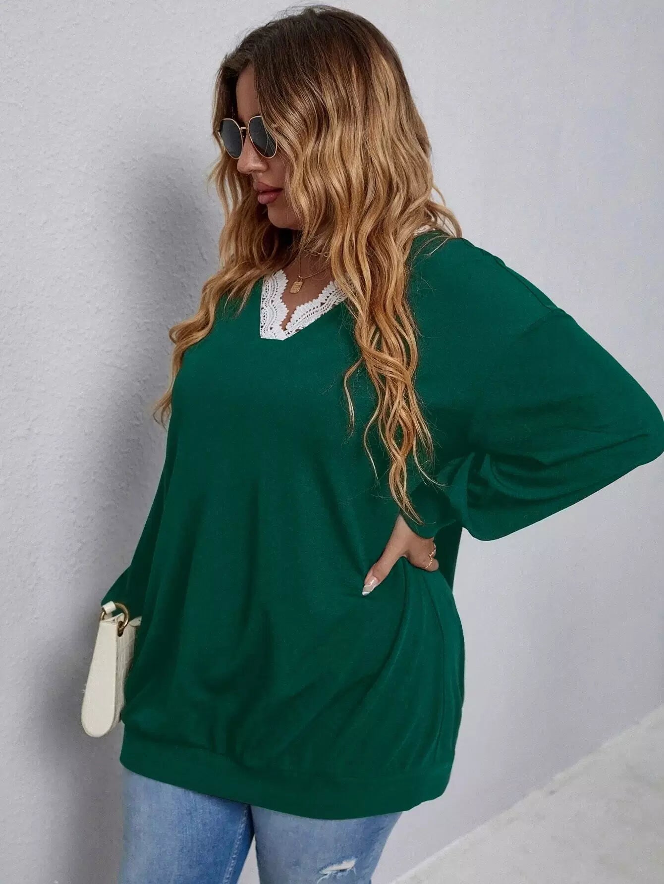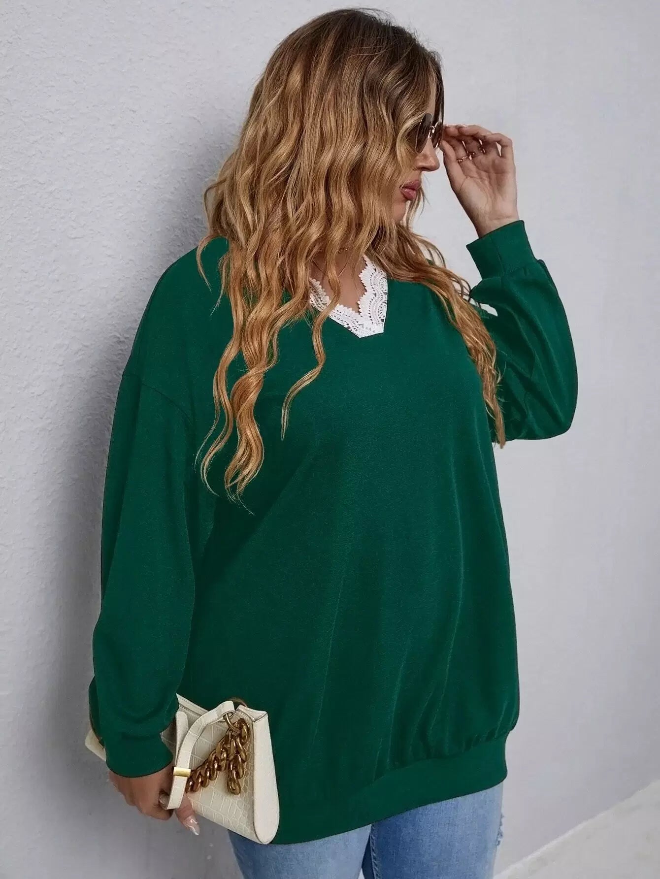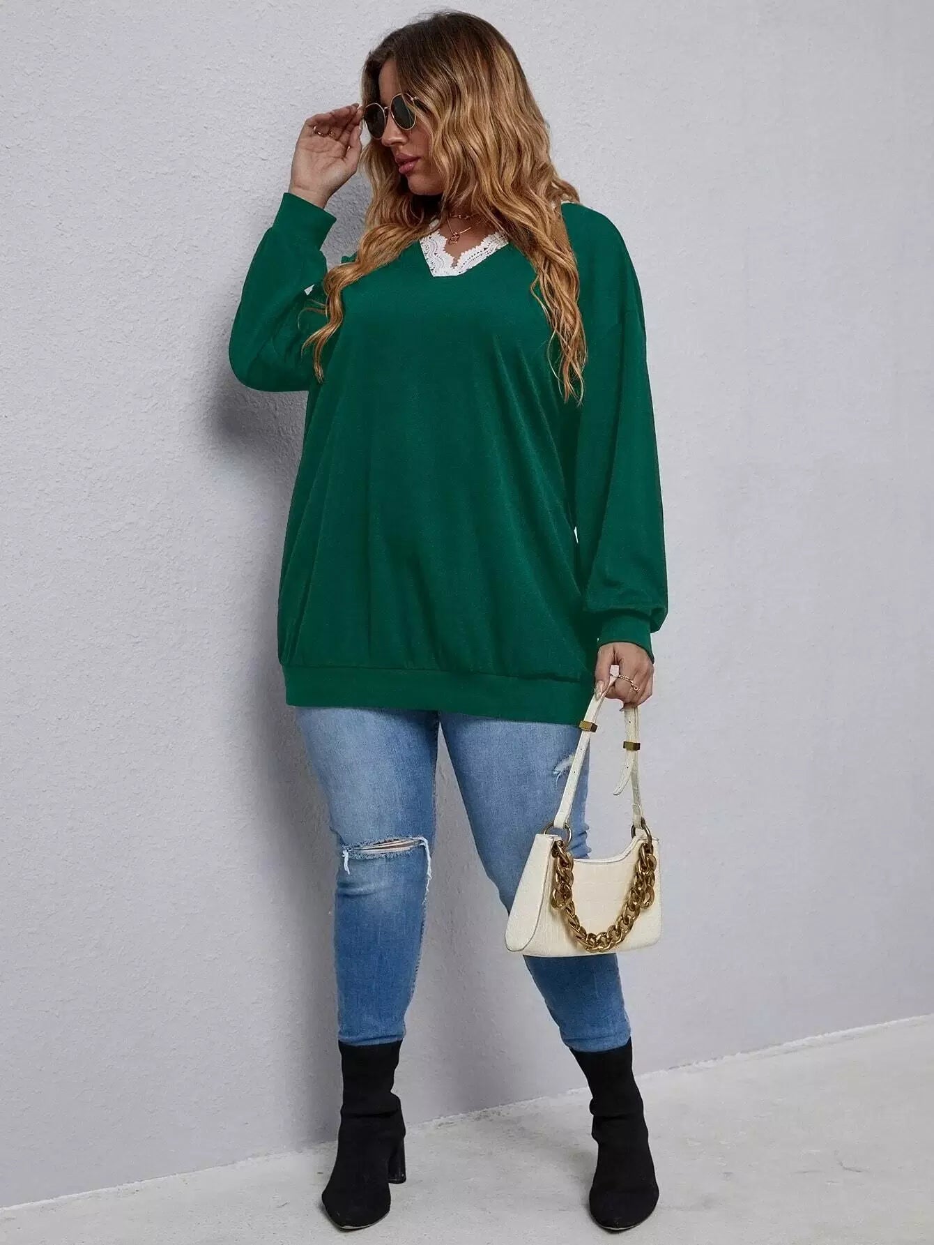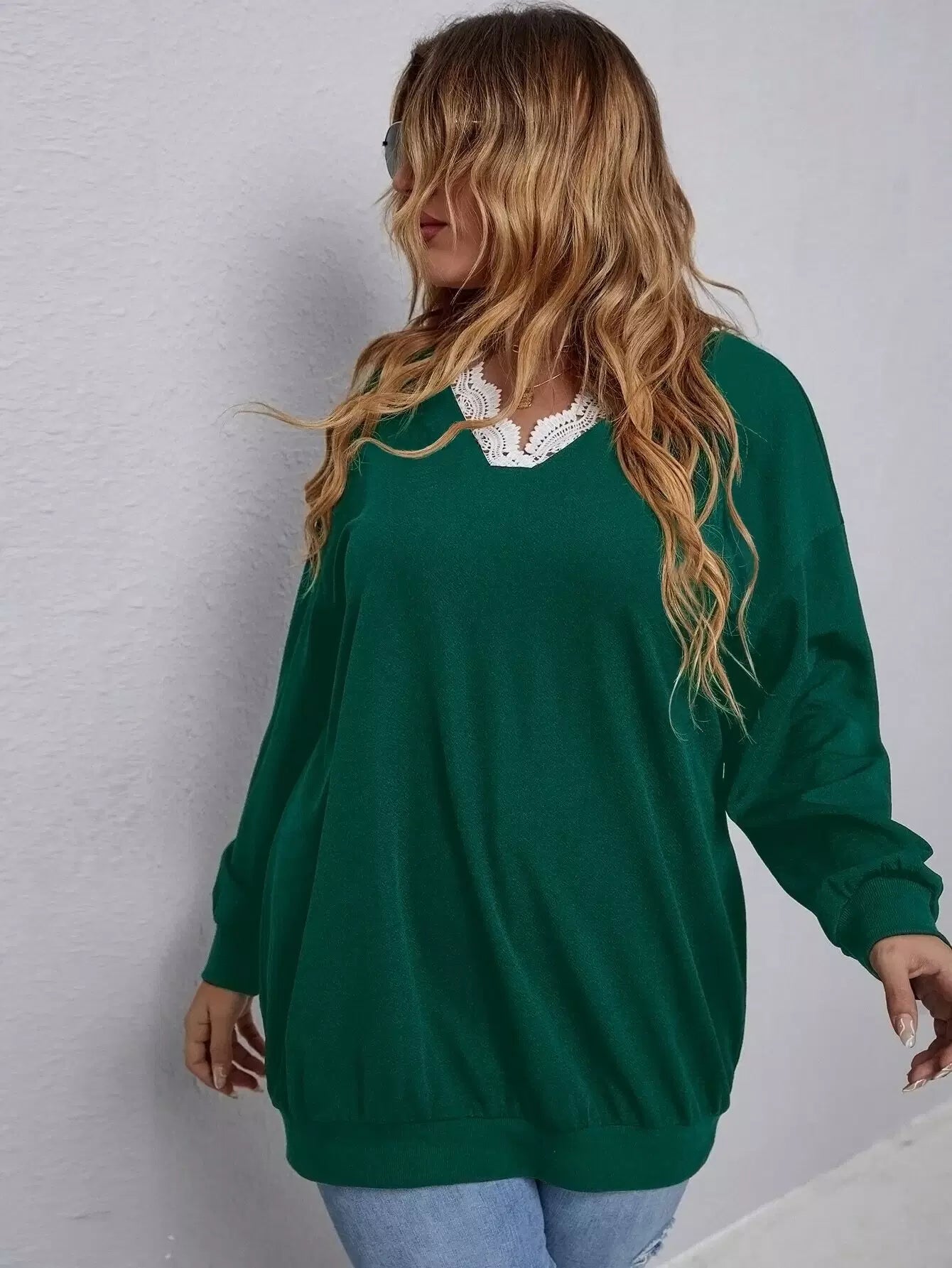 Plus Drop Shoulder Guipure Lace Trim Sweatshirt