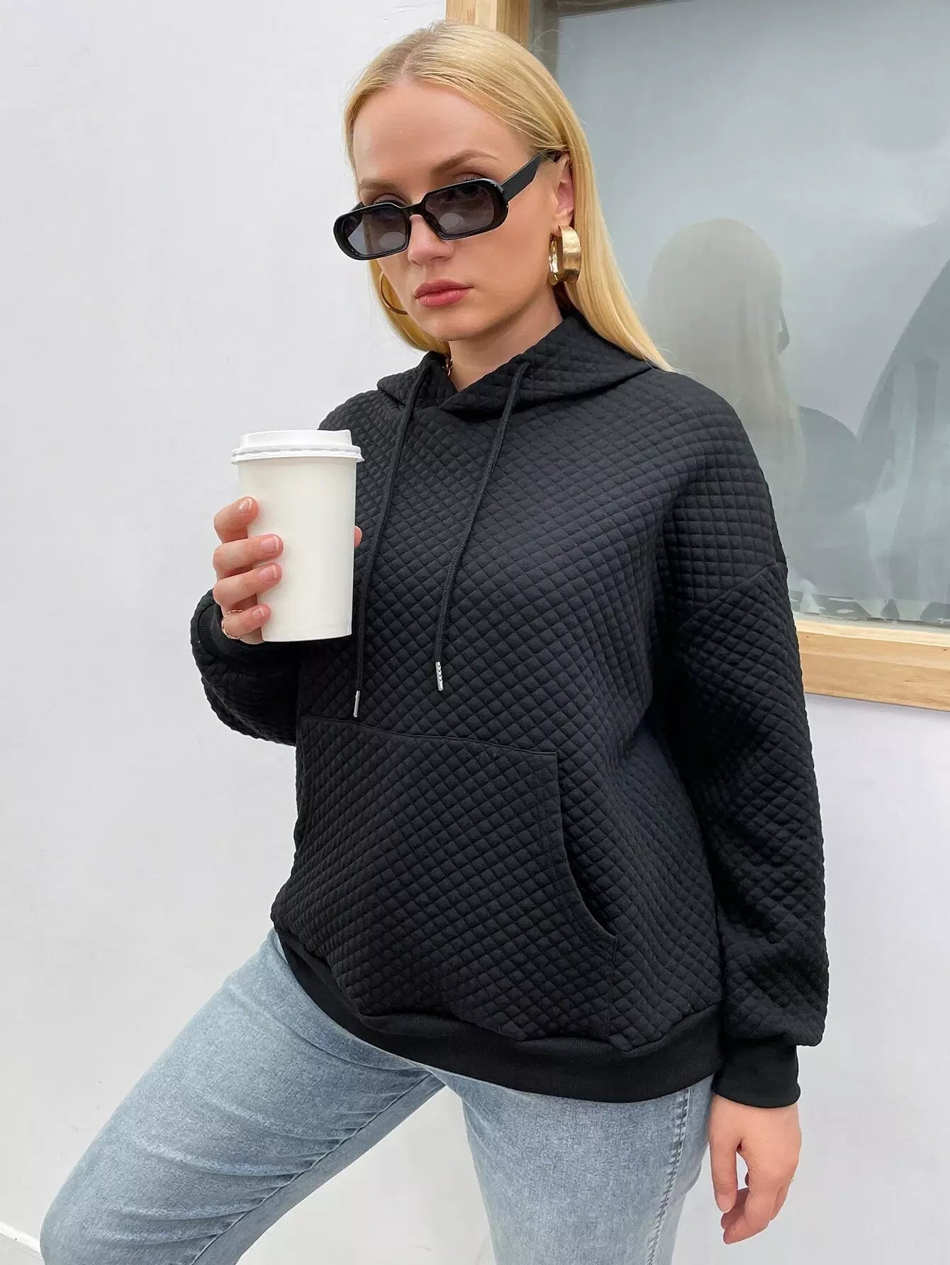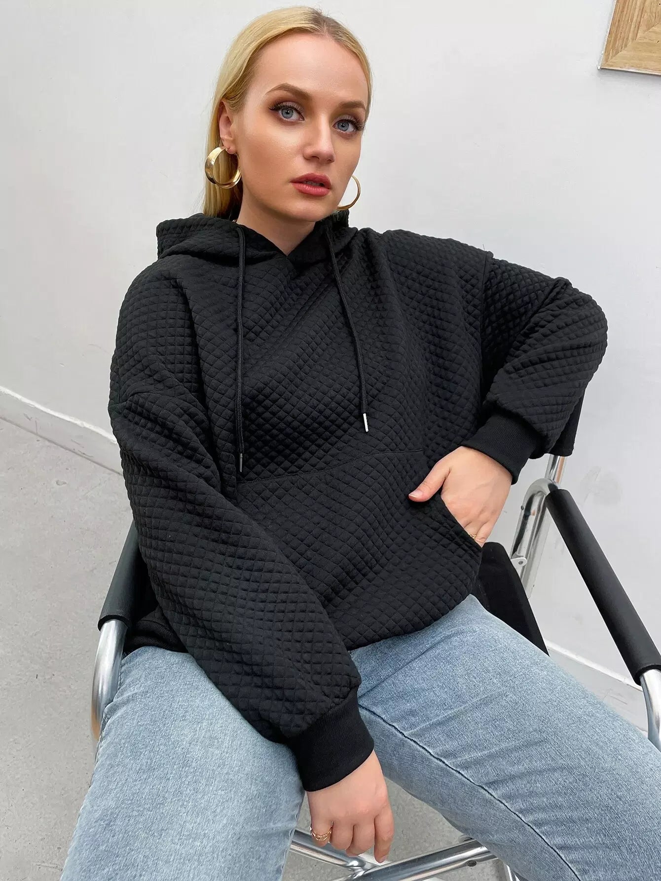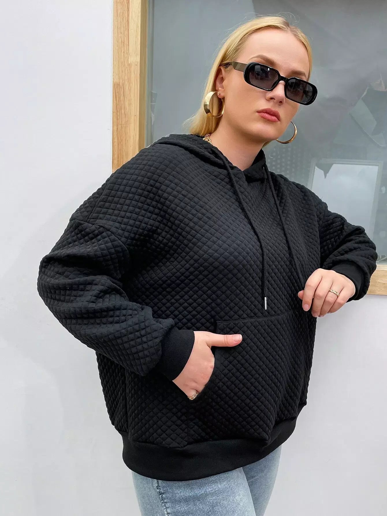 Plus Drop Shoulder Kangaroo Pocket Drawstring Hoodie