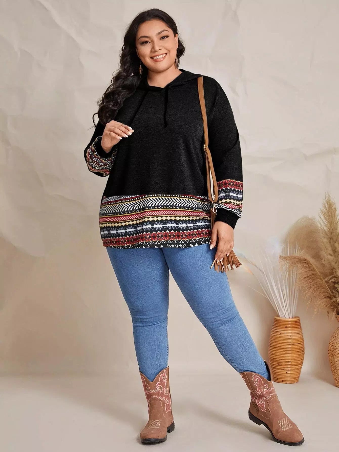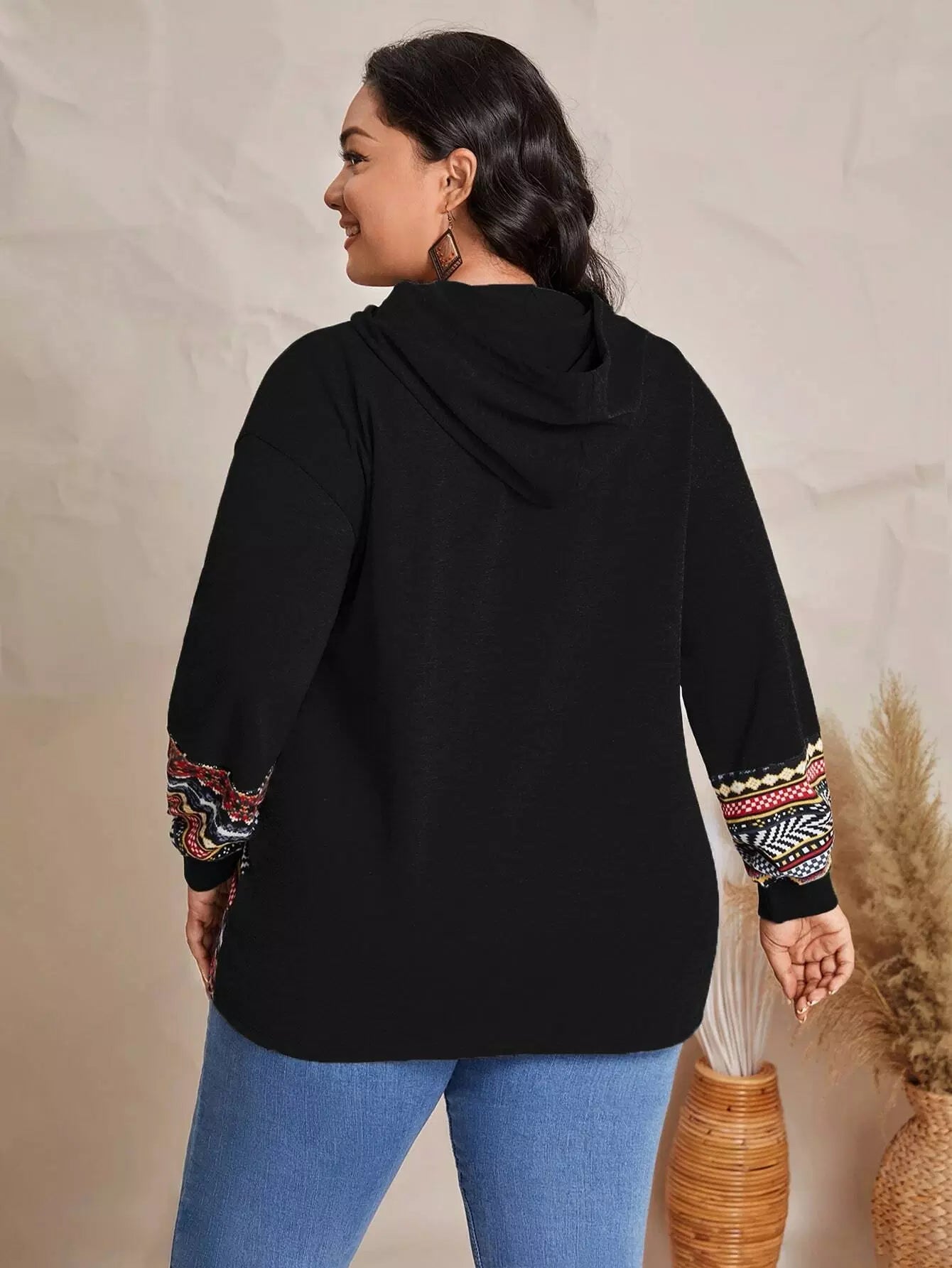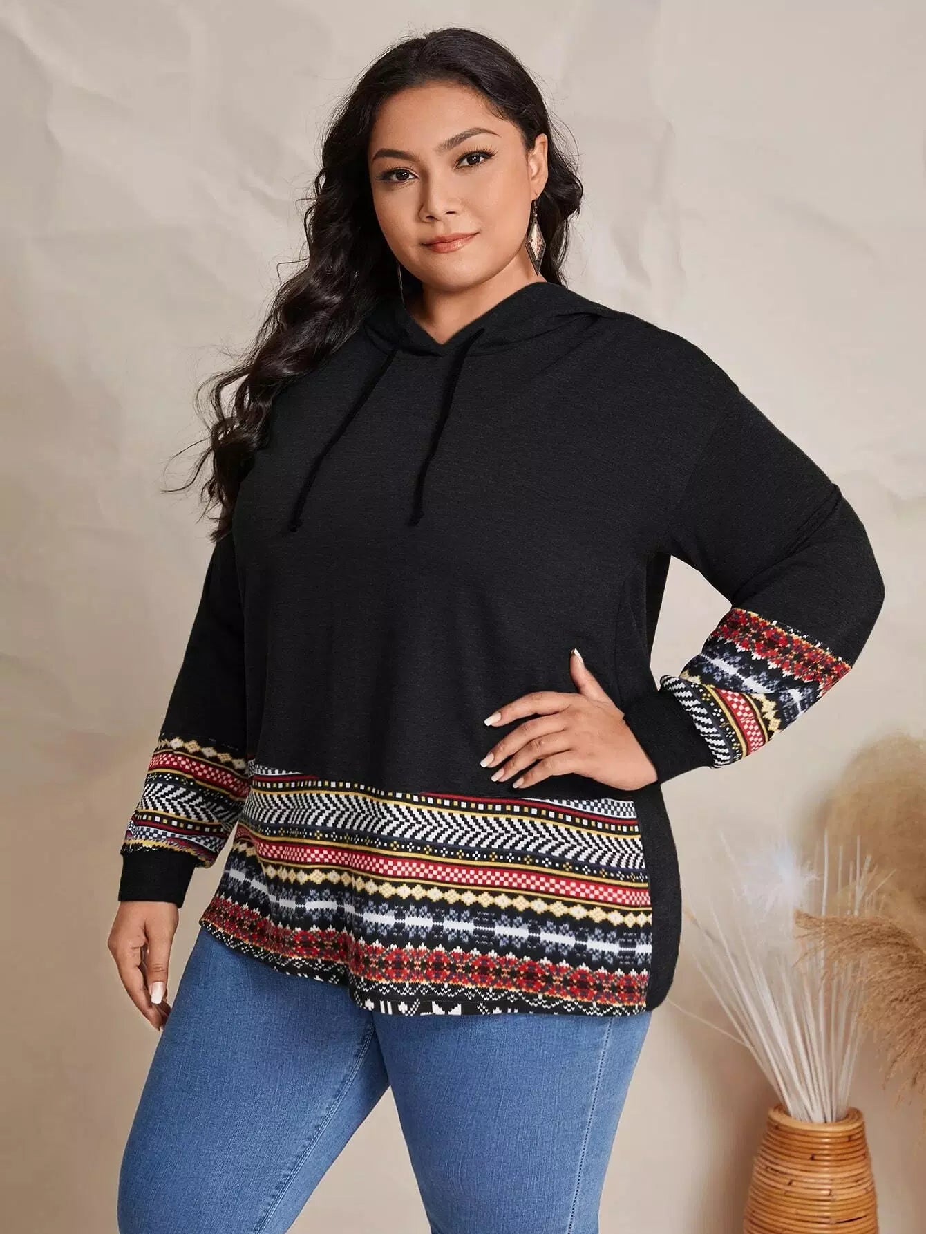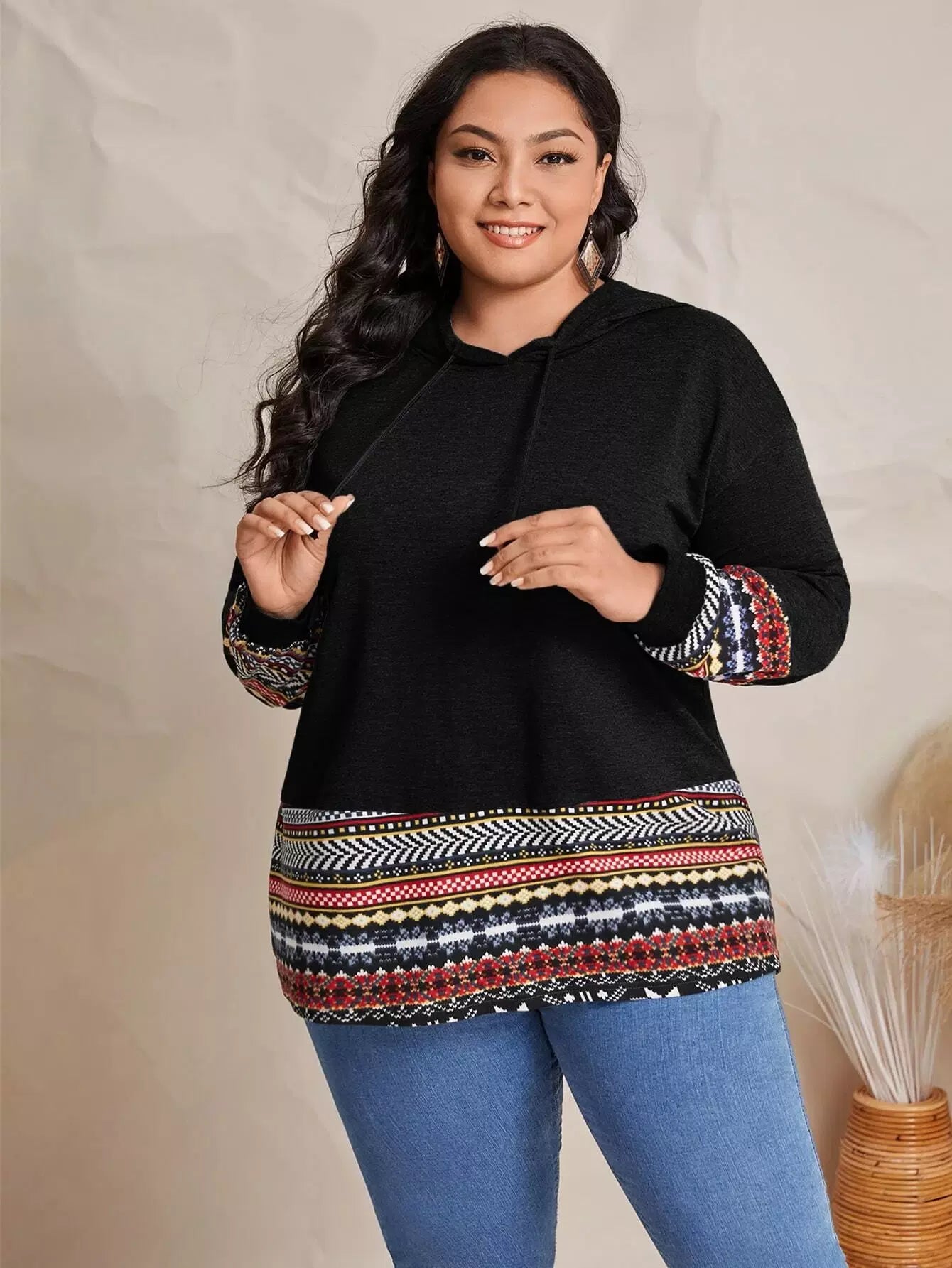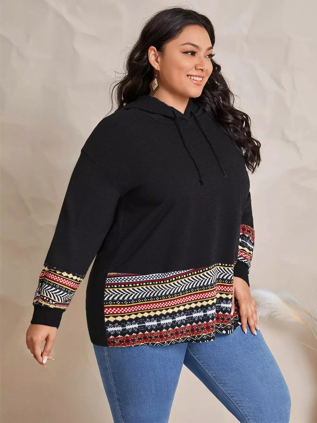 Plus Geo Print Hem Drawstring Hoodie