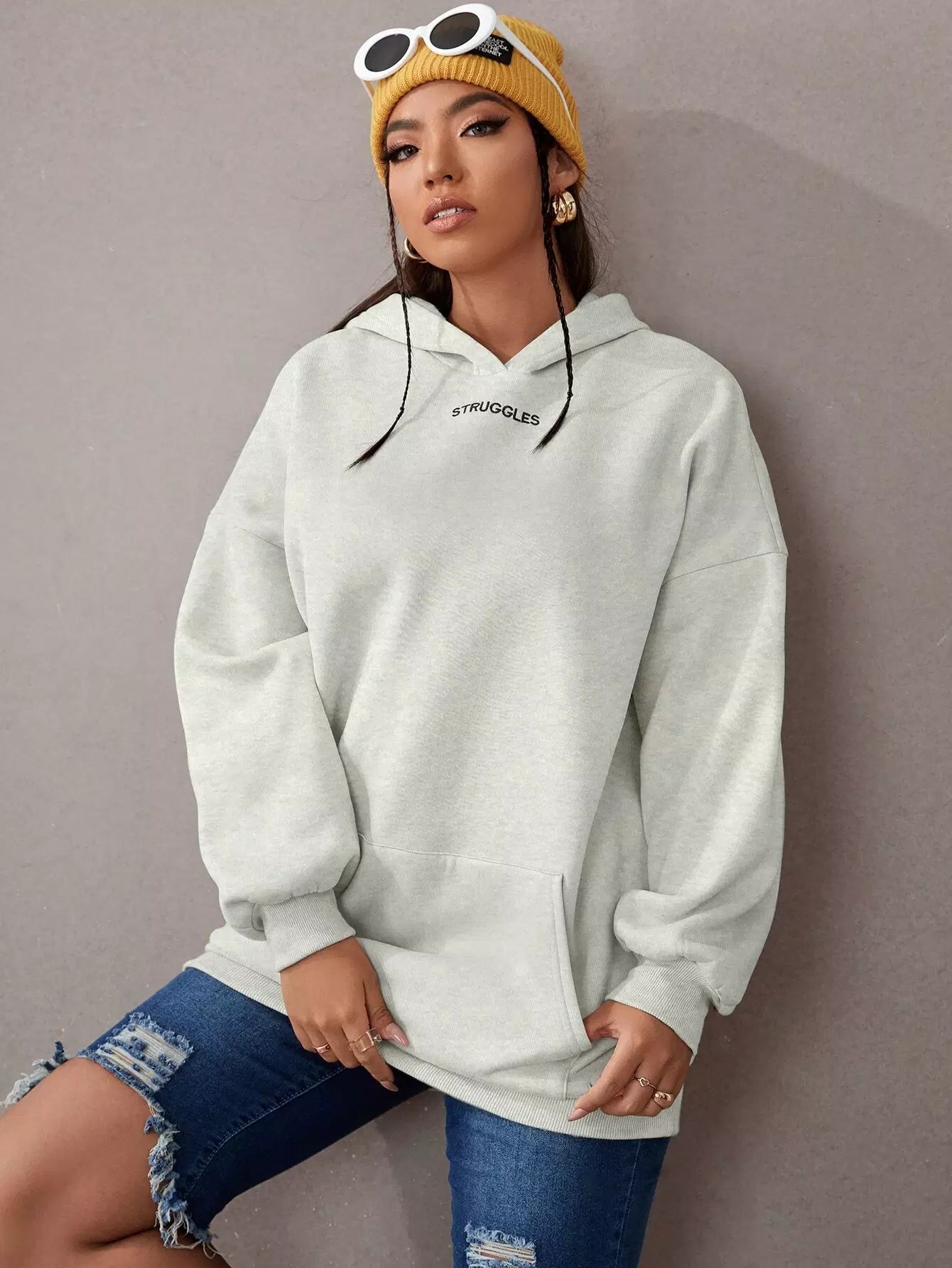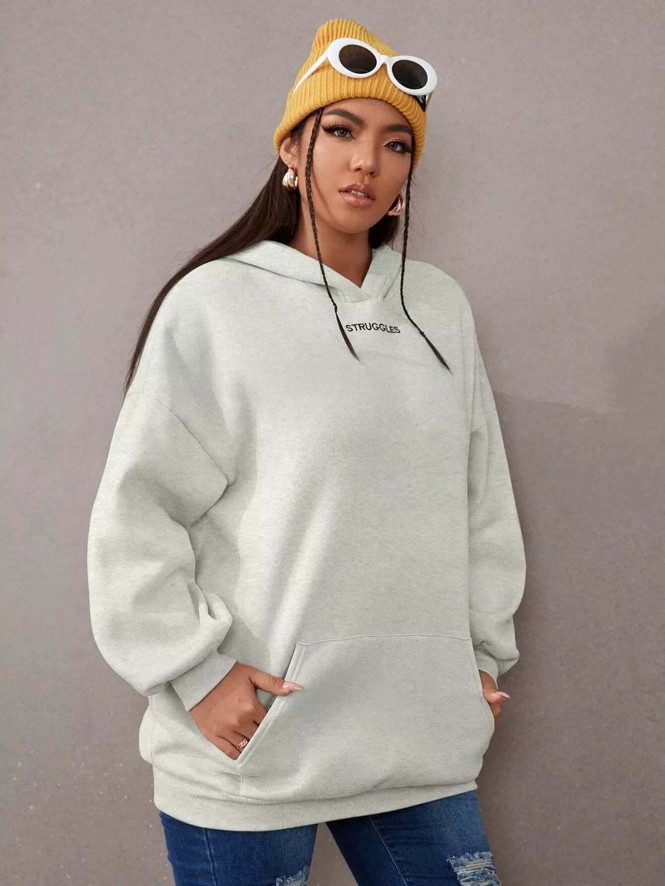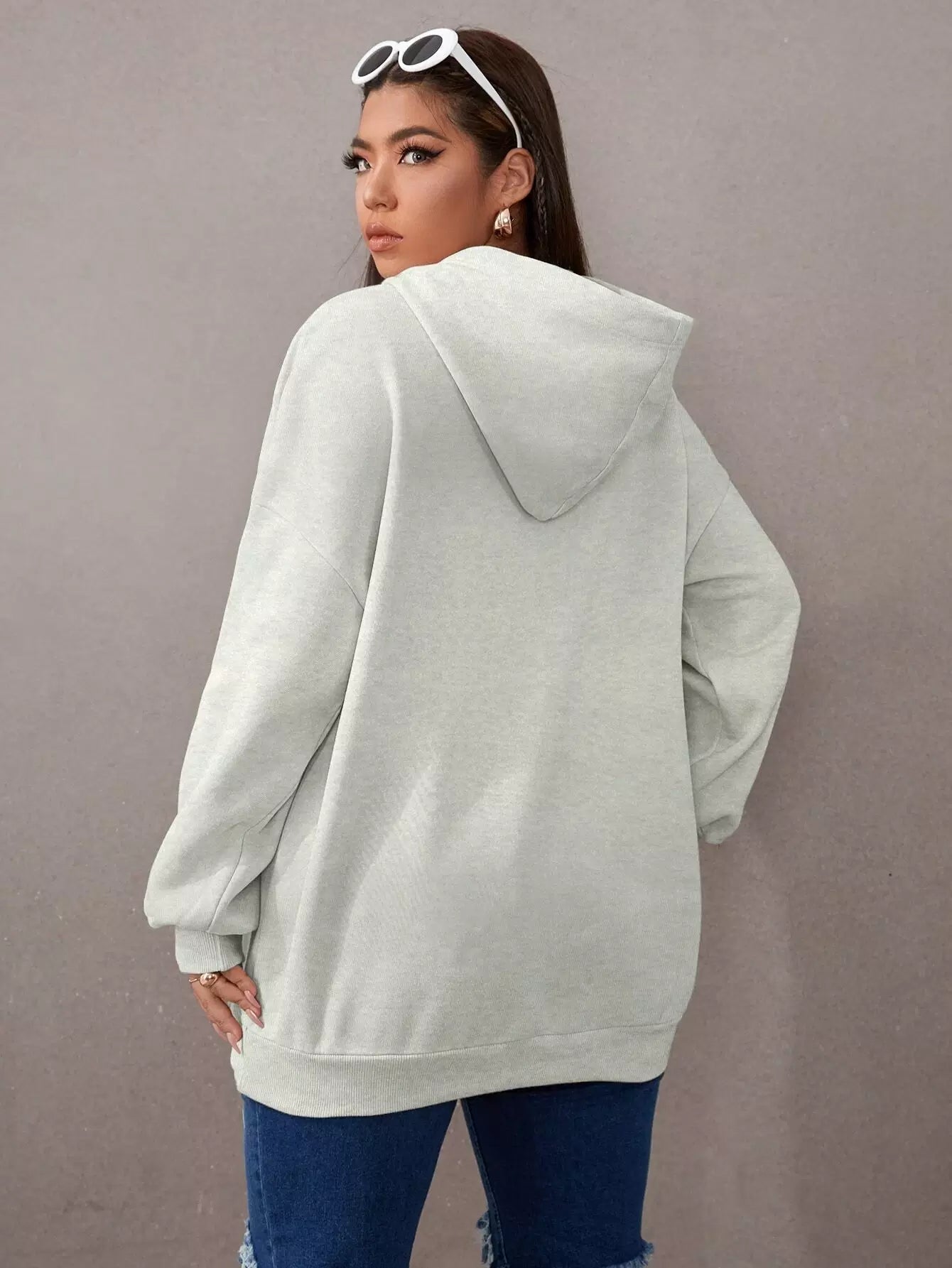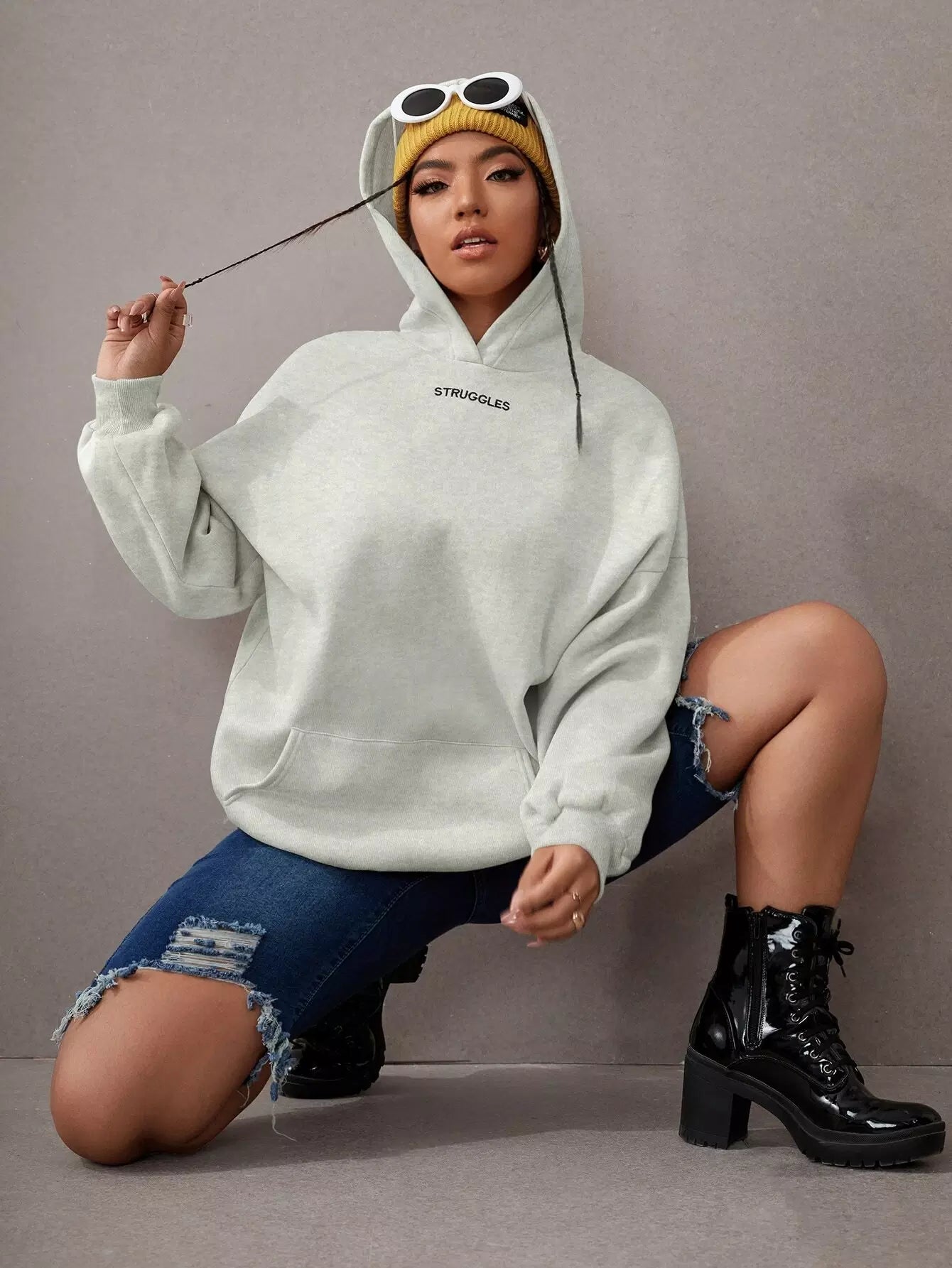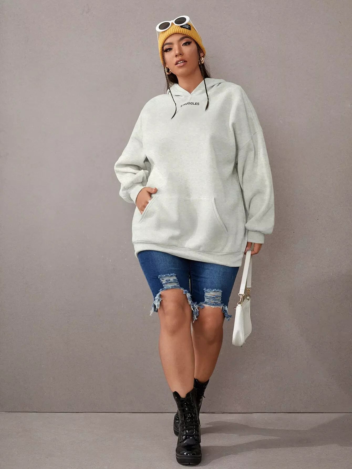 Plus Letter Embroidery Kangaroo Pocket Drop Shoulder Hoodie
