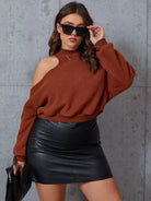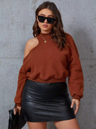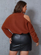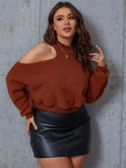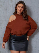 Plus Mock Neck Cut Out Shoulder Teddy Pullover
