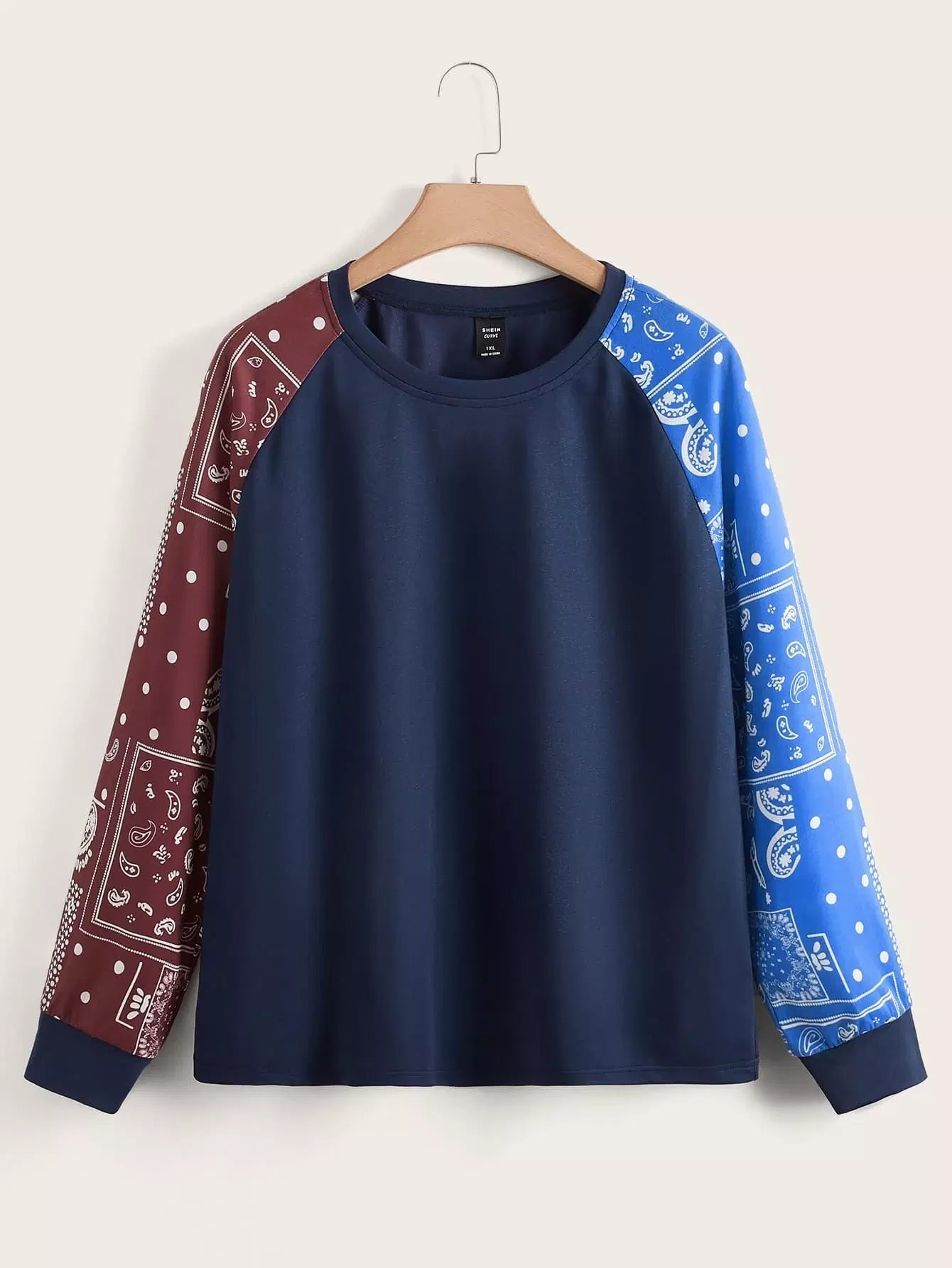 Plus Paisley Print Raglan Sleeve Sweatshirt