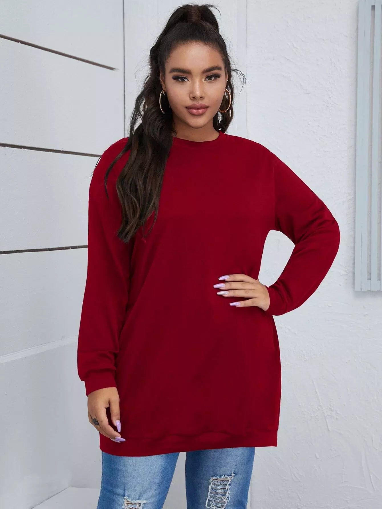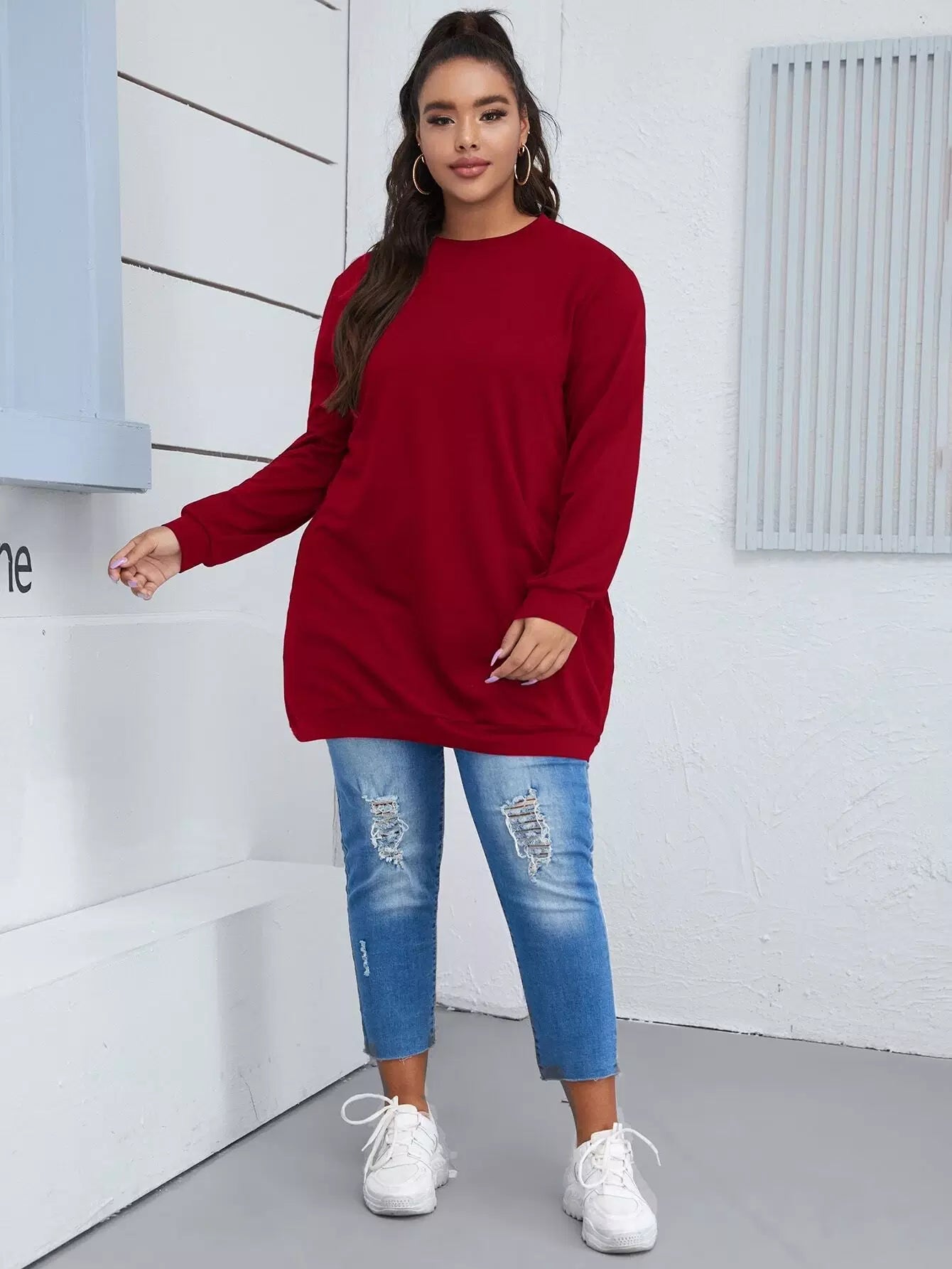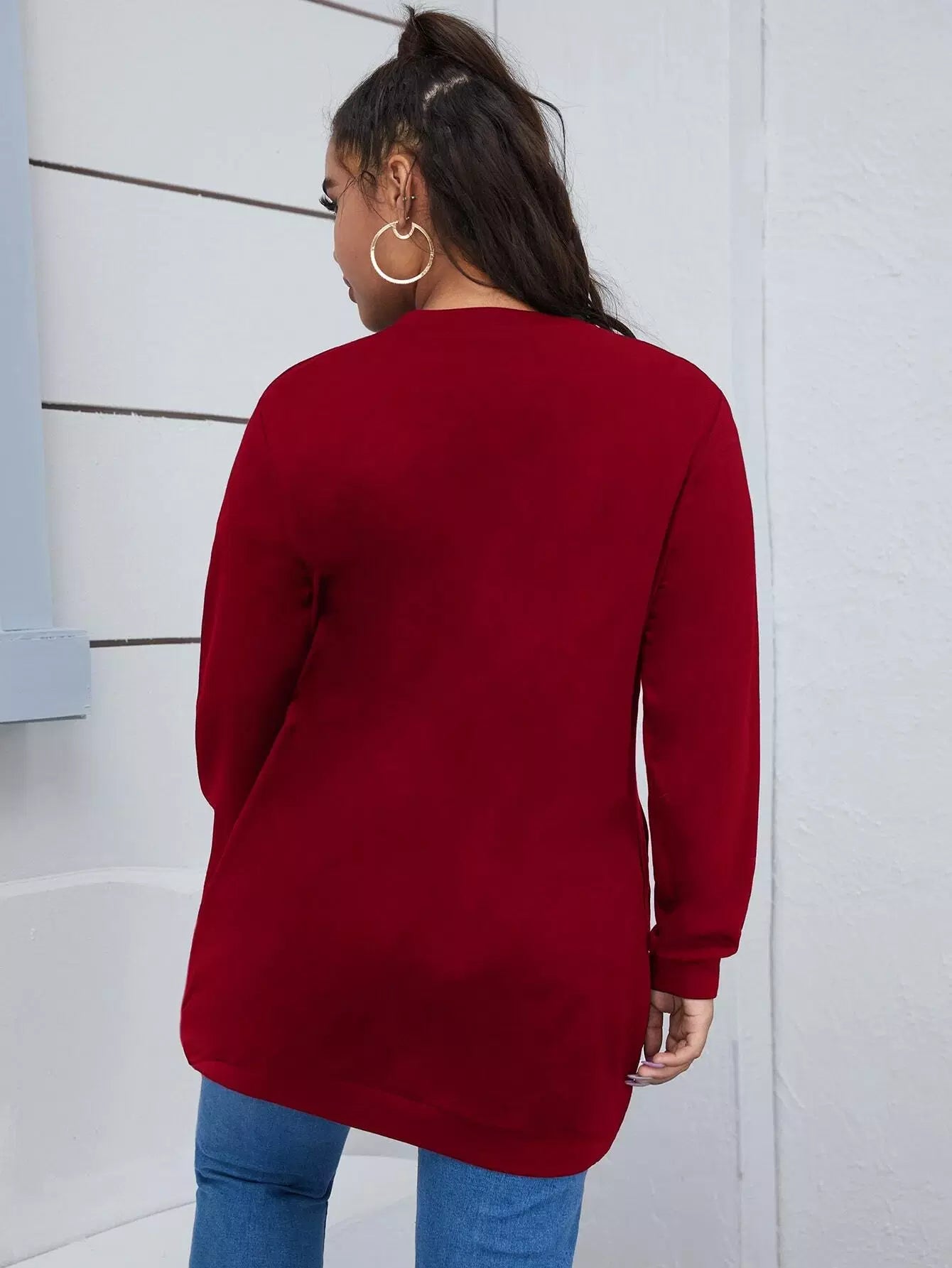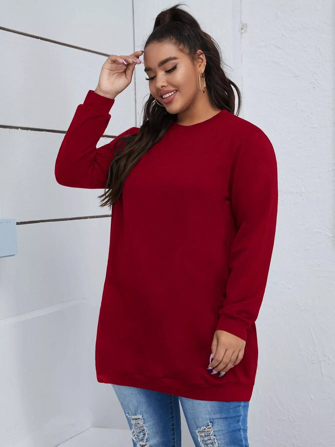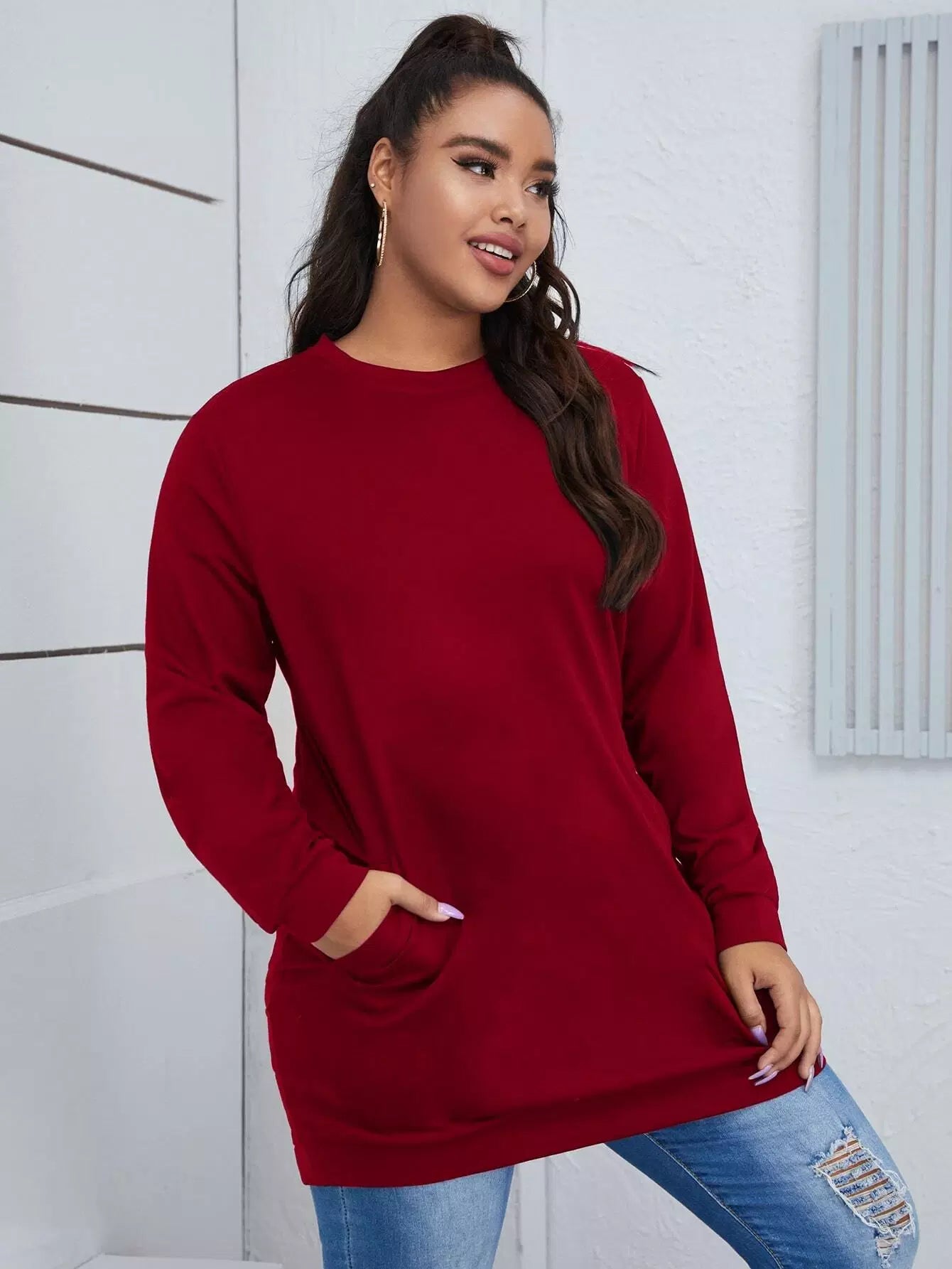 Plus Solid Pocket Detail Sweatshirt