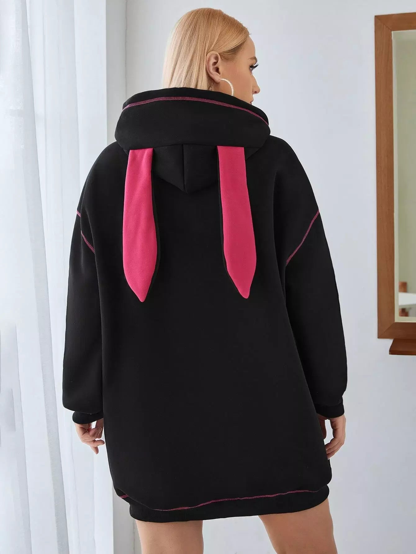 Women - Plus Stitching Trim Drawstring Hoodie
