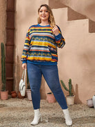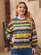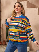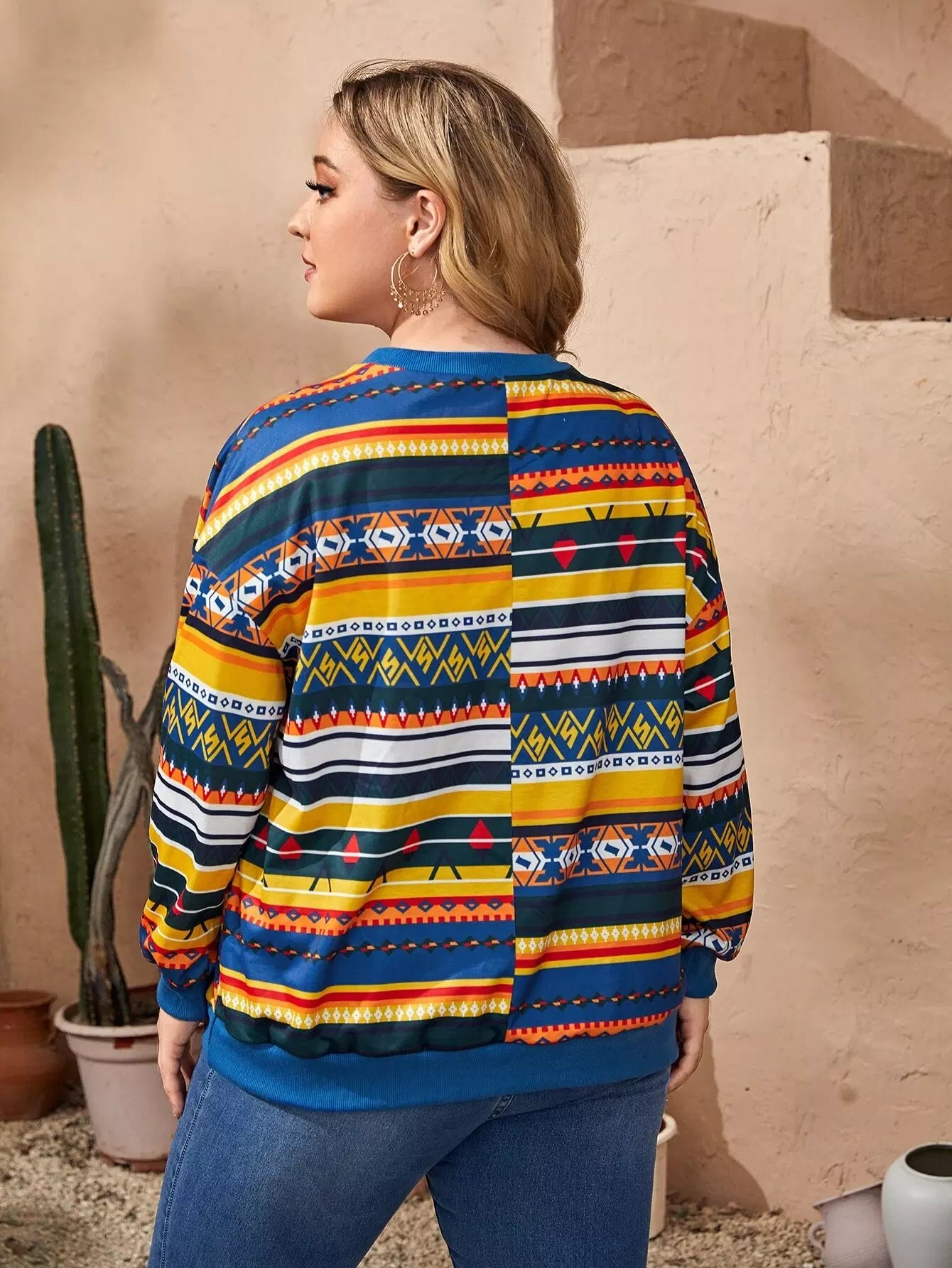 Plus Stripe & Geo Print Kangaroo Pocket Drop Shoulder Pullover