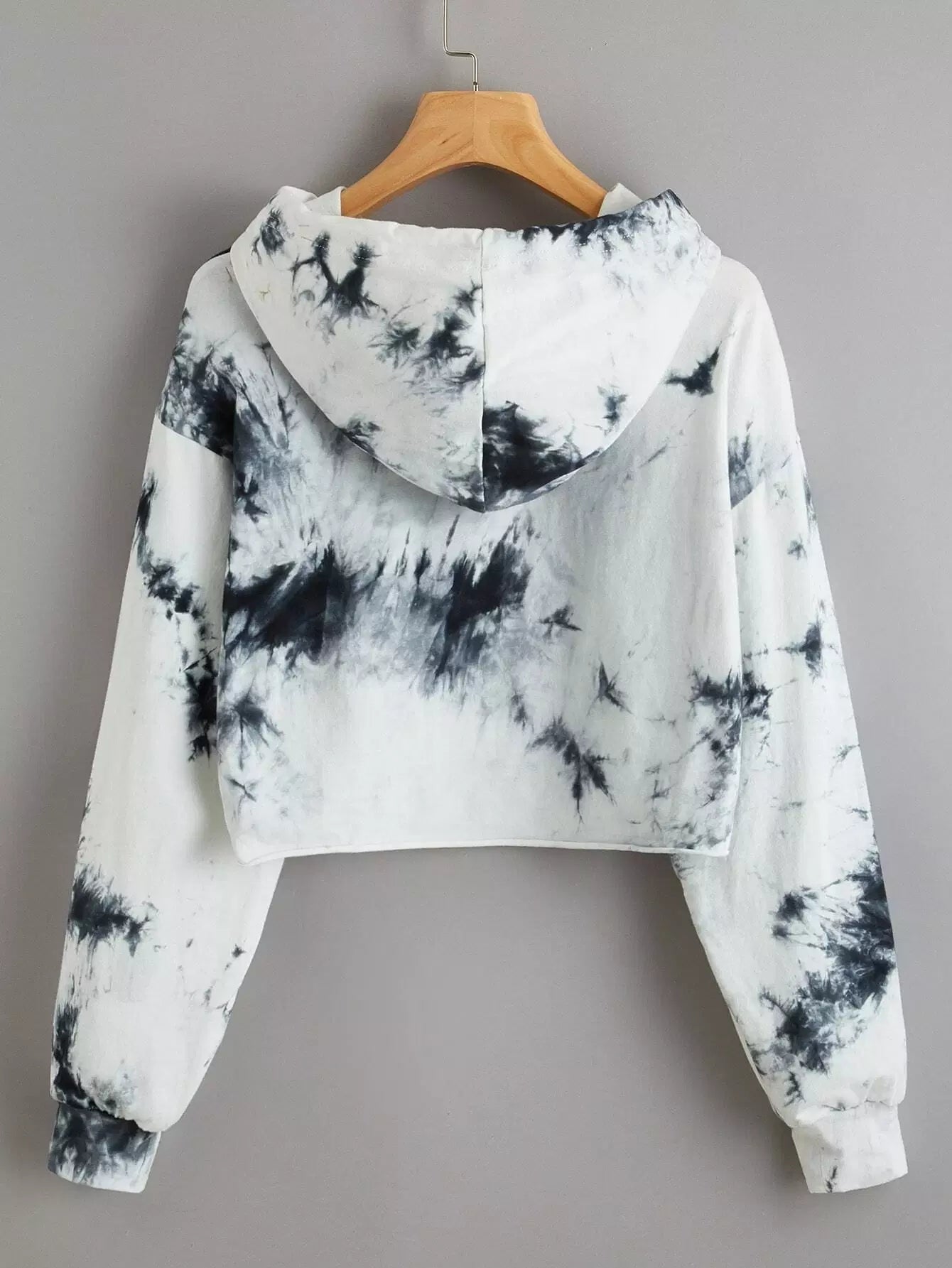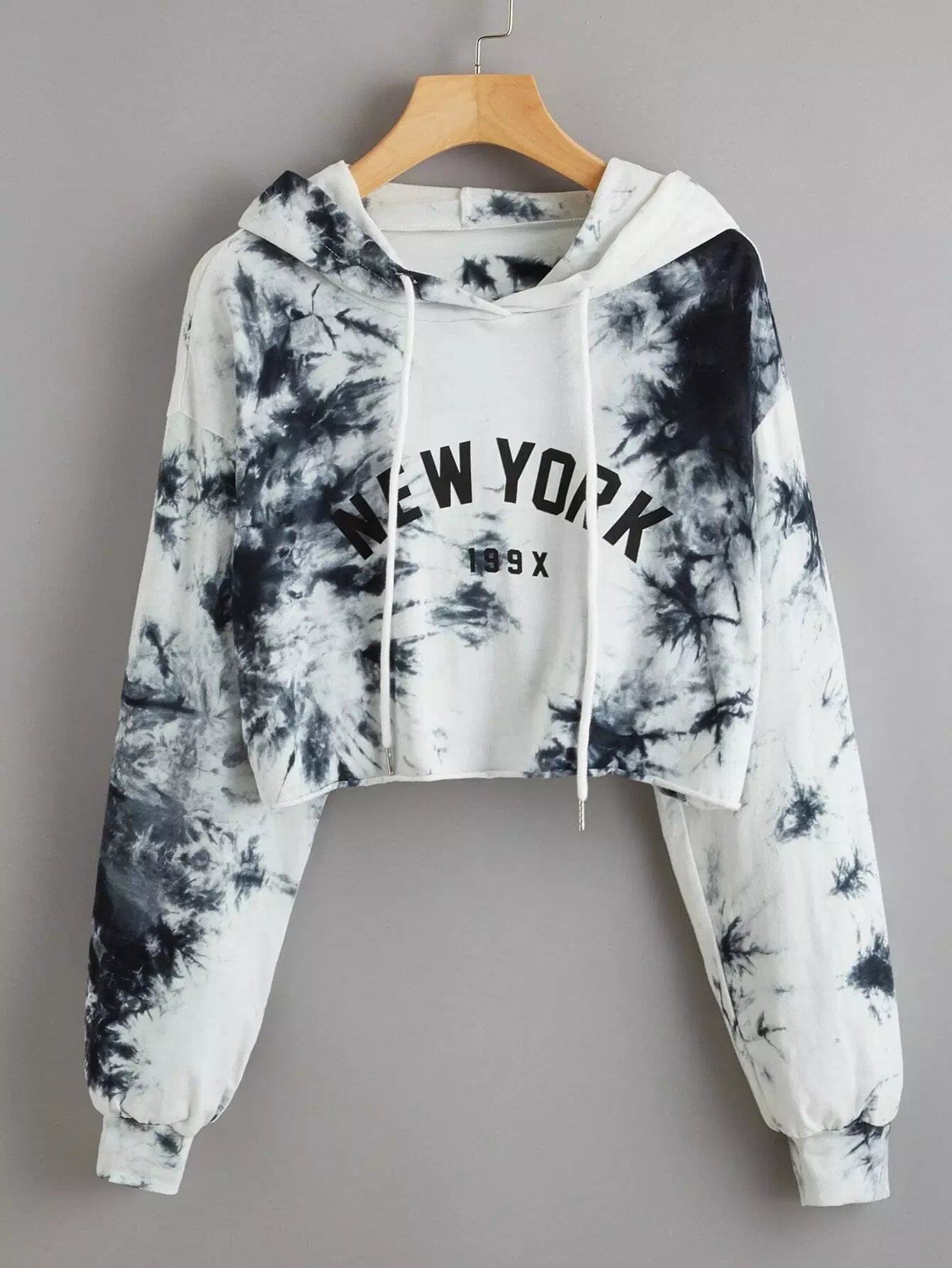 Plus Tie Dye & Letter Graphic Crop Hoodie