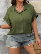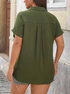 Flirla Women Plus Size Elegant Open Front Short Sleeve Casual Shirt With Pockets, Suitable For Spring/Summer