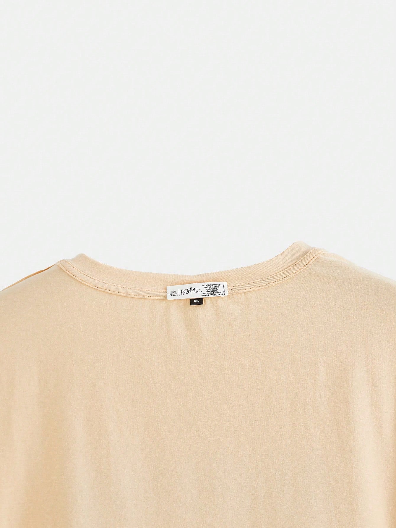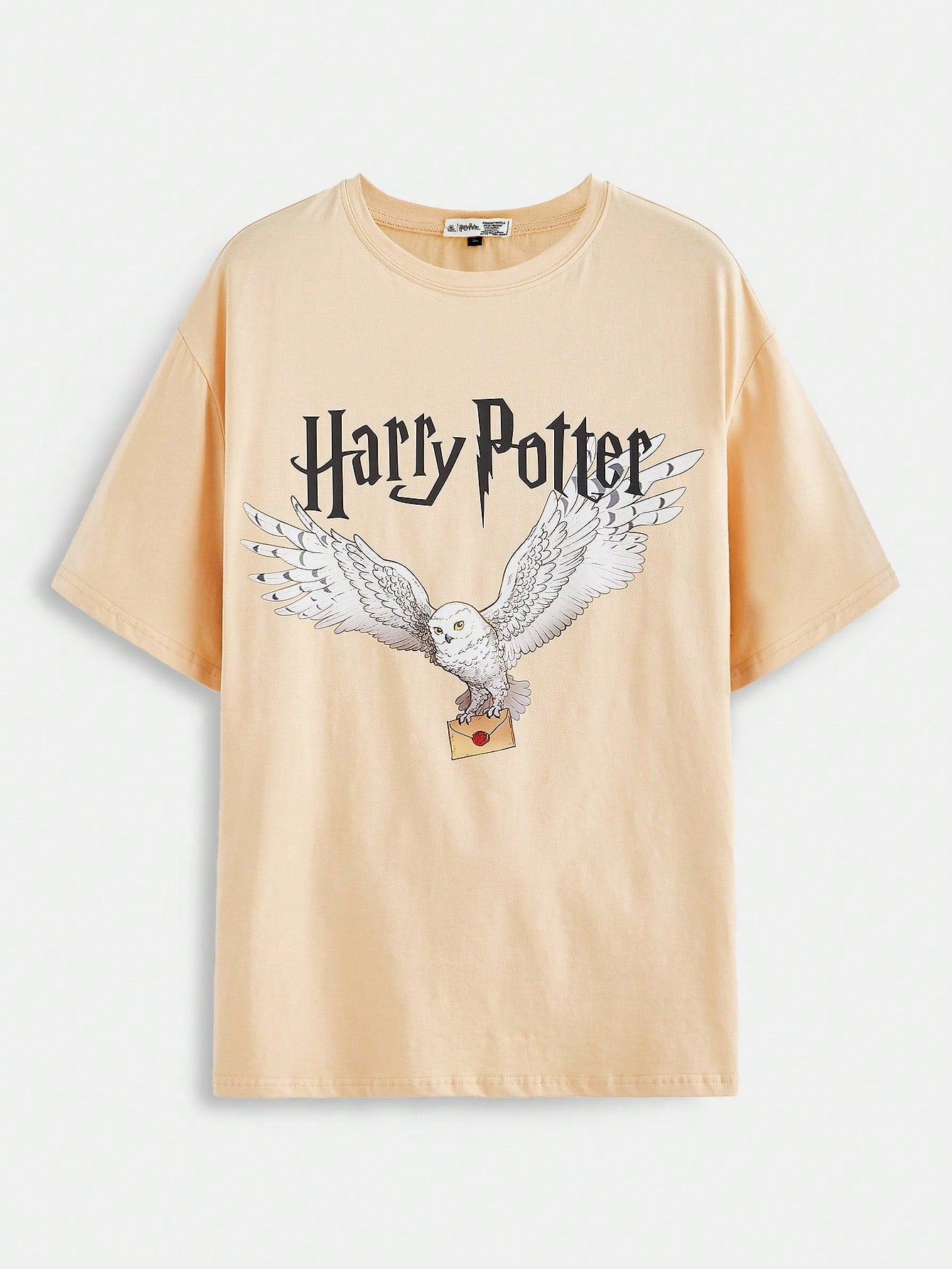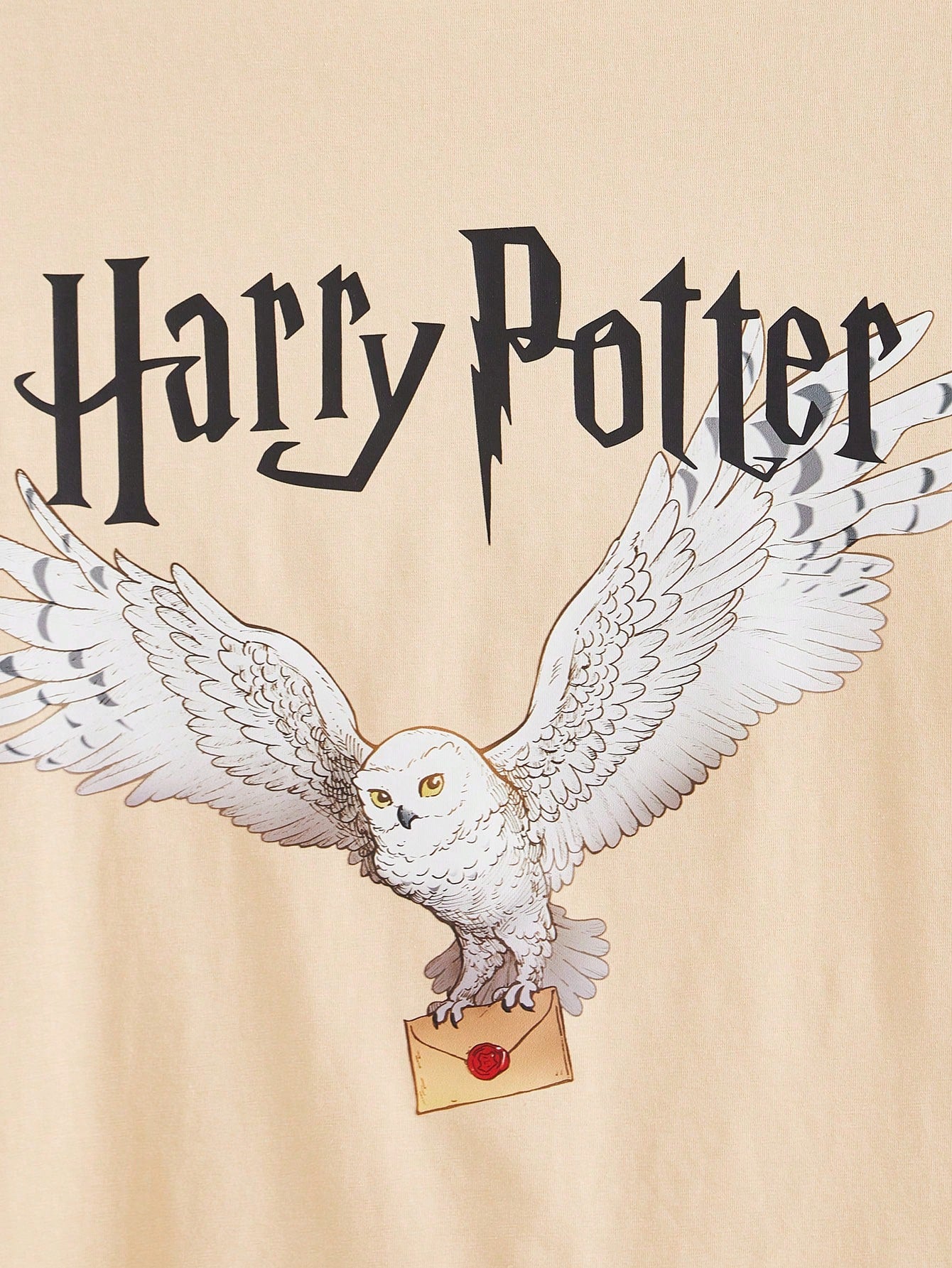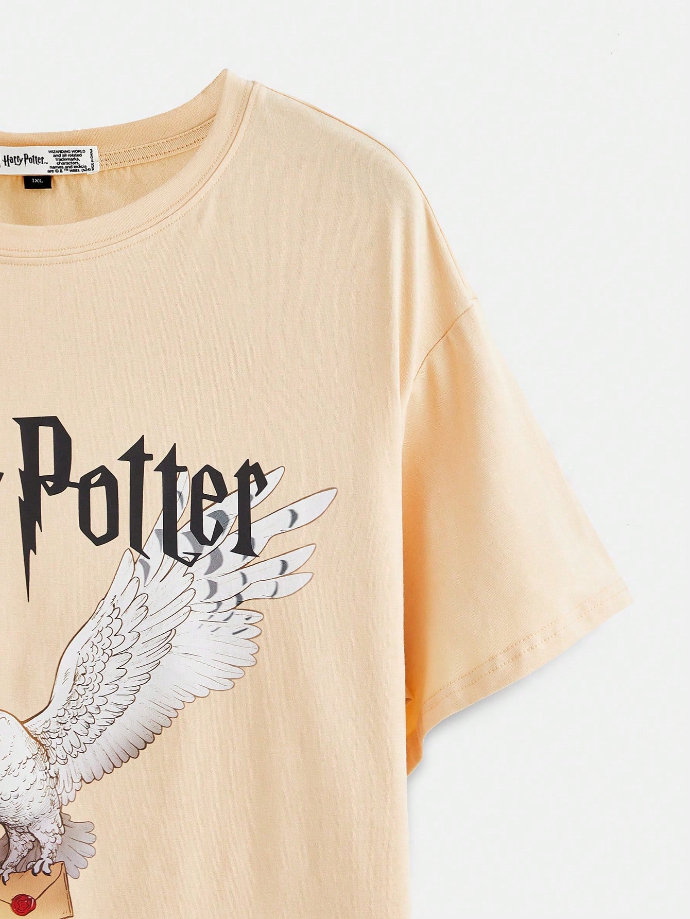 HARRY POTTER X SHEIN Plus Owl And Letter Graphic Drop Shoulder Tee Suitable For Going Out
