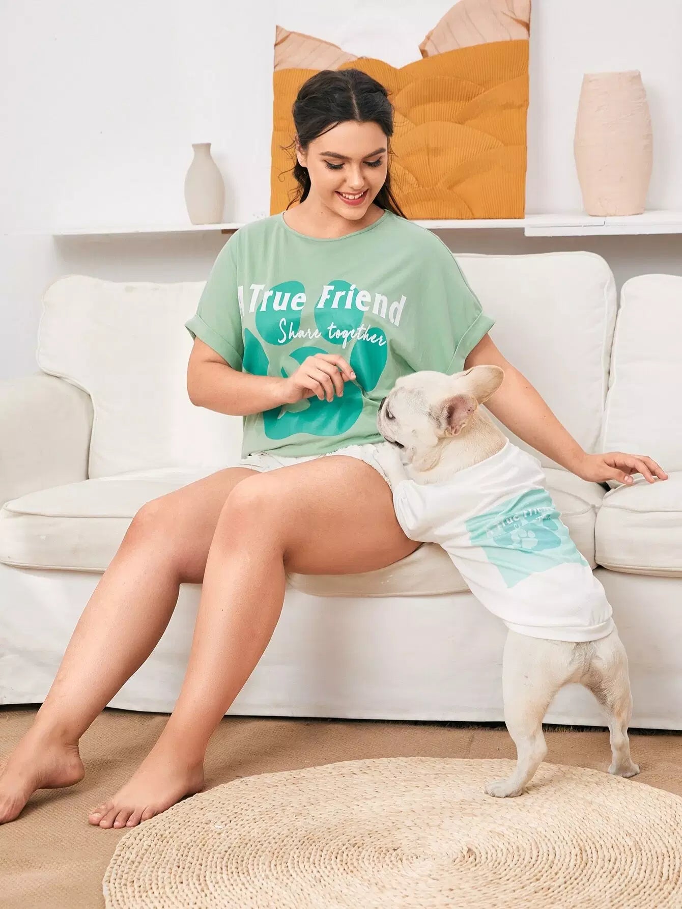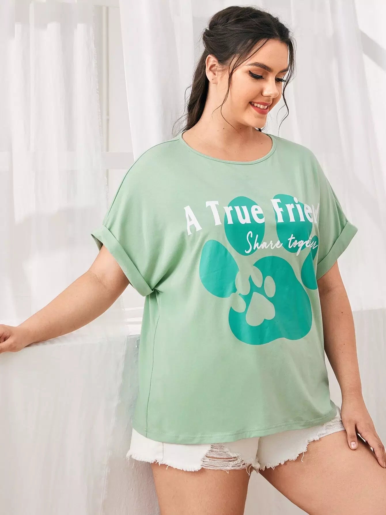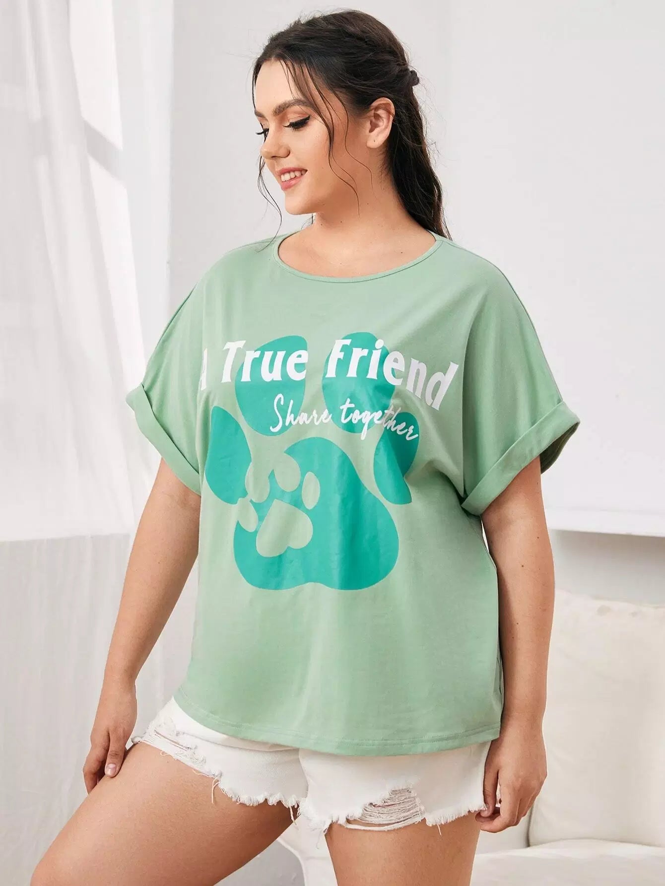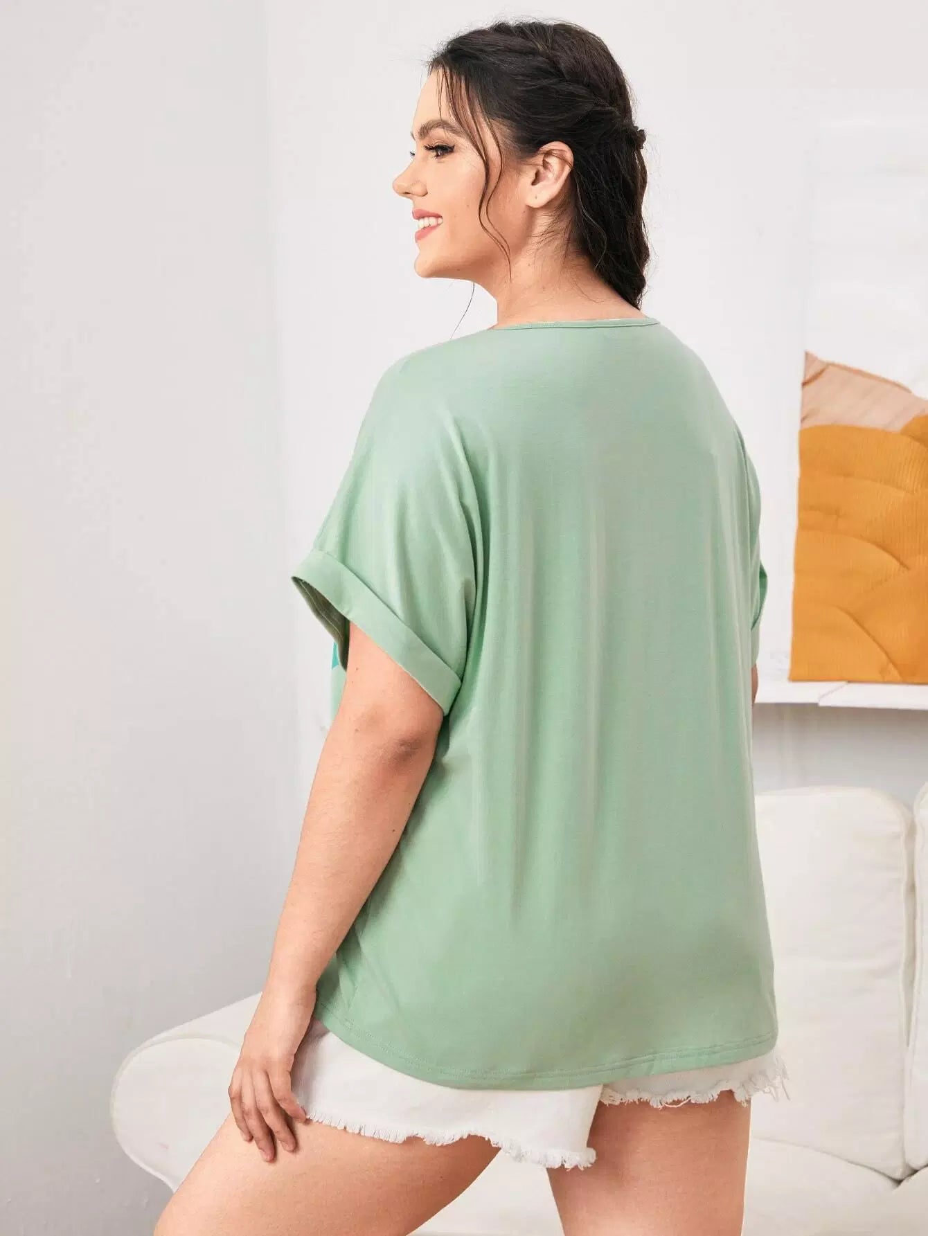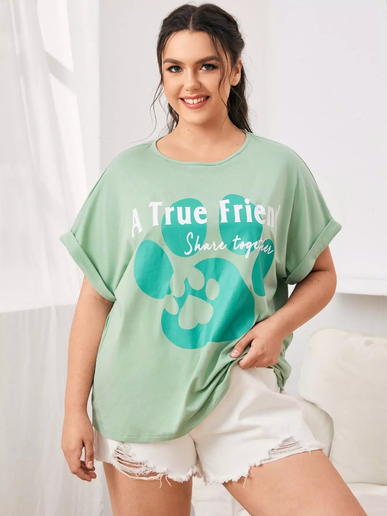 Women - Plus 1pc Letter and Graphic Print Cuffed Top