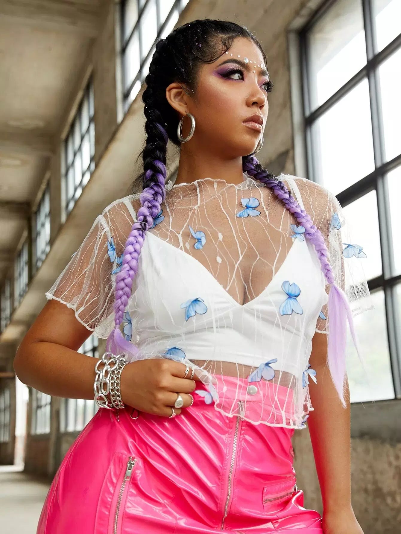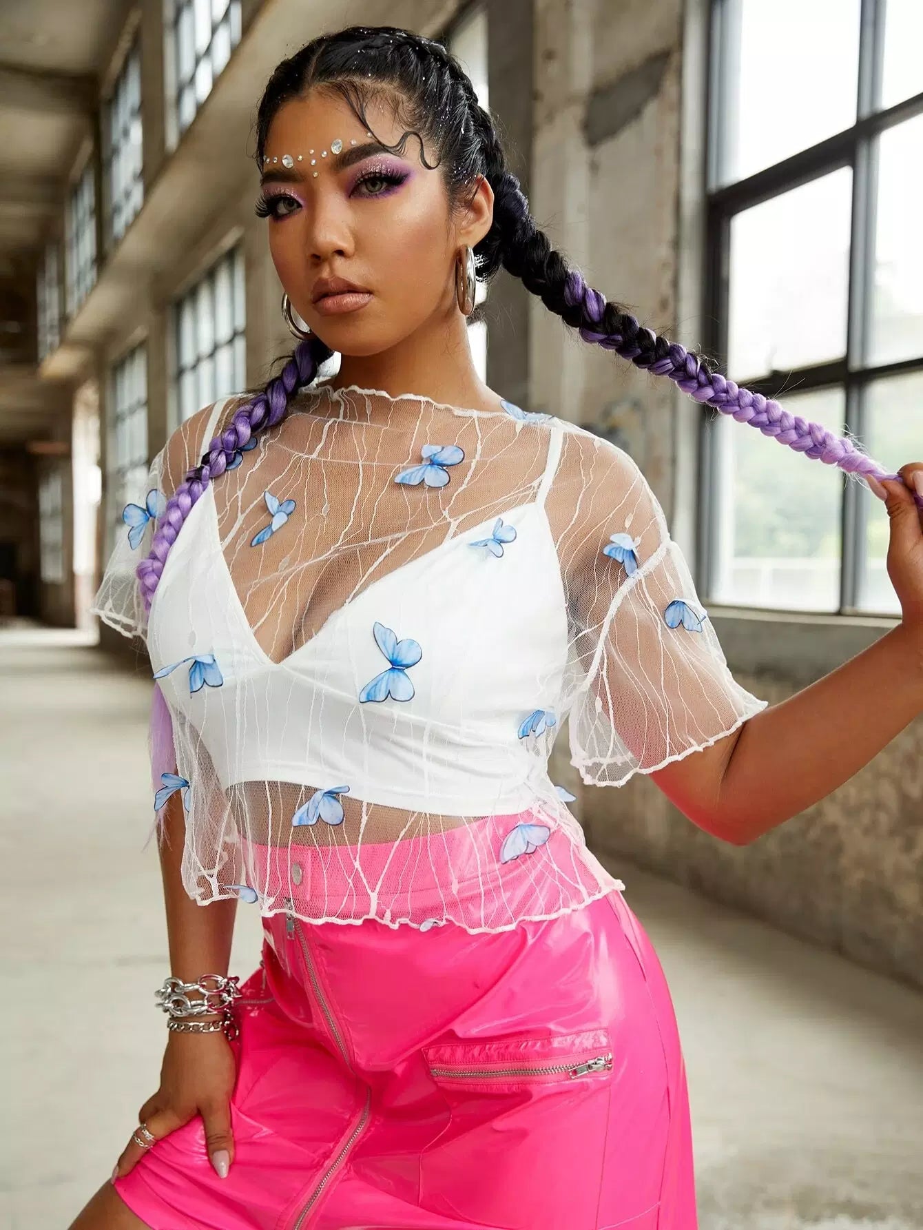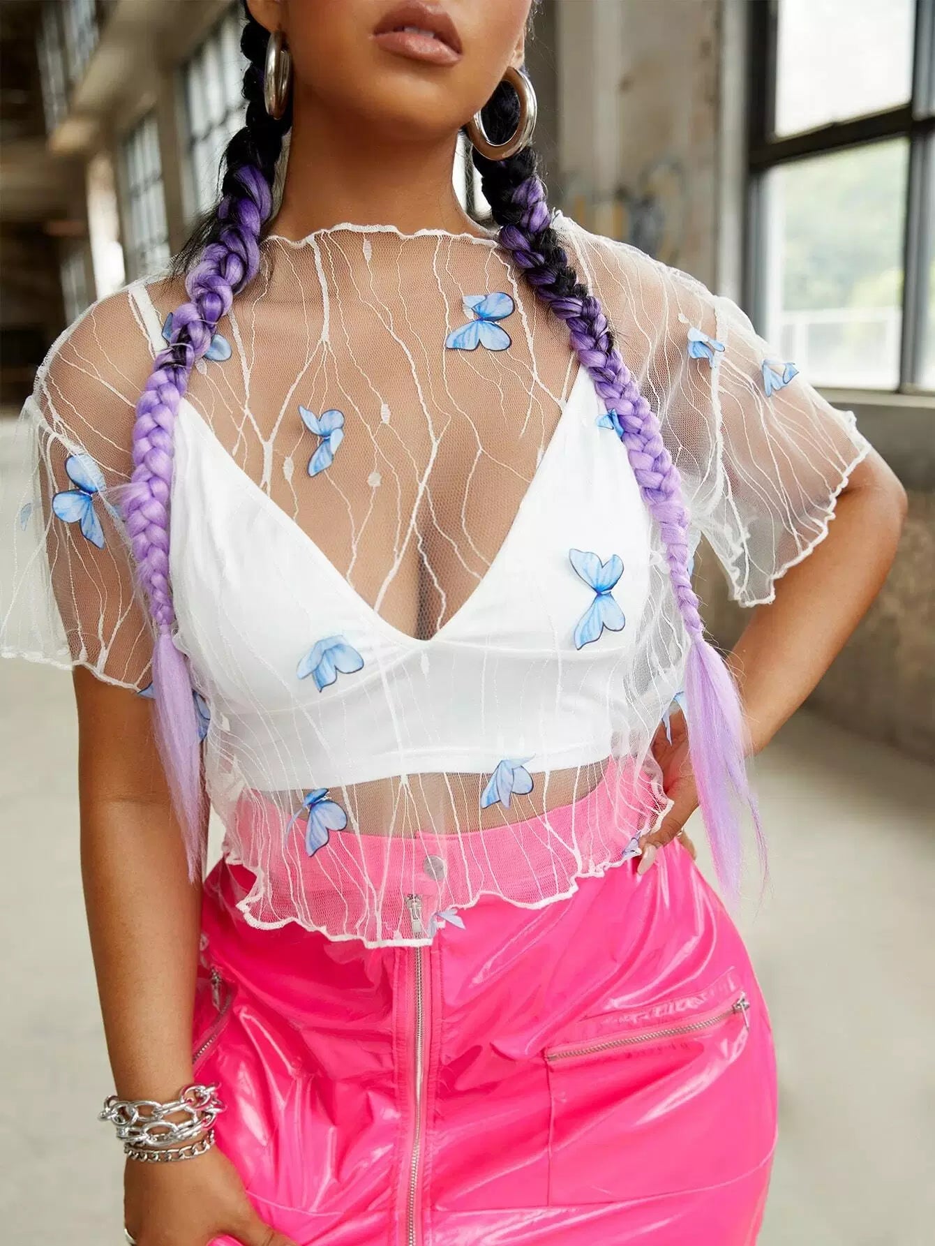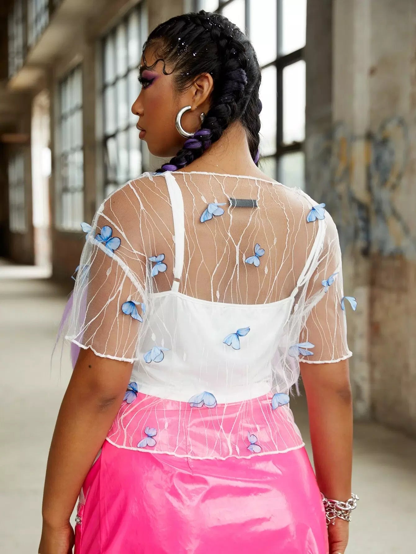 Plus 2 Pack Cami Top & Butterfly Print Sheer Mesh Top