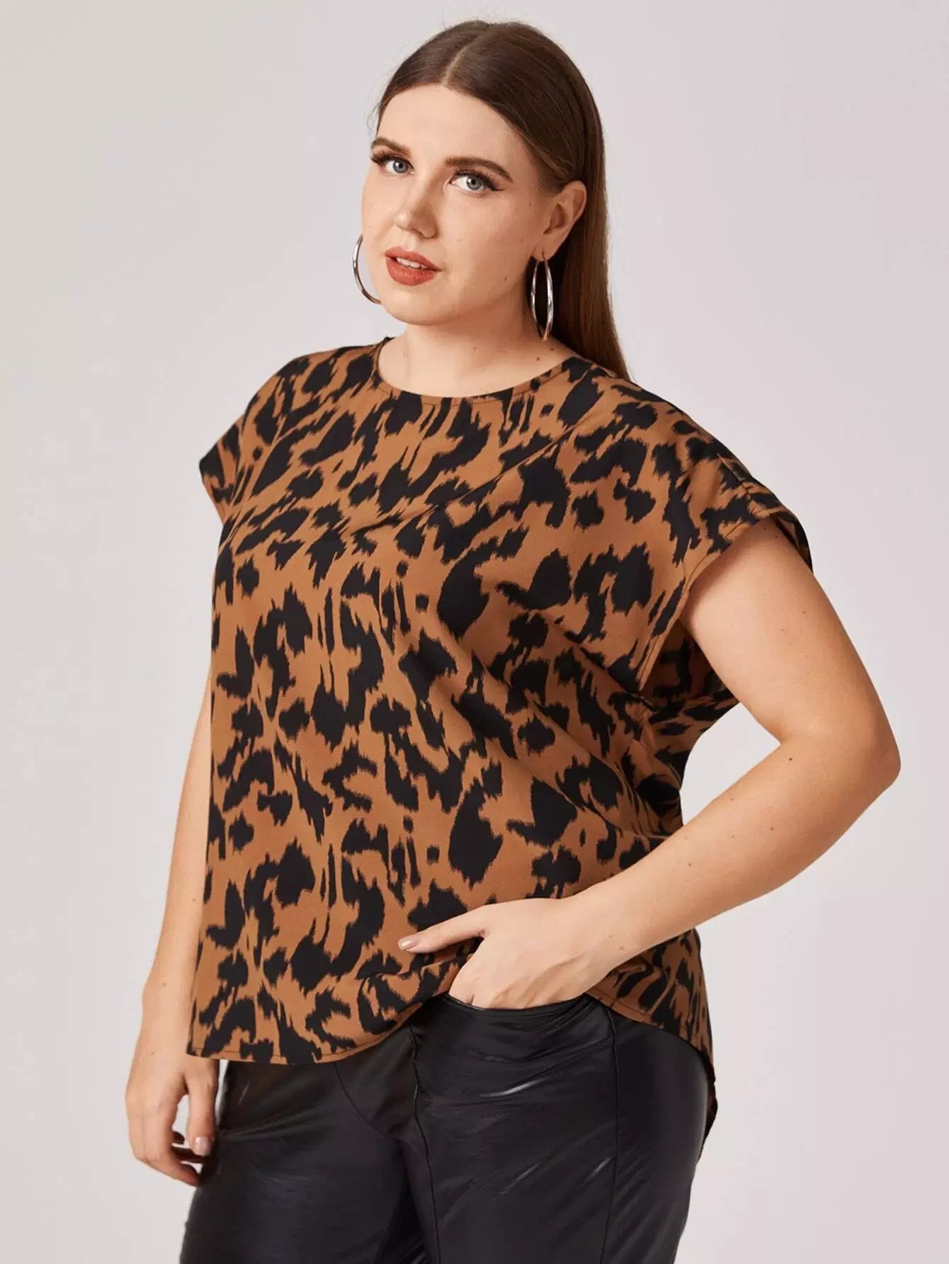 Plus All Over Print Keyhole Back Top