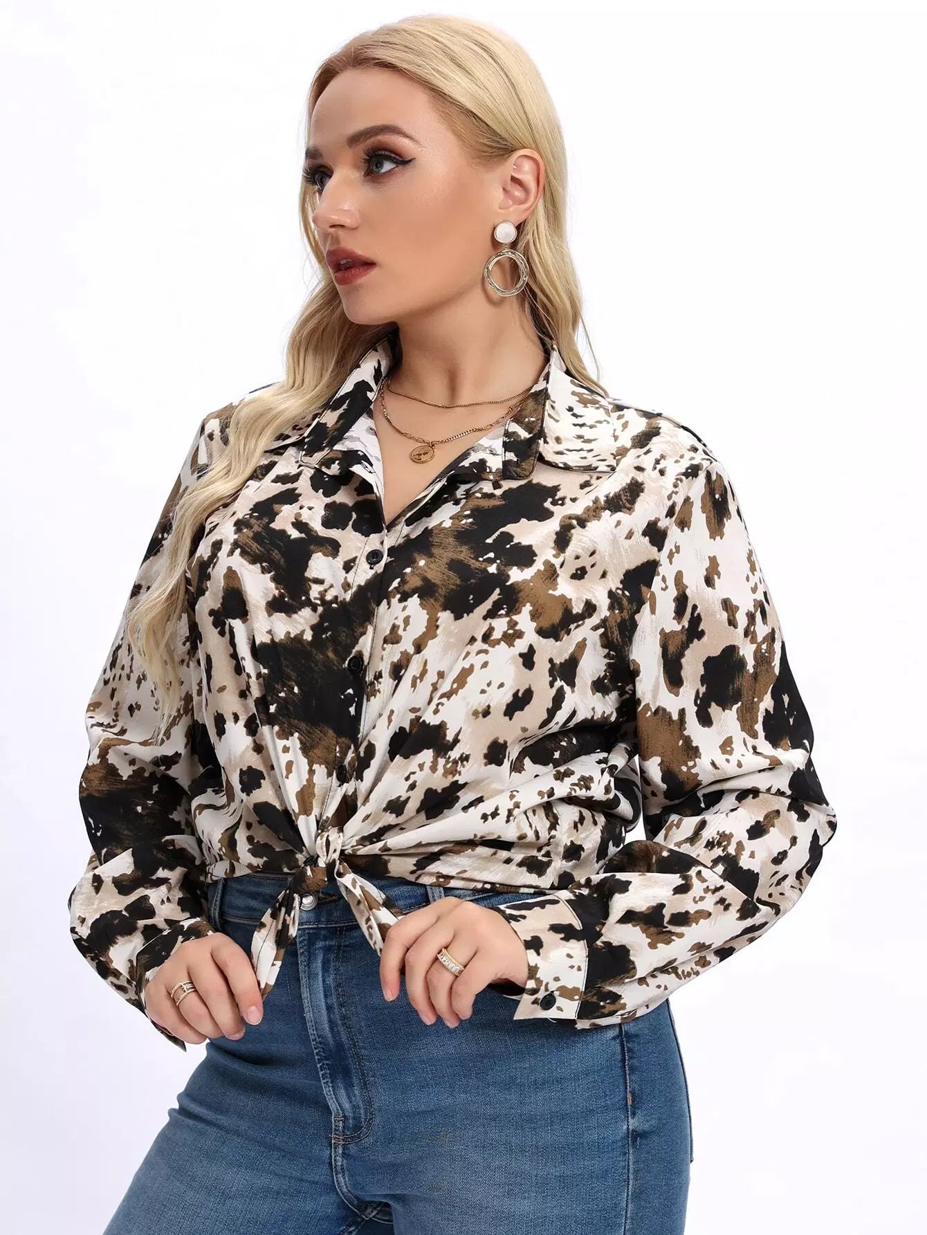 Plus Allover Print Button Up Shirt
