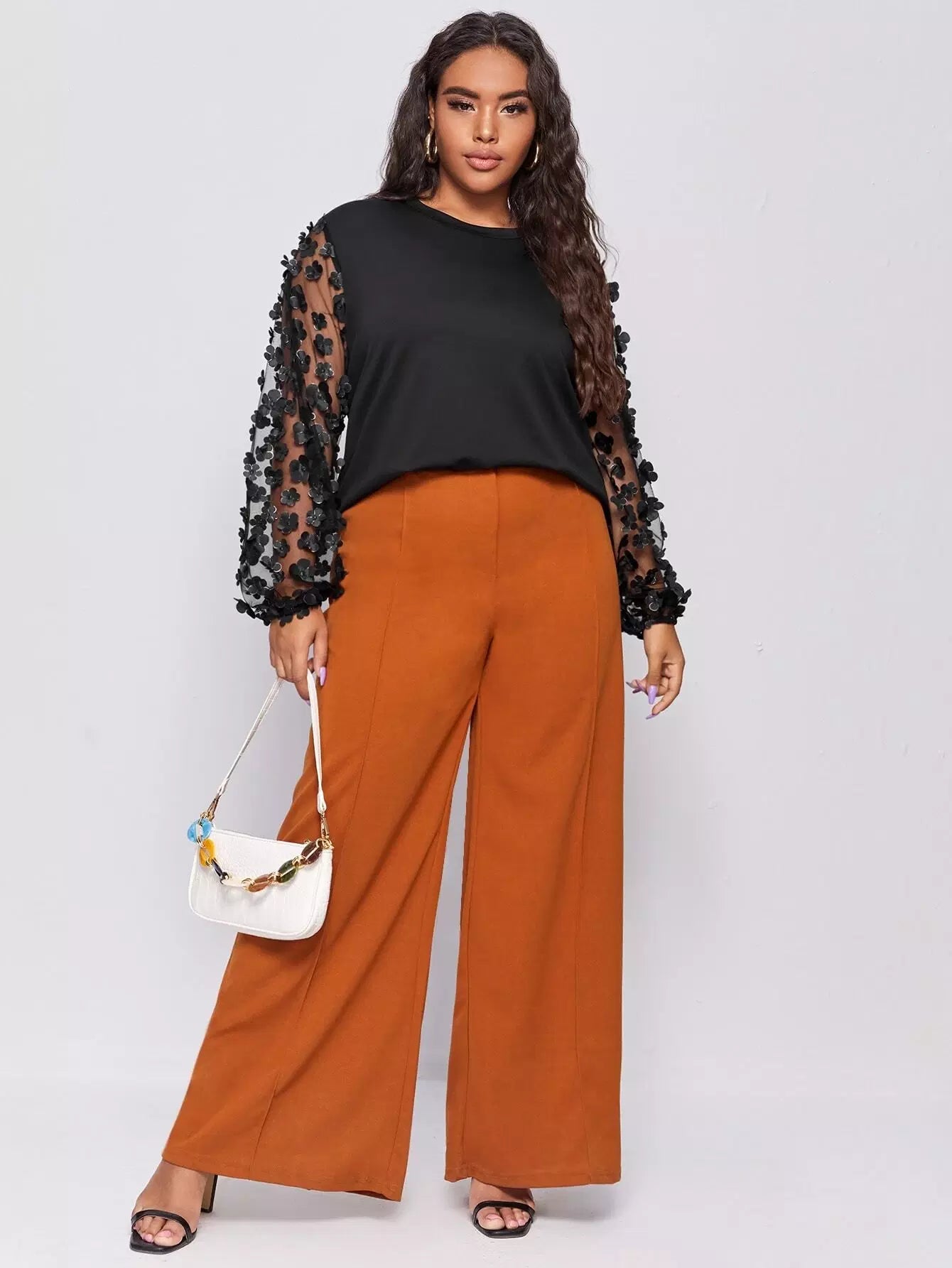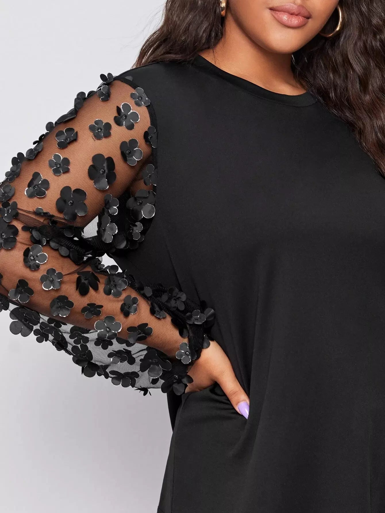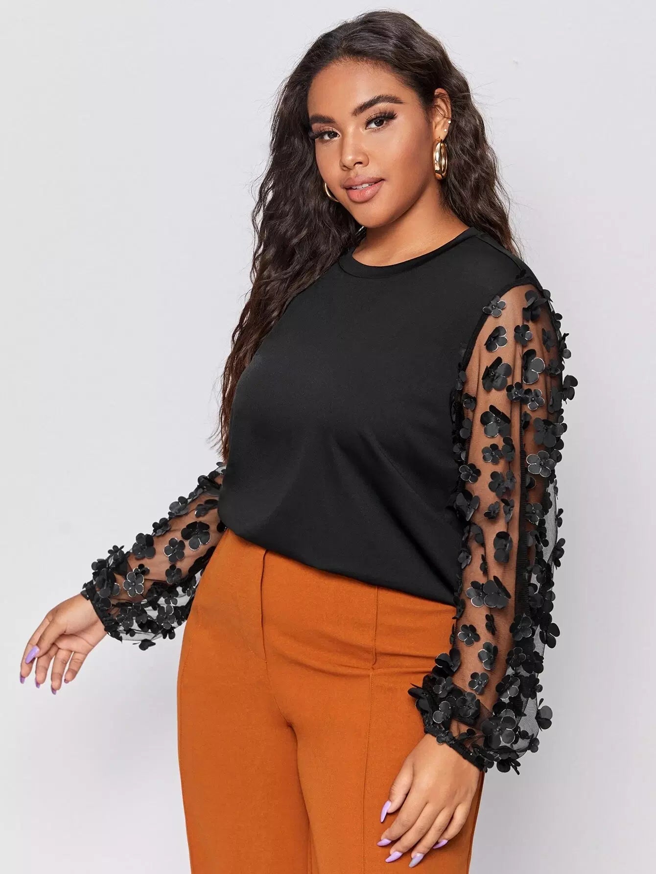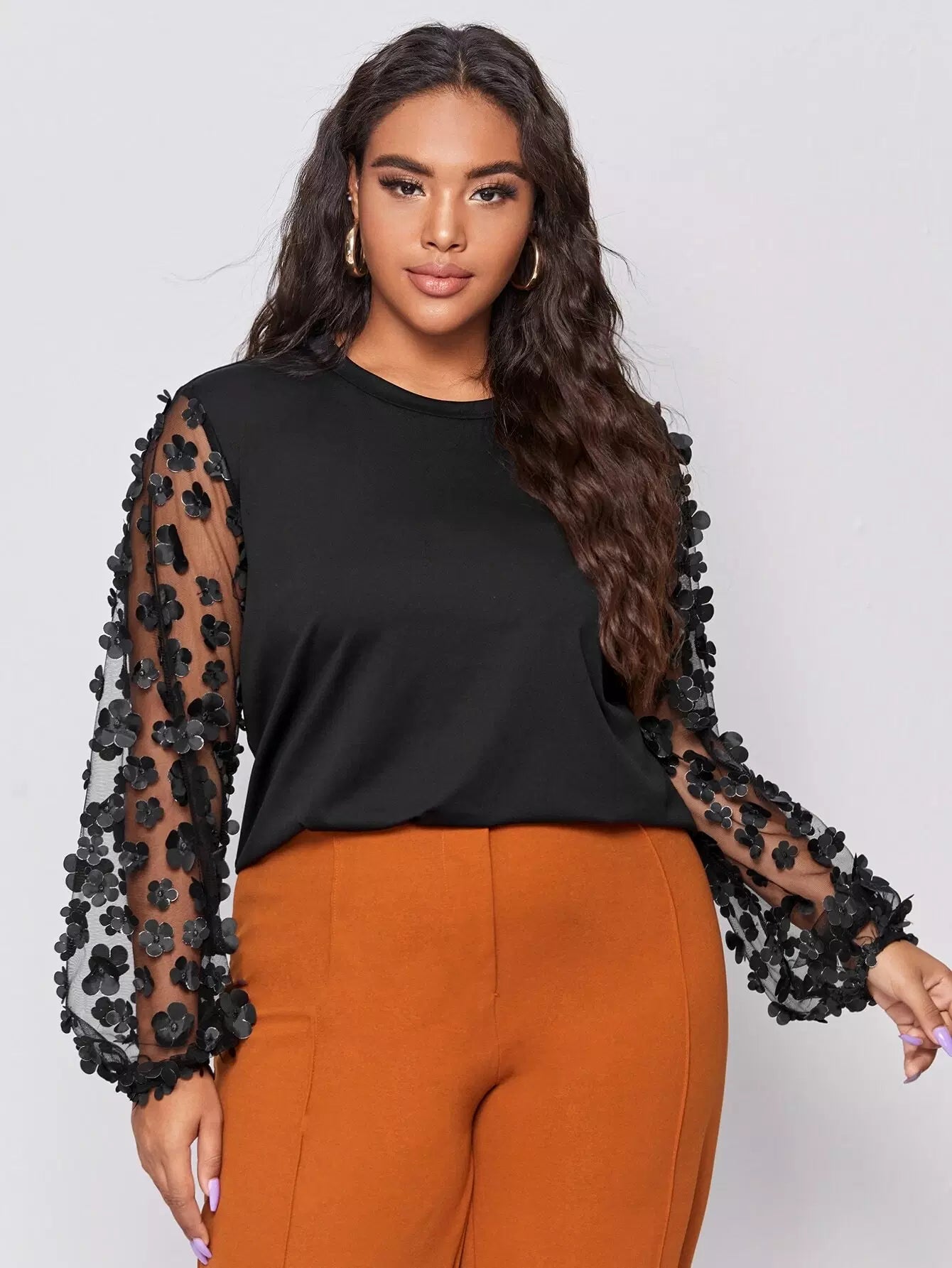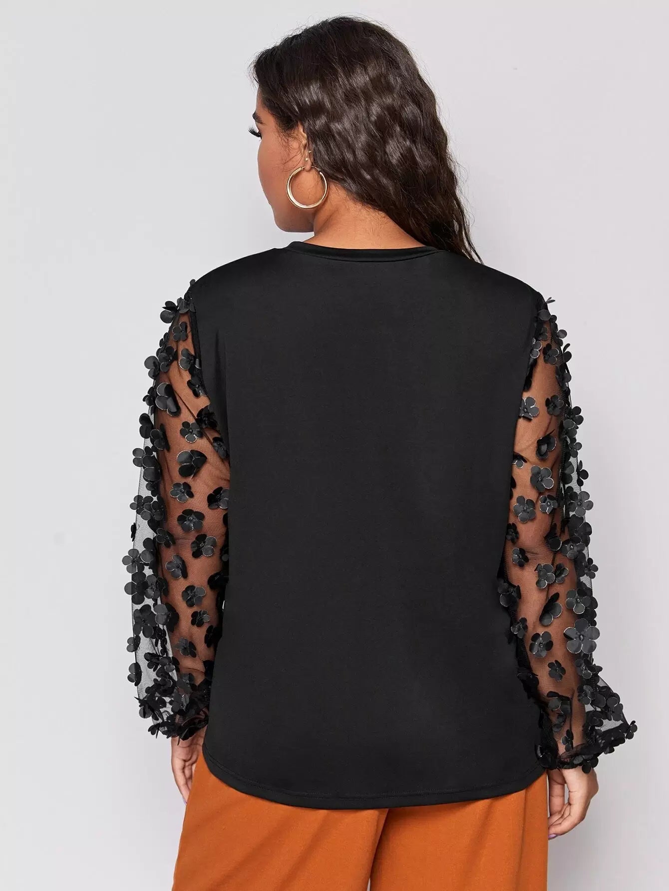 Women - Plus Appliques Mesh Bishop Sleeve Top