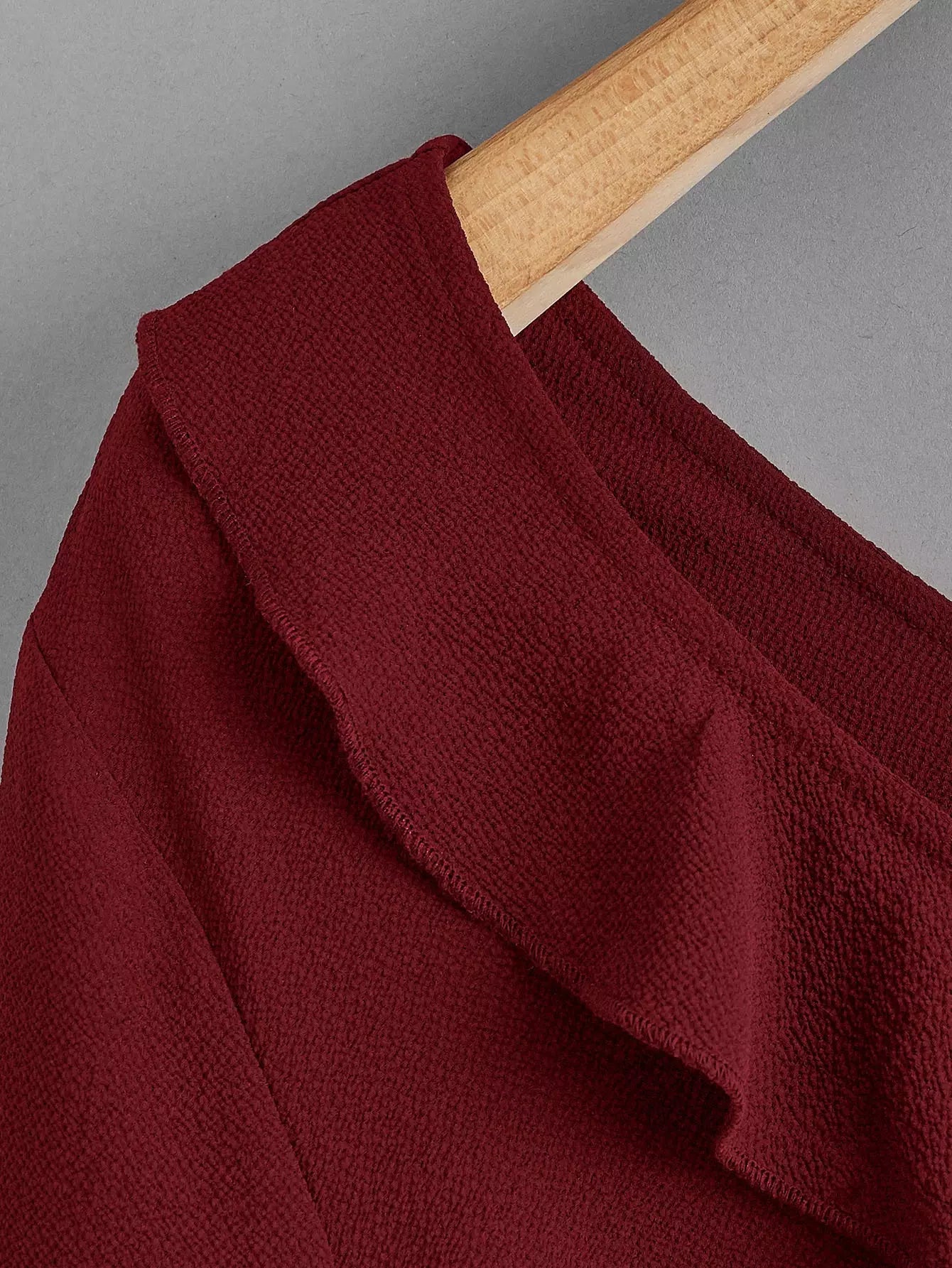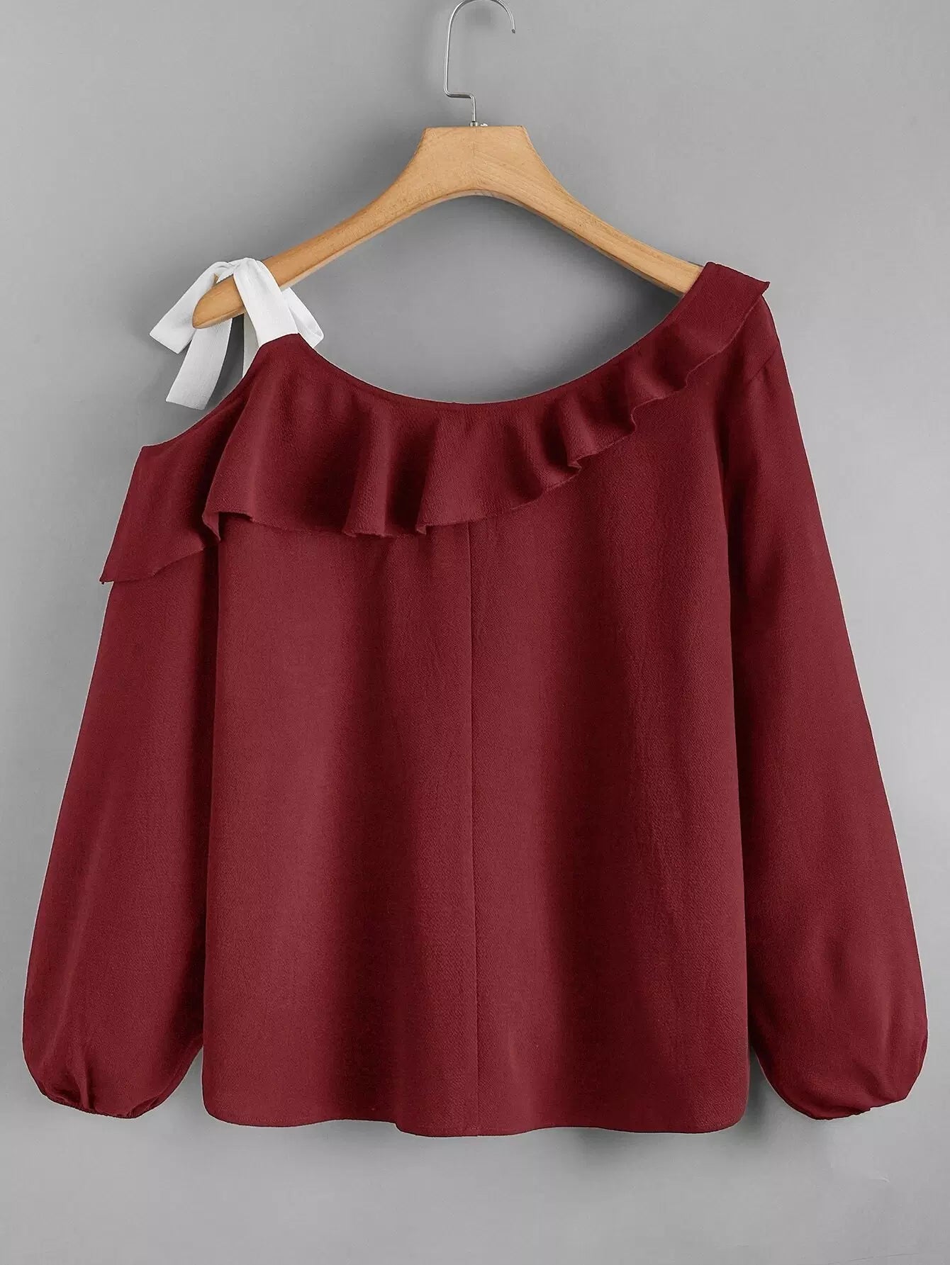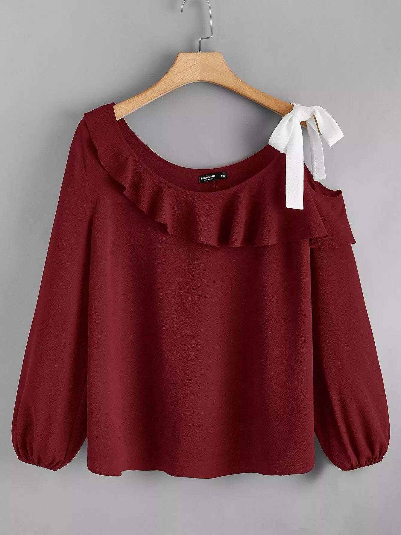 Plus Asymmetrical Neck Ruffle Trim Blouse