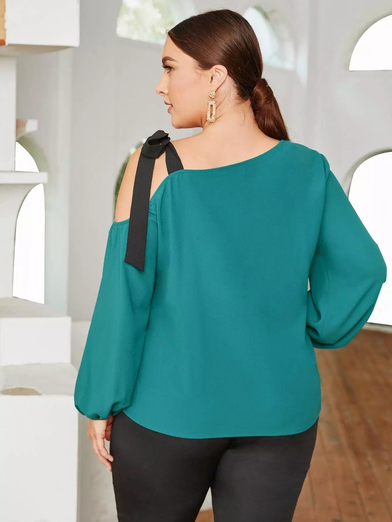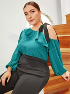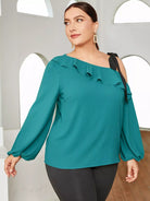 Plus Asymmetrical Neck Ruffle Trim Top