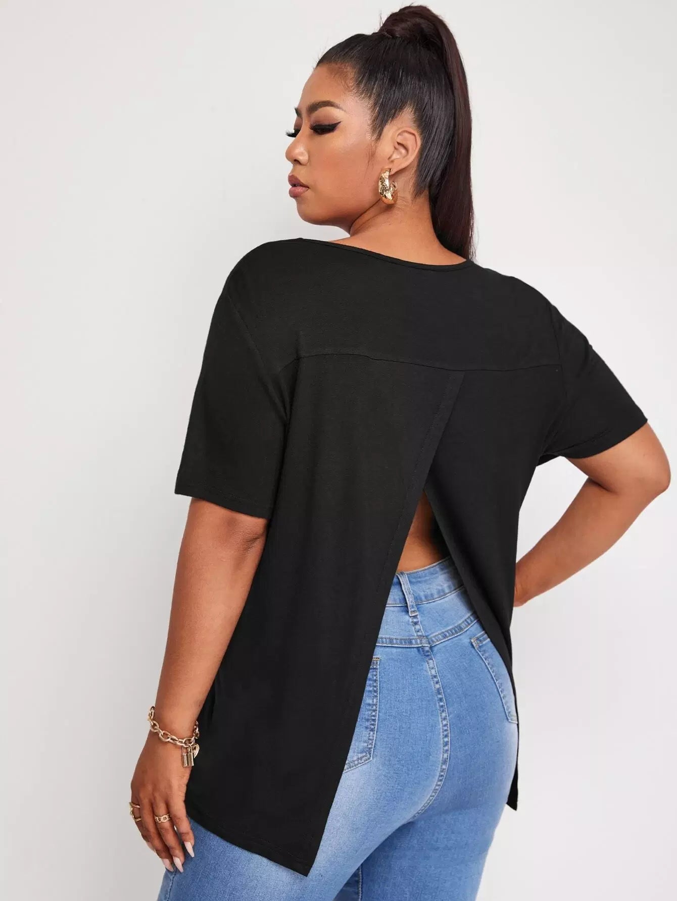Plus Back Split Solid Tee