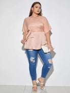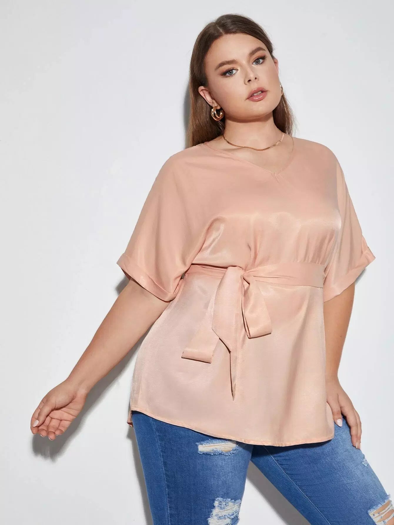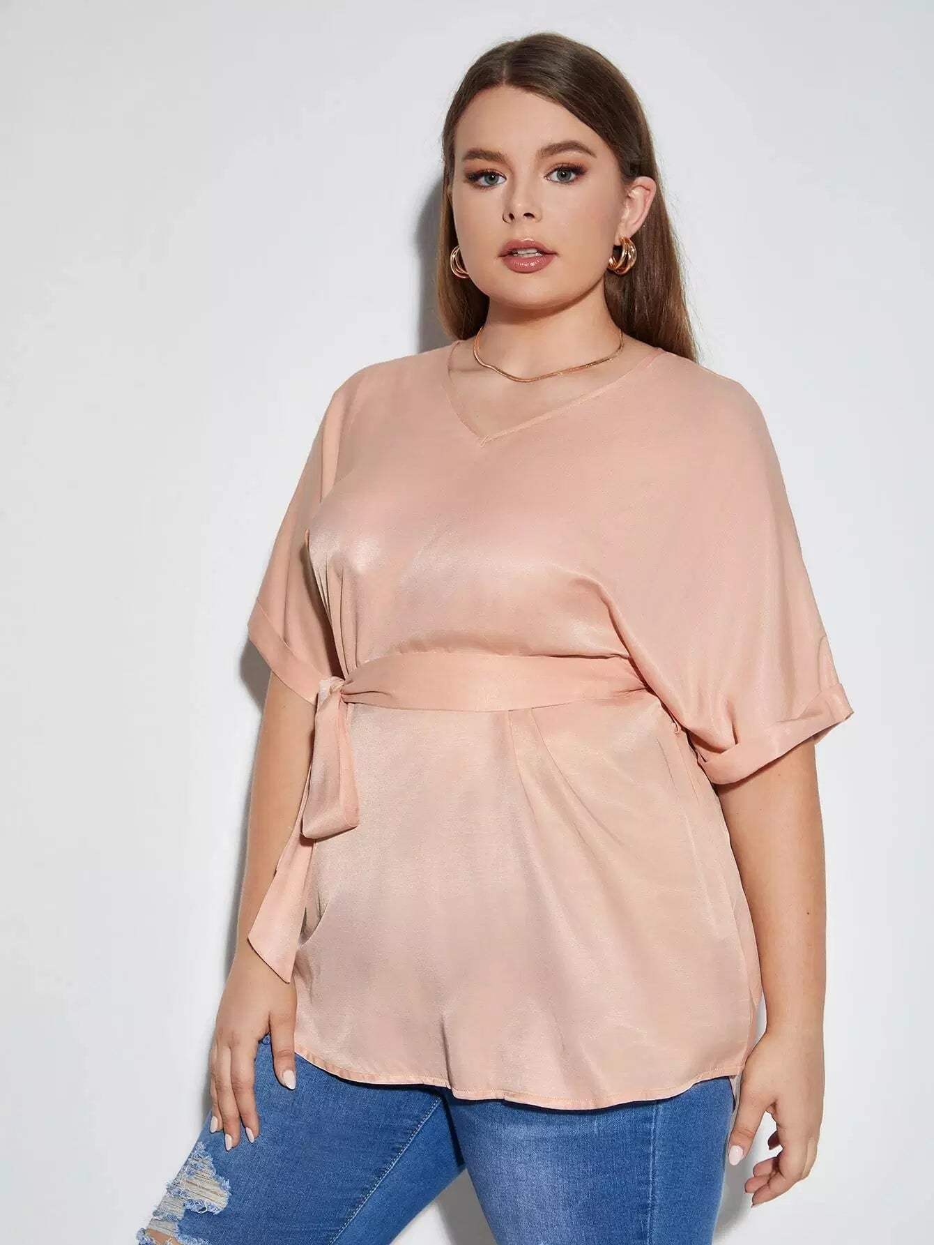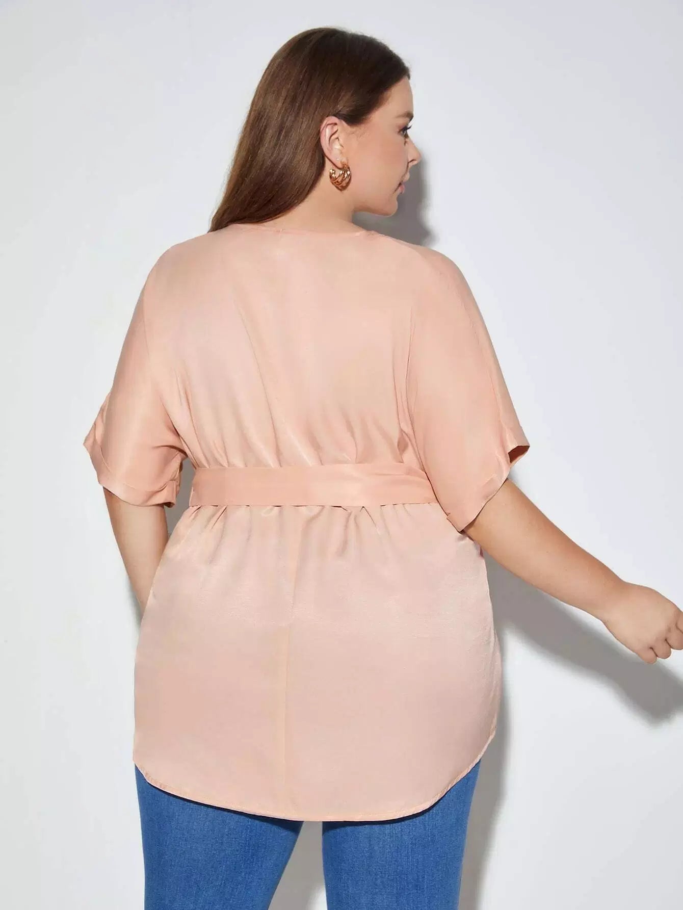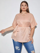 Plus Size Blouses - Plus Batwing Sleeve Belted Blouse