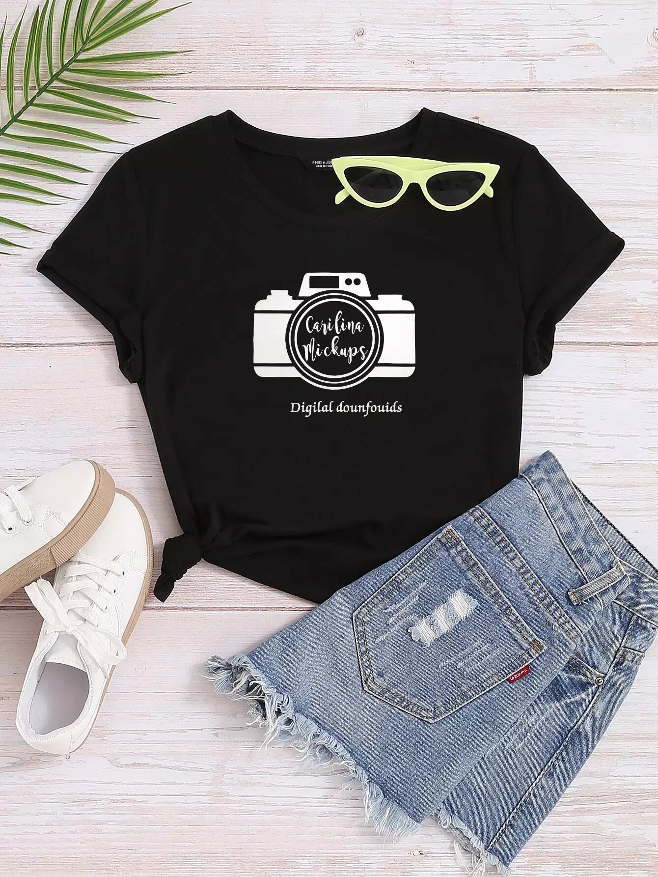 Plus Camera & Slogan Print Tee
