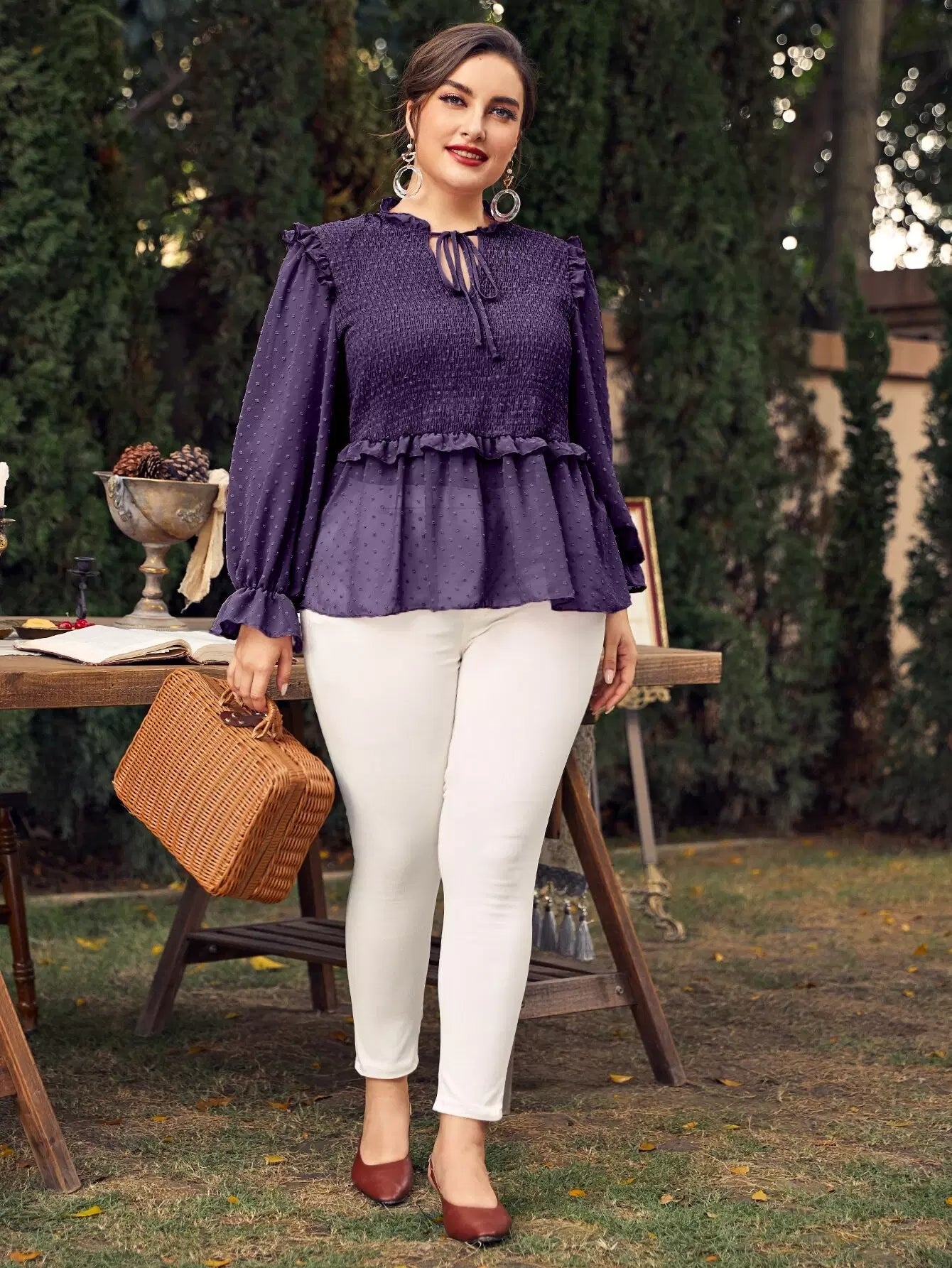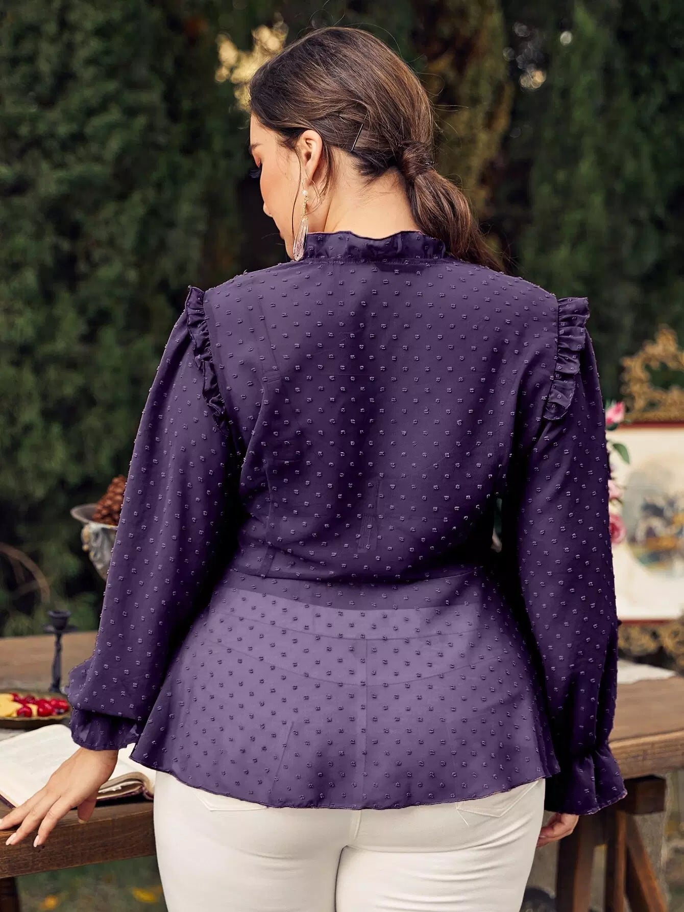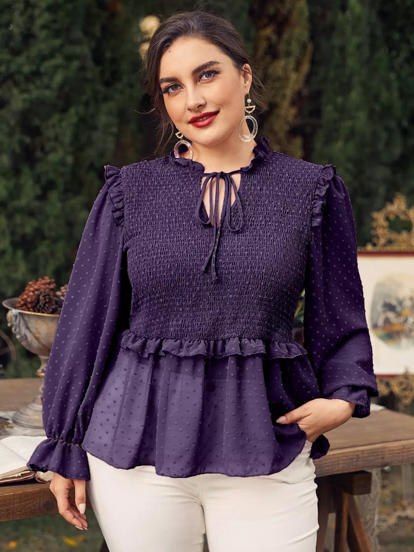 Plus Chiffon Swiss Dot Babydoll Blouse
