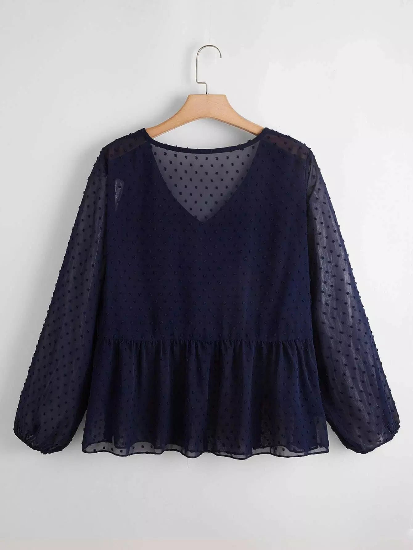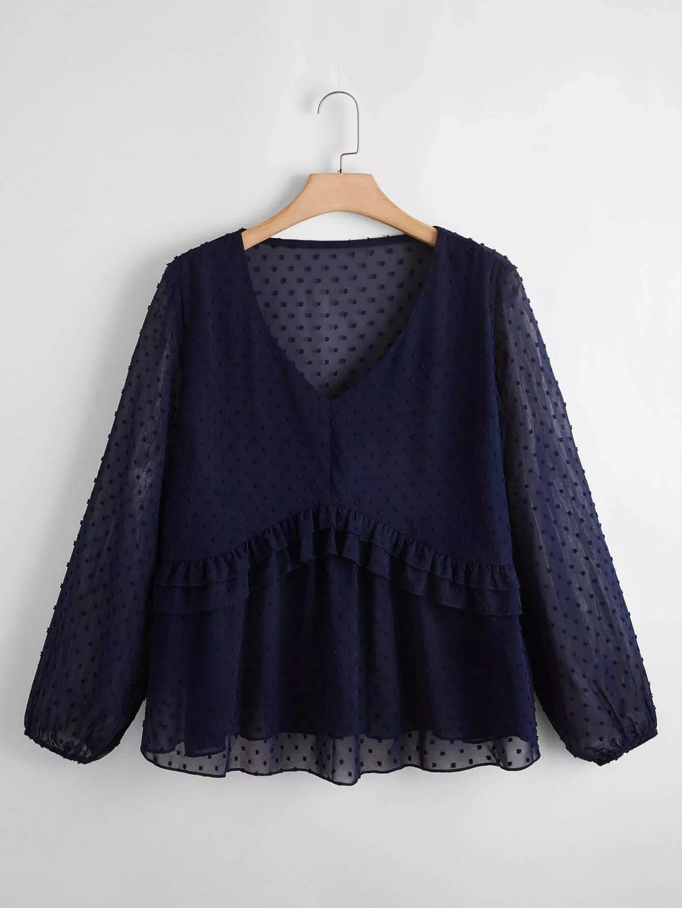 Plus Chiffon Swiss Dot Tiered Layer Ruffle Babydoll Blouse