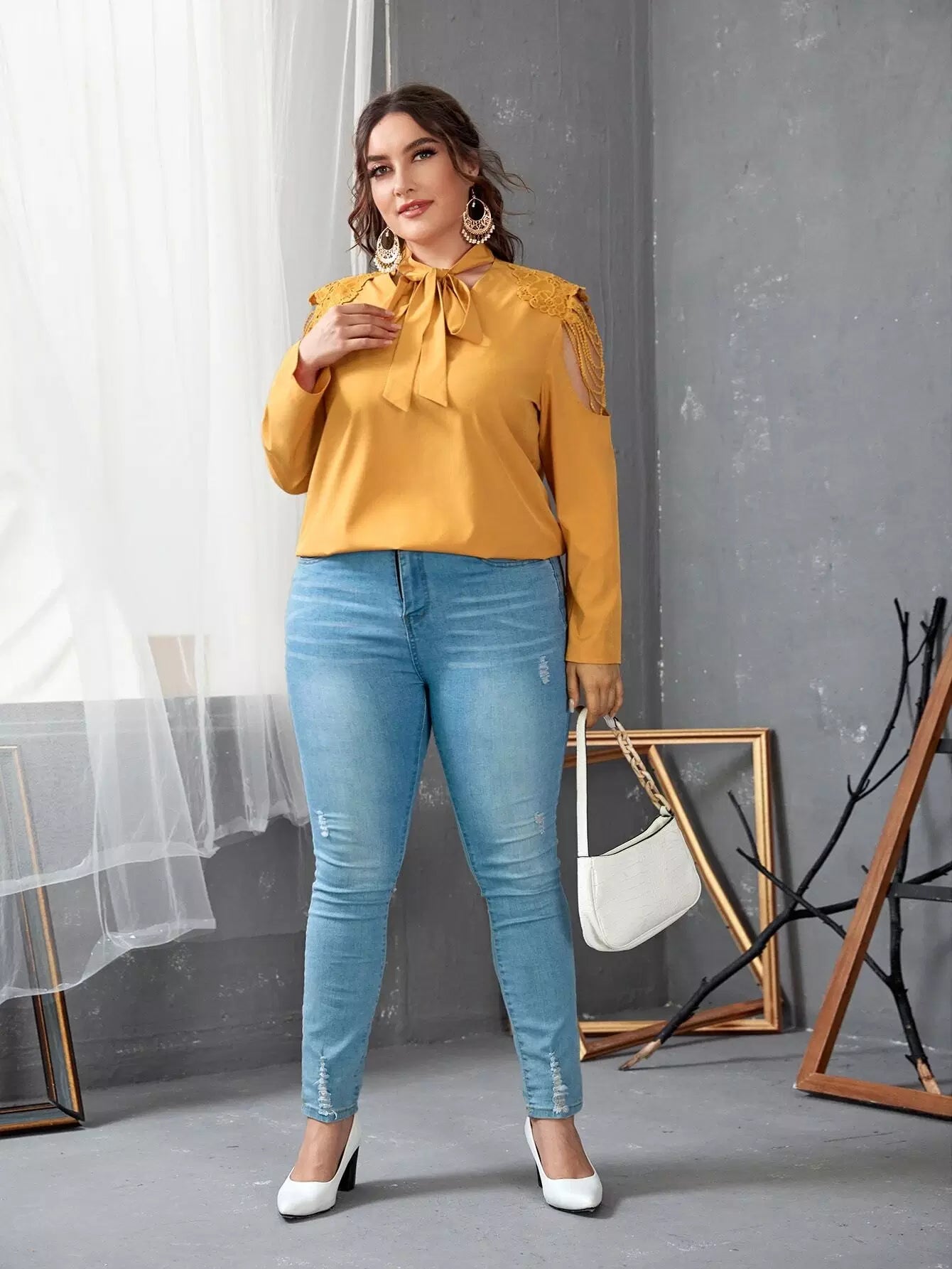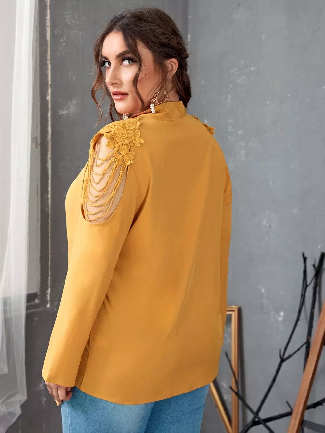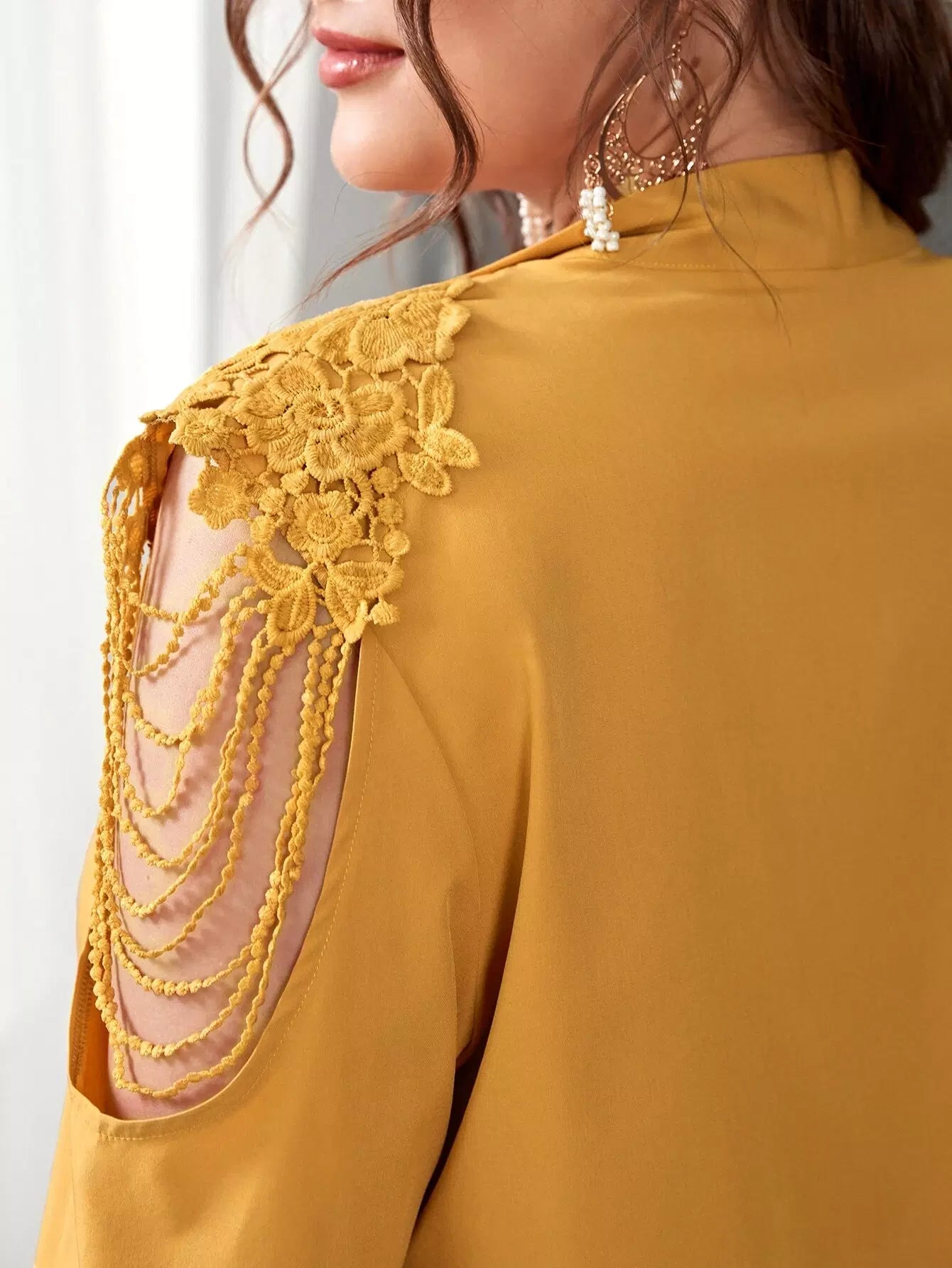 Plus Contrast Guipure Cut Out Tunic Blouse