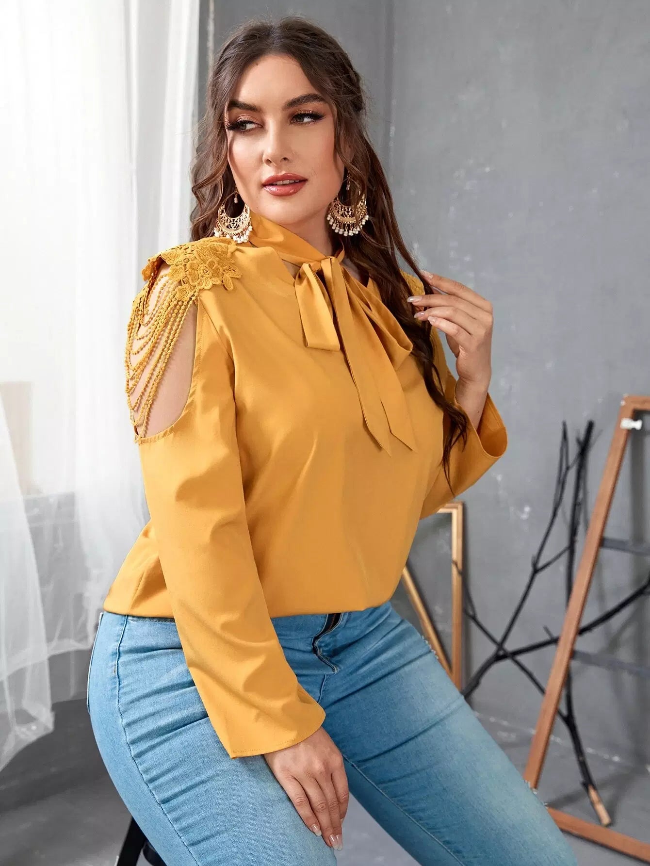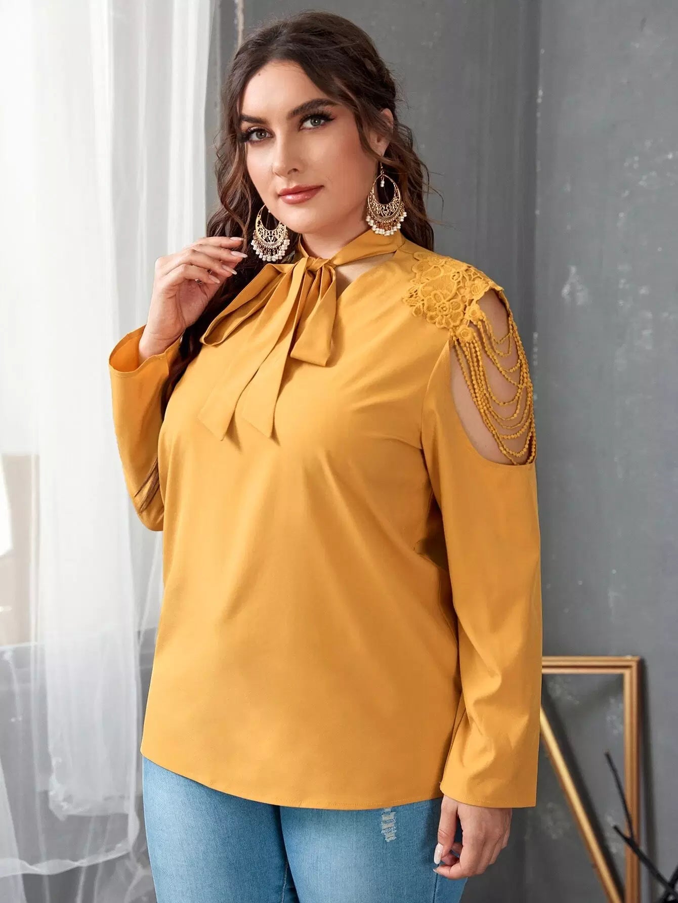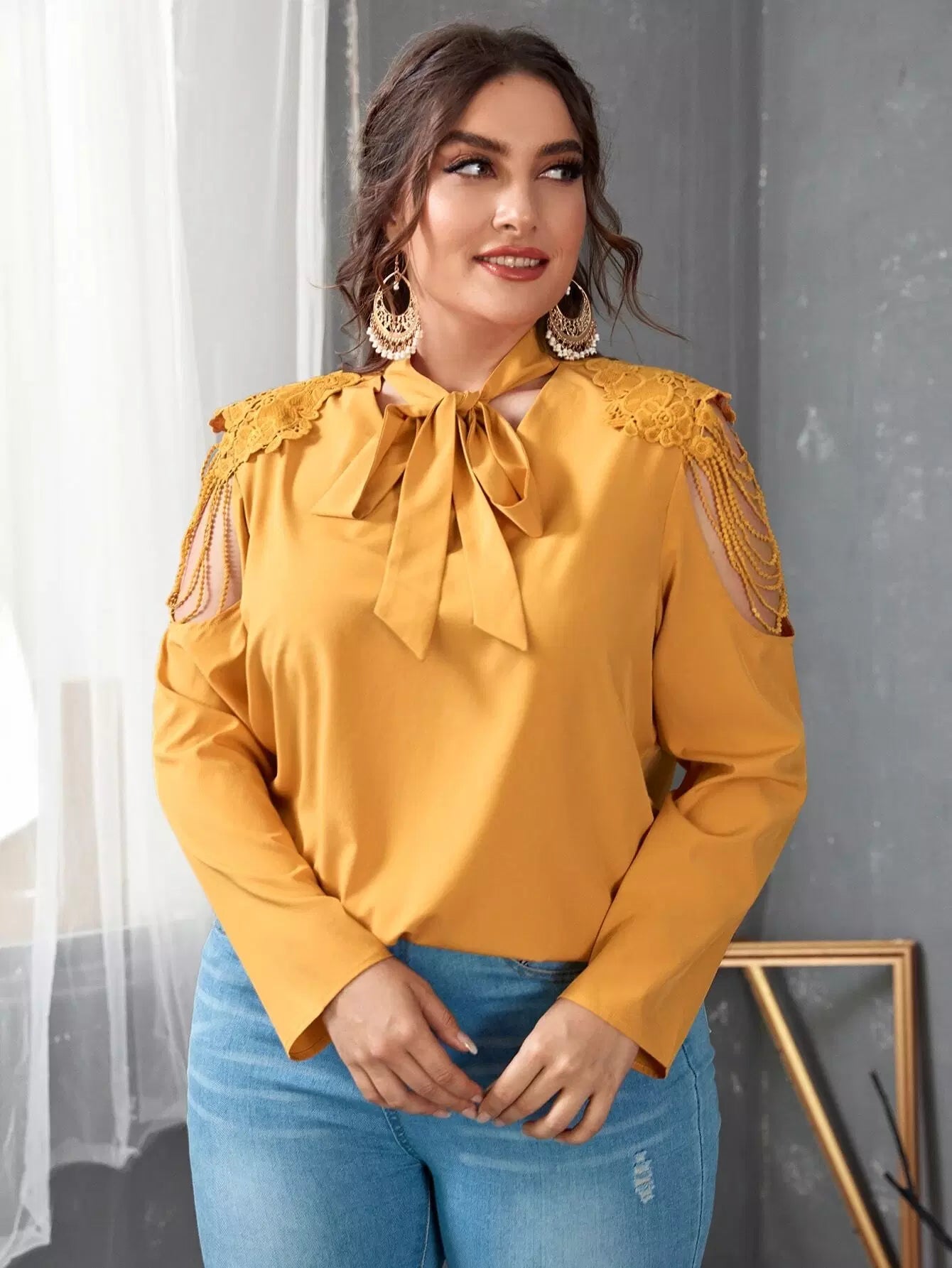 Plus Contrast Guipure Cut Out Tunic Blouse