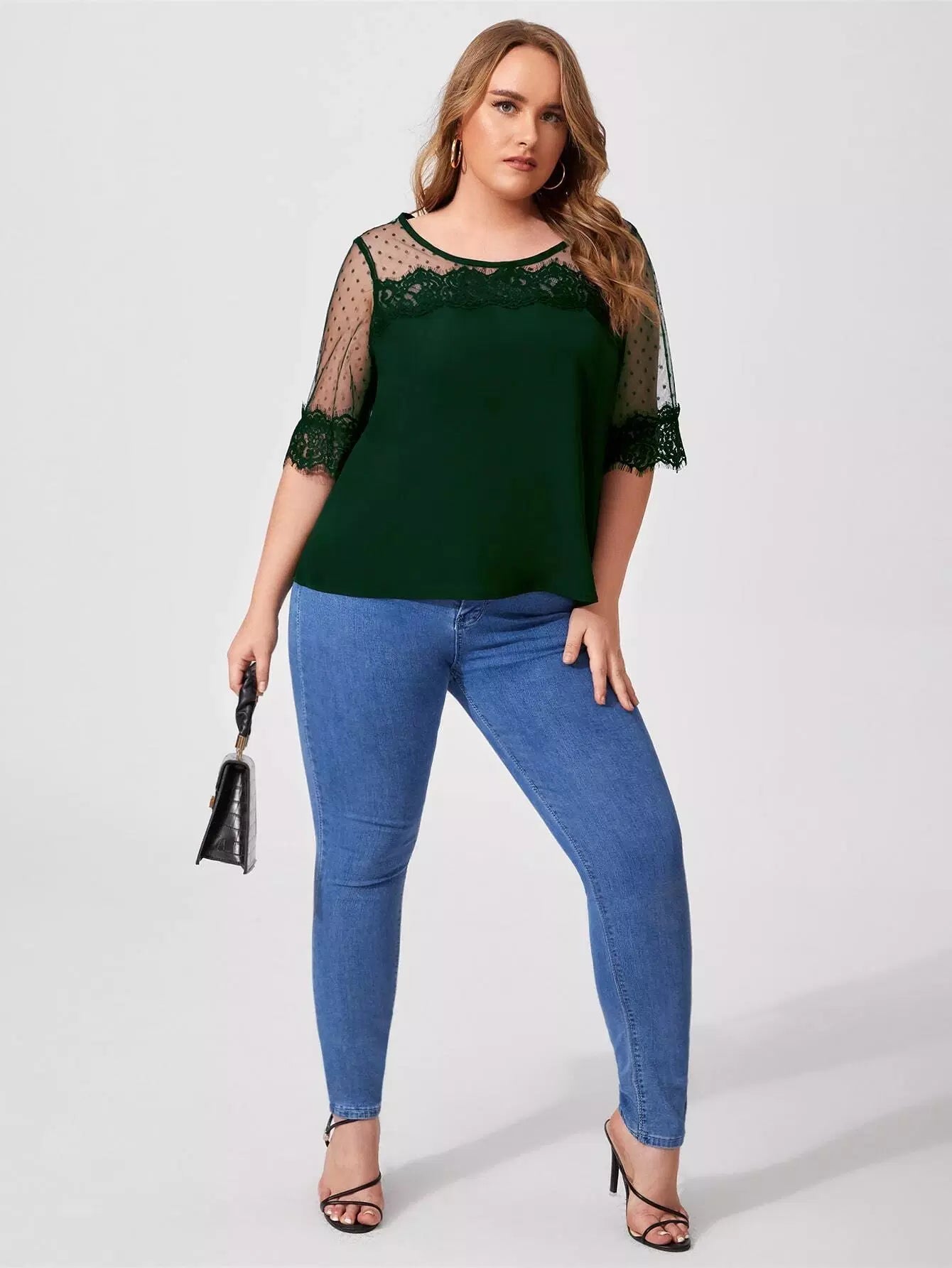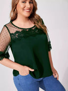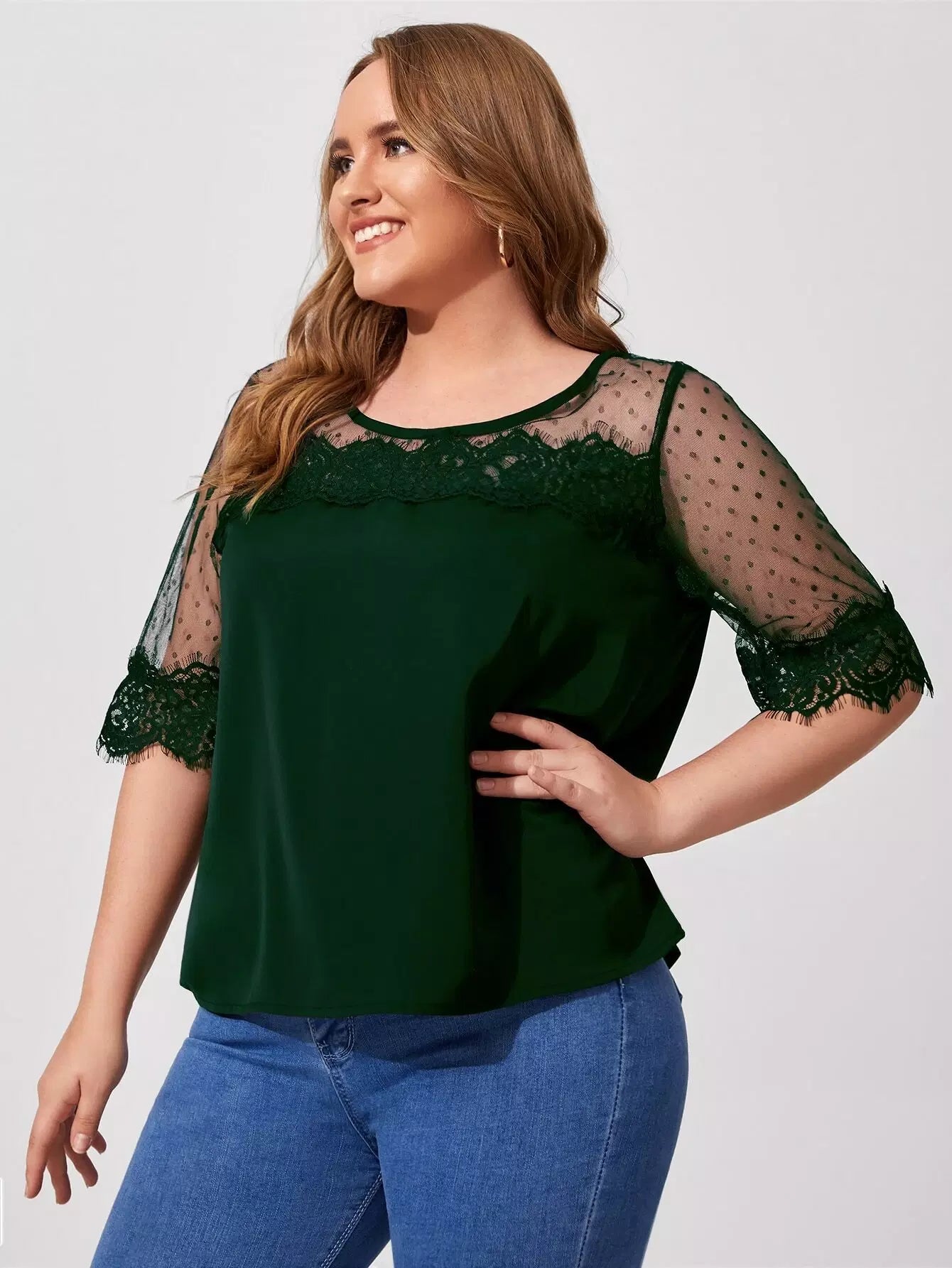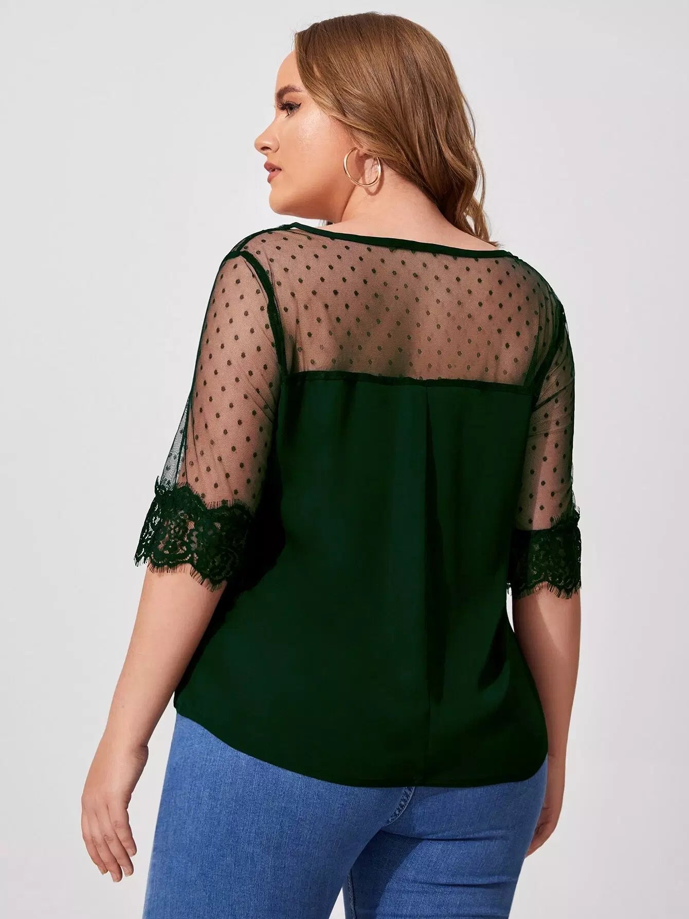 Plus Contrast Lace Dobby Mesh Yoke Blouse