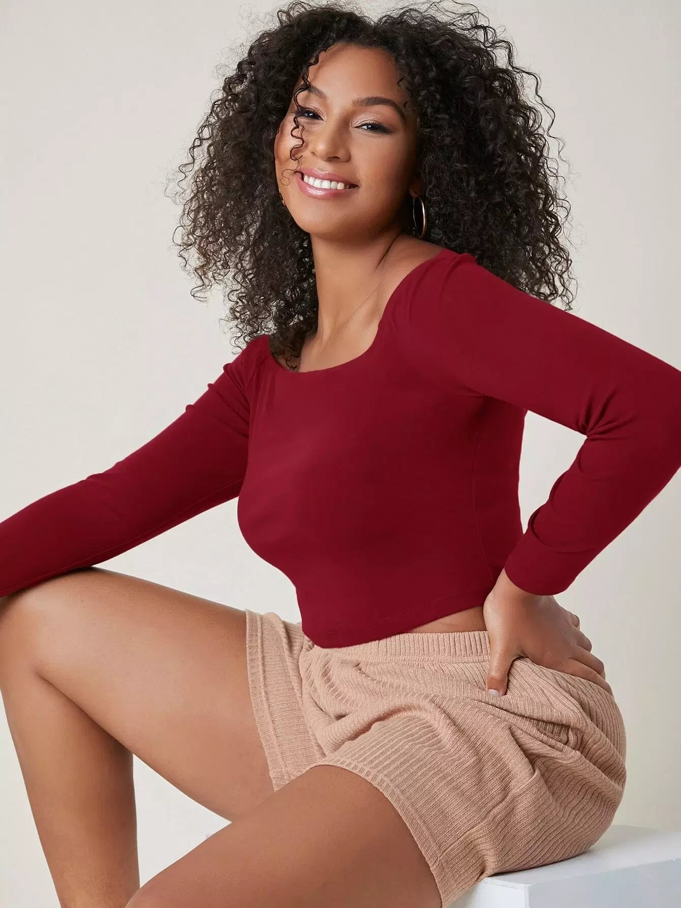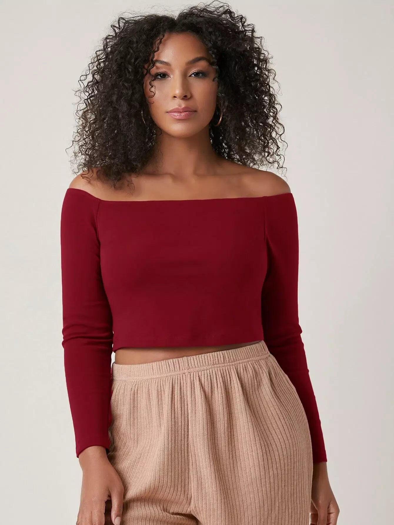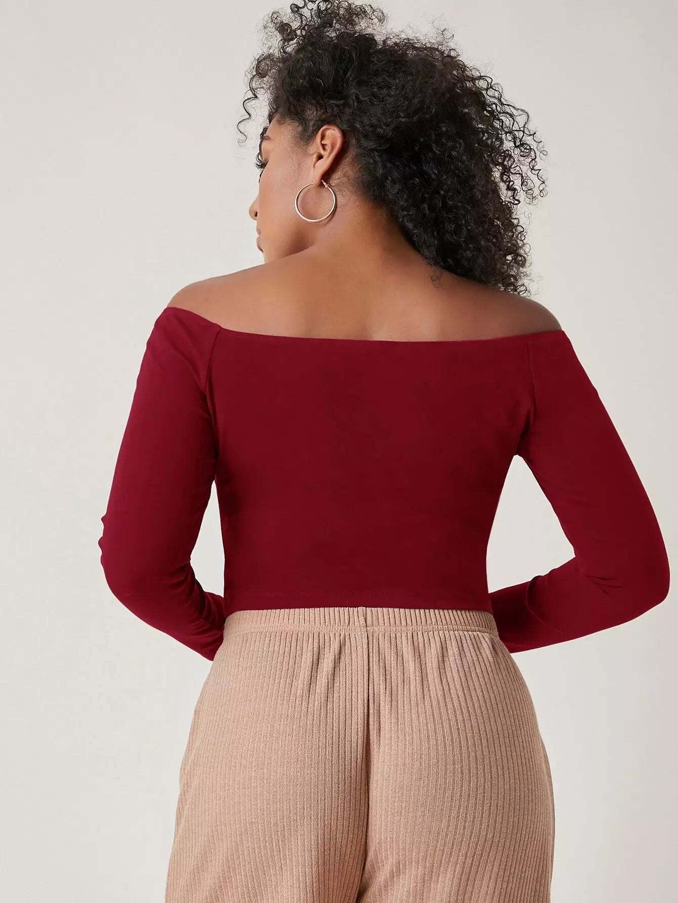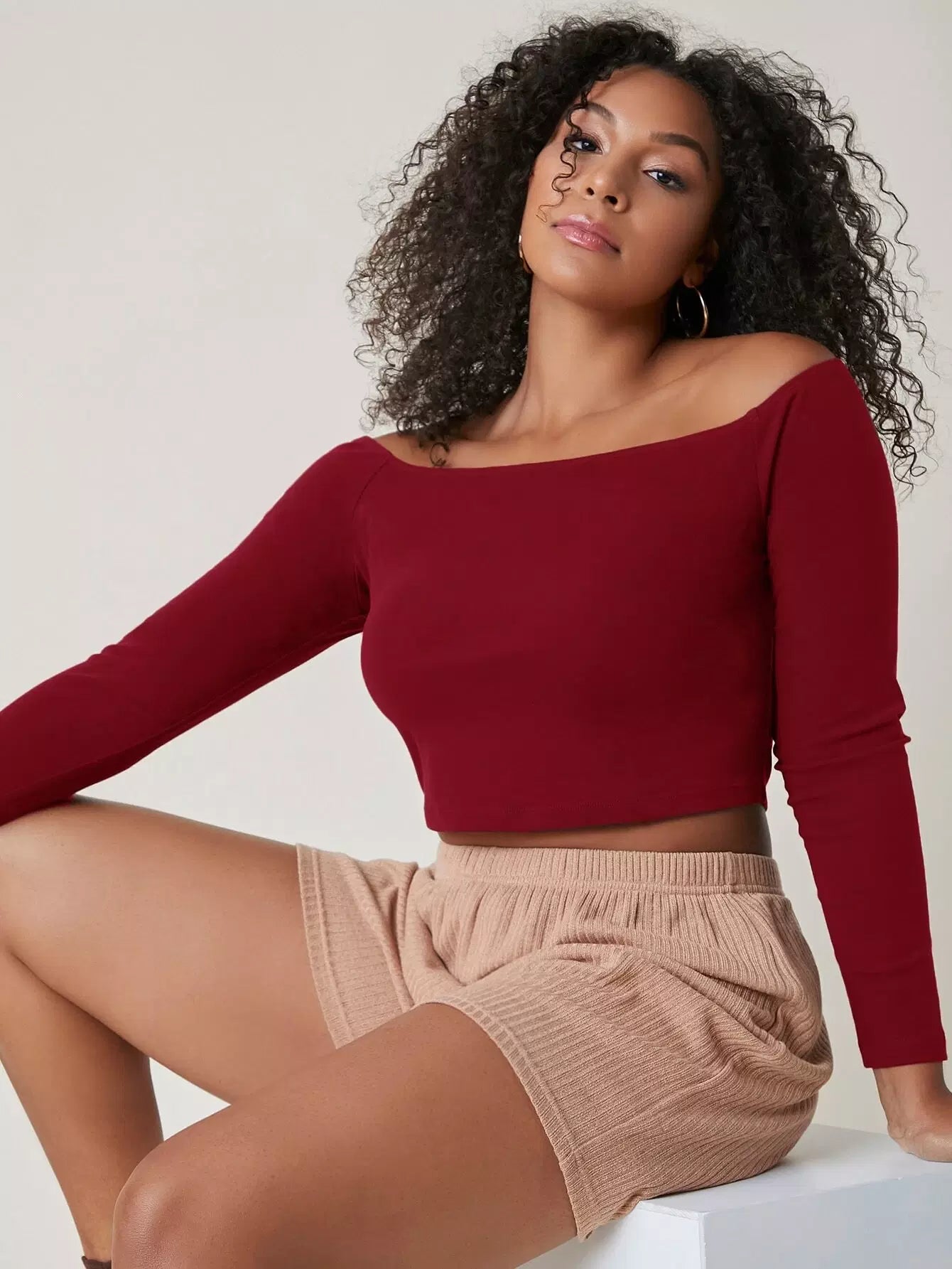 Plus Cotton Off Shoulder Solid Form Fitted Tee