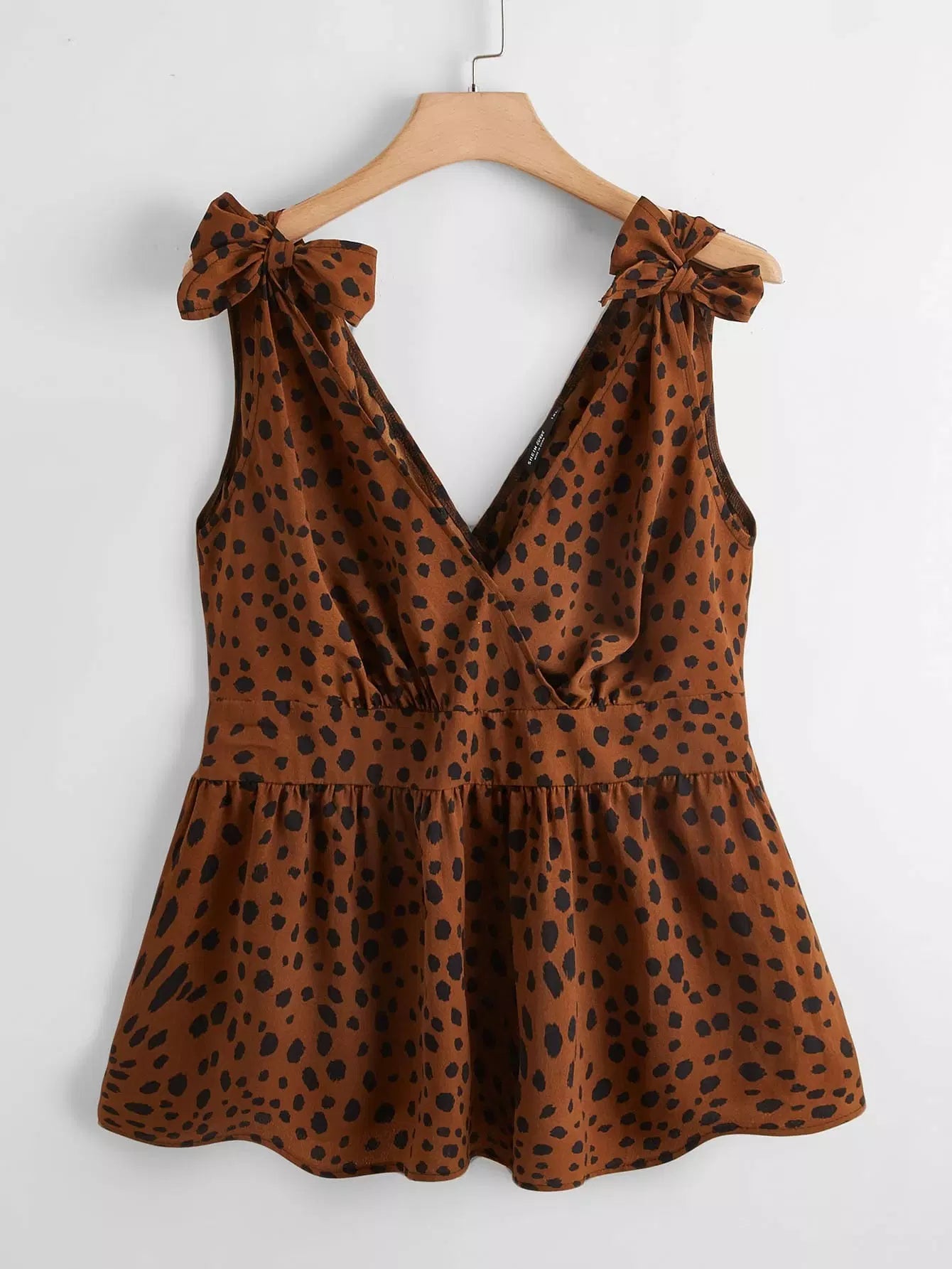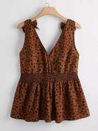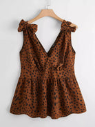 Plus Dalmatian Shirred Waist Ruffle Hem Blouse