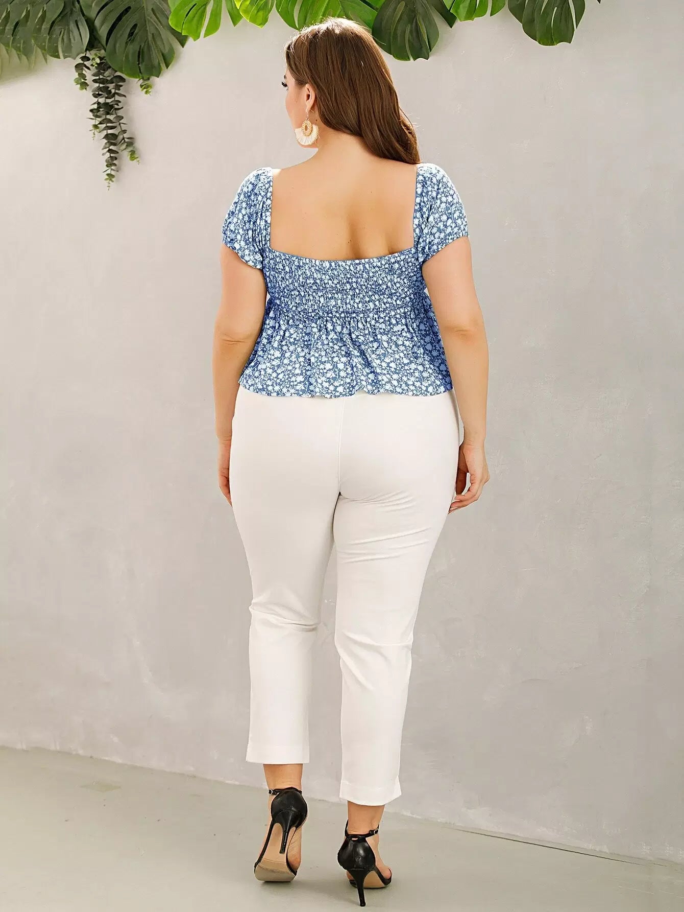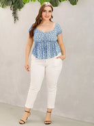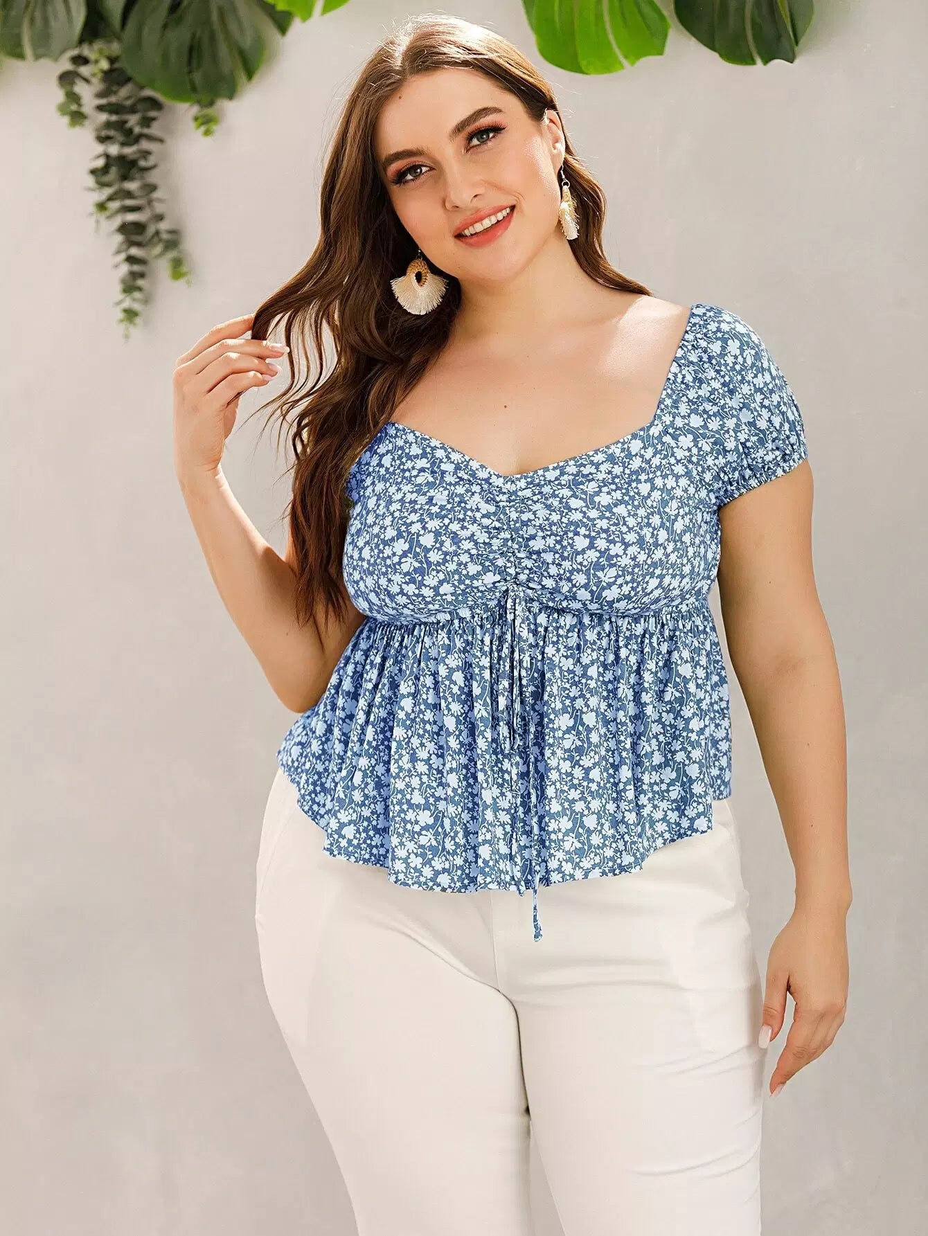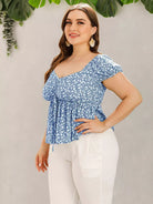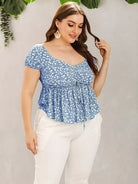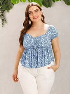 Plus Ditsy Floral Drawstring Babydoll Milkmaid Blouse