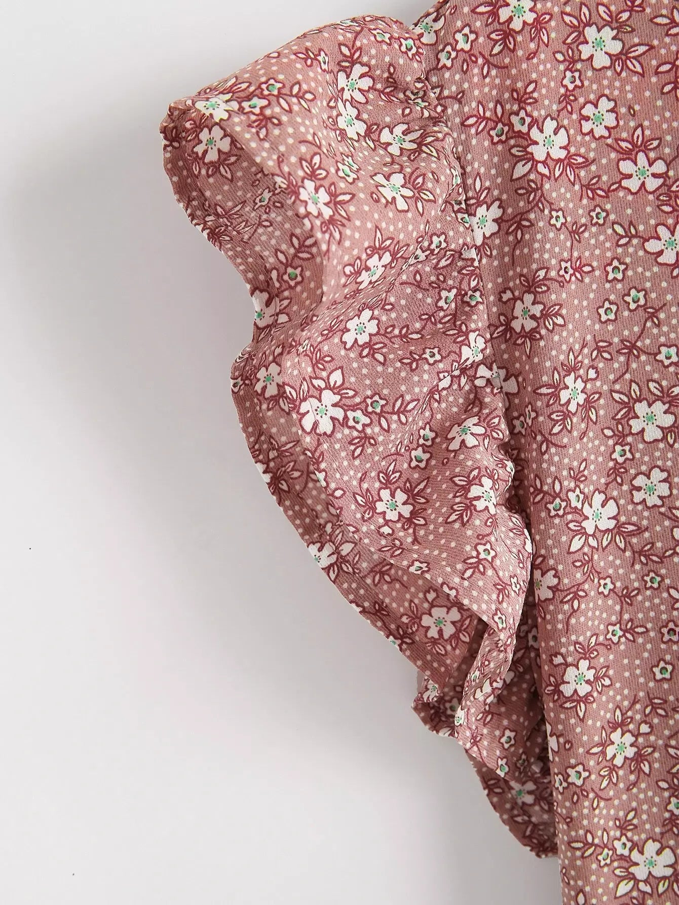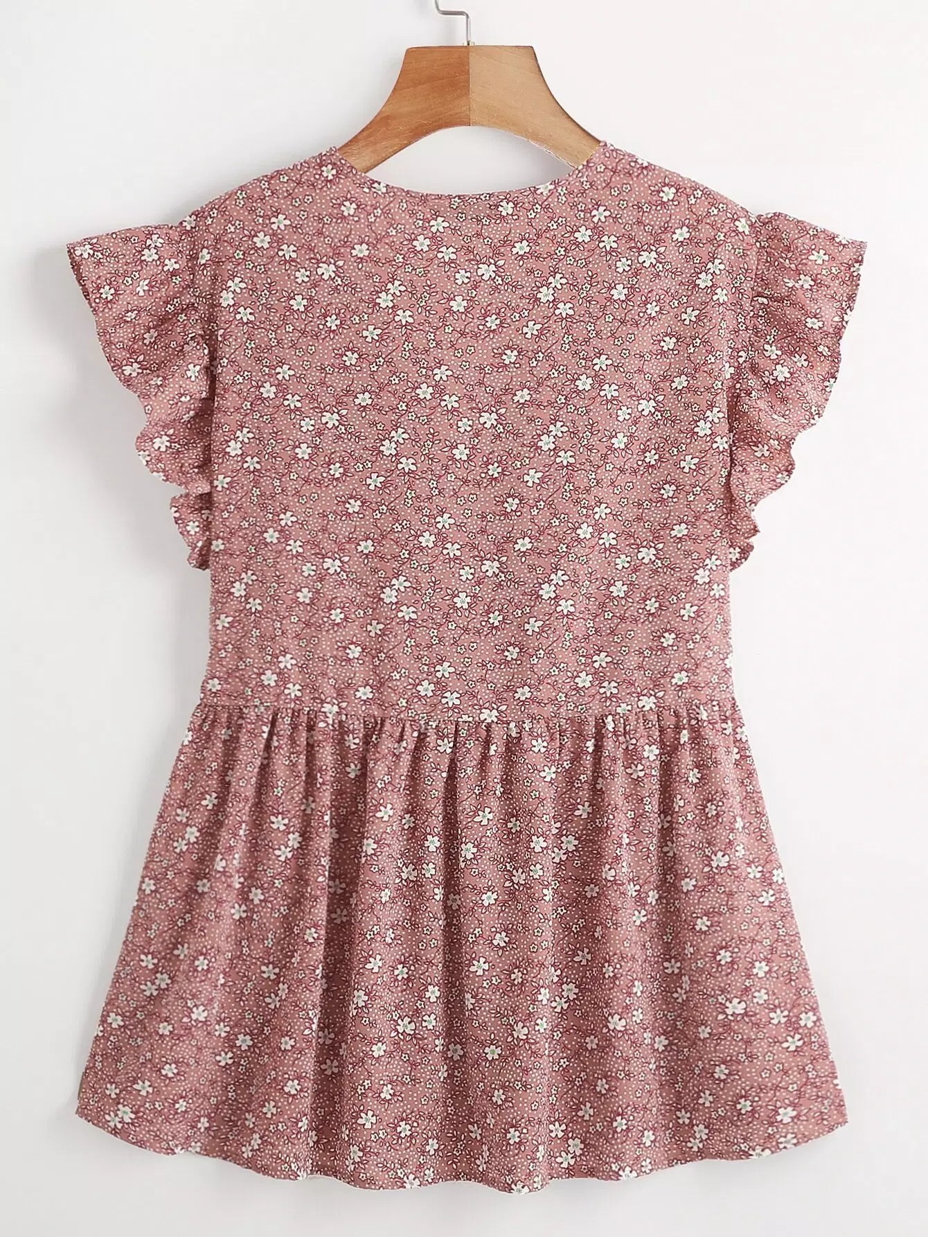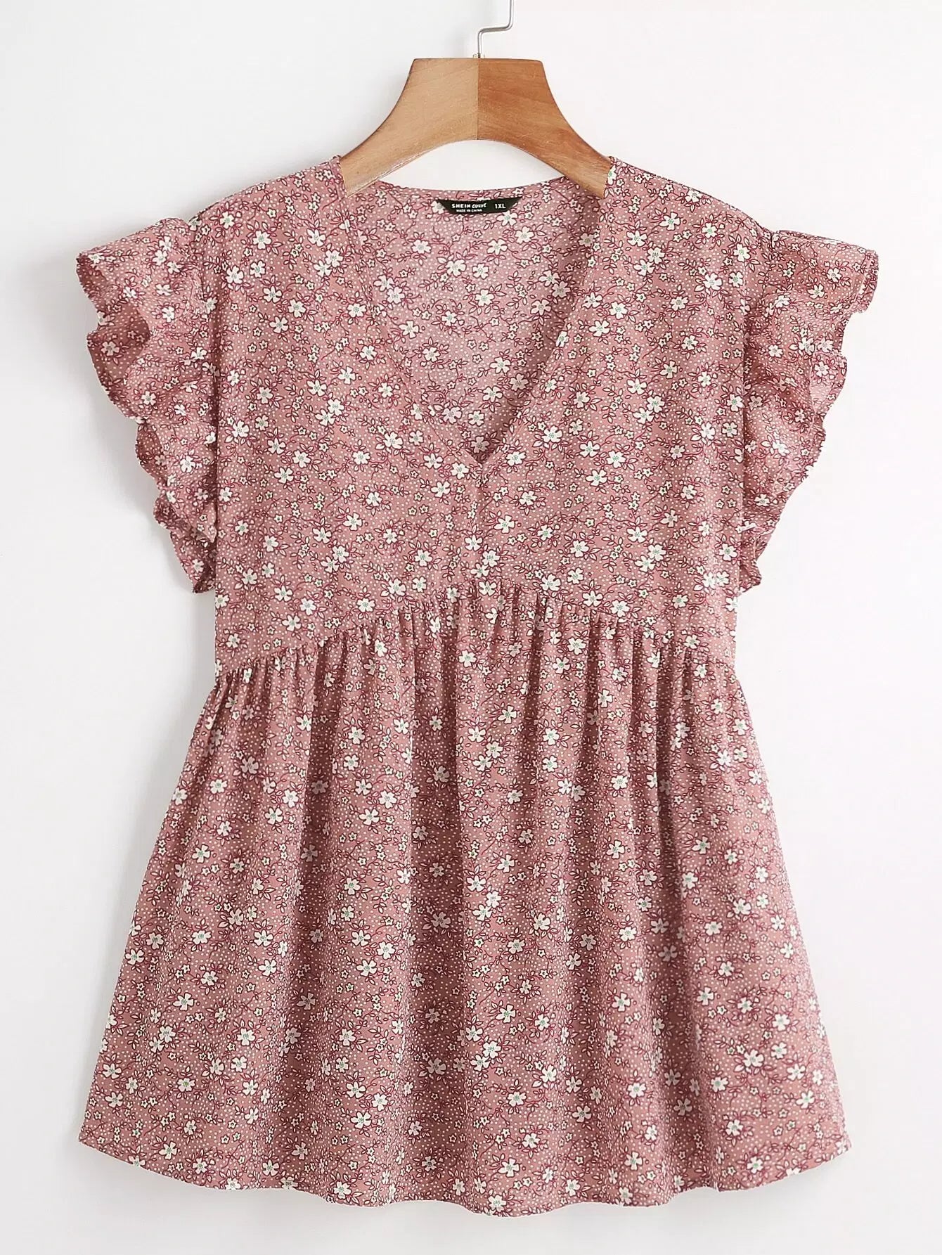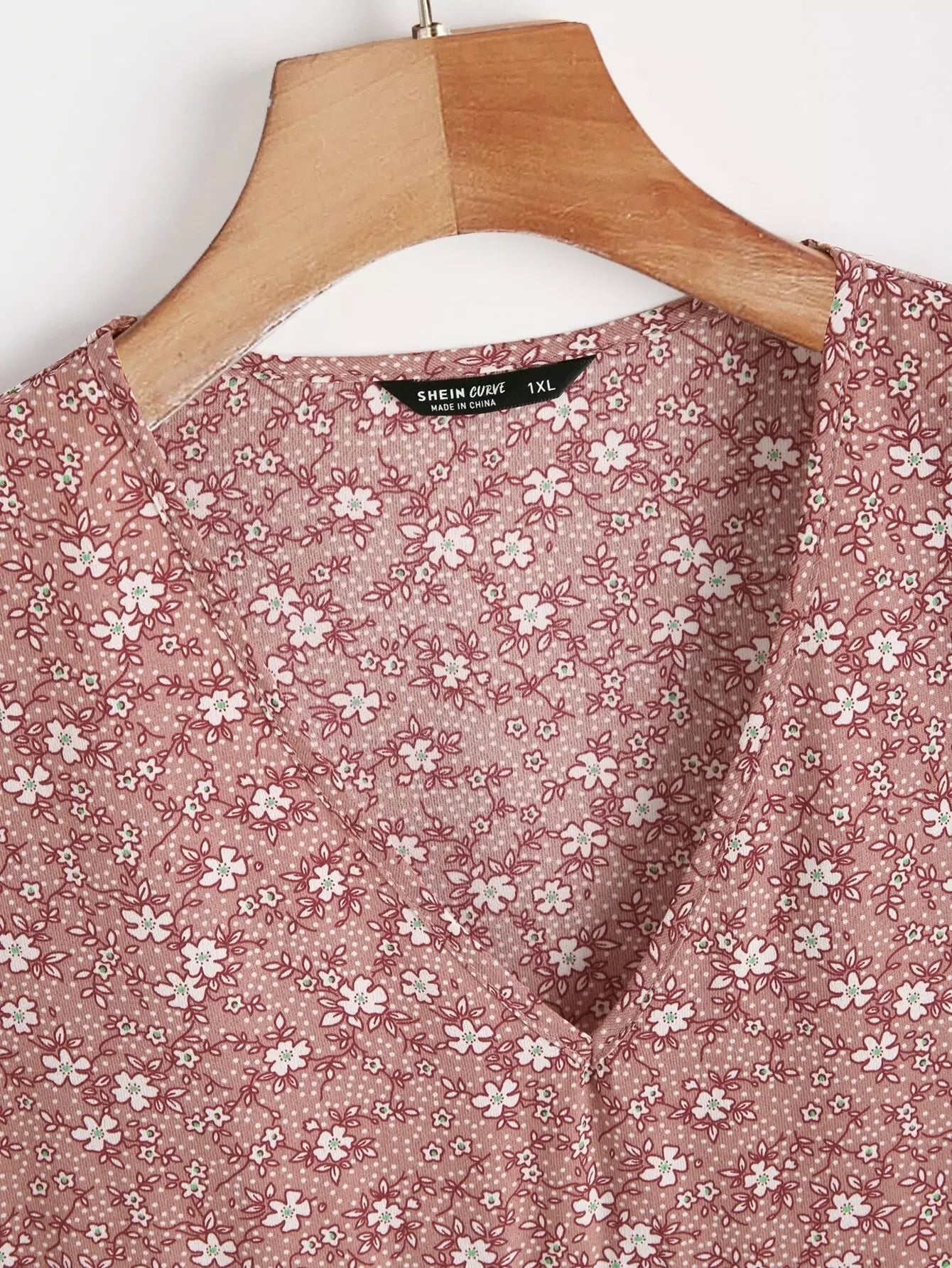 Plus Ditsy Floral Print Ruffle Trim Peplum Blouse