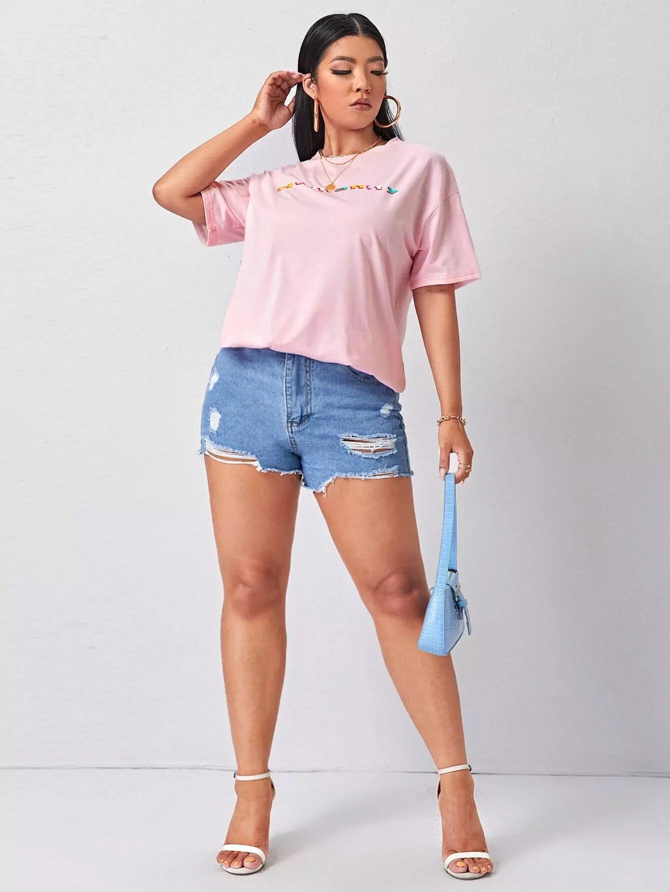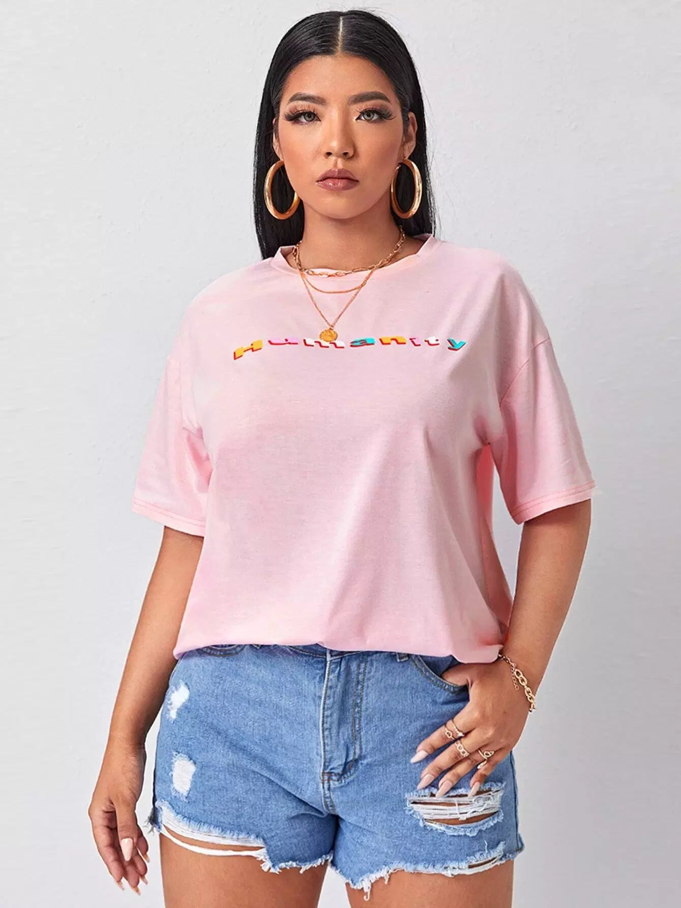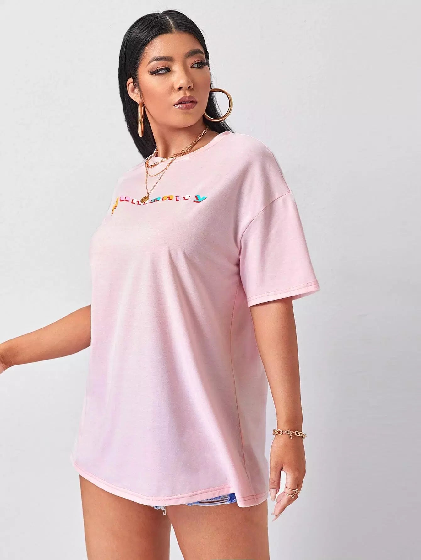 Women - Plus Drop Shoulder Letter Graphic Long Tee