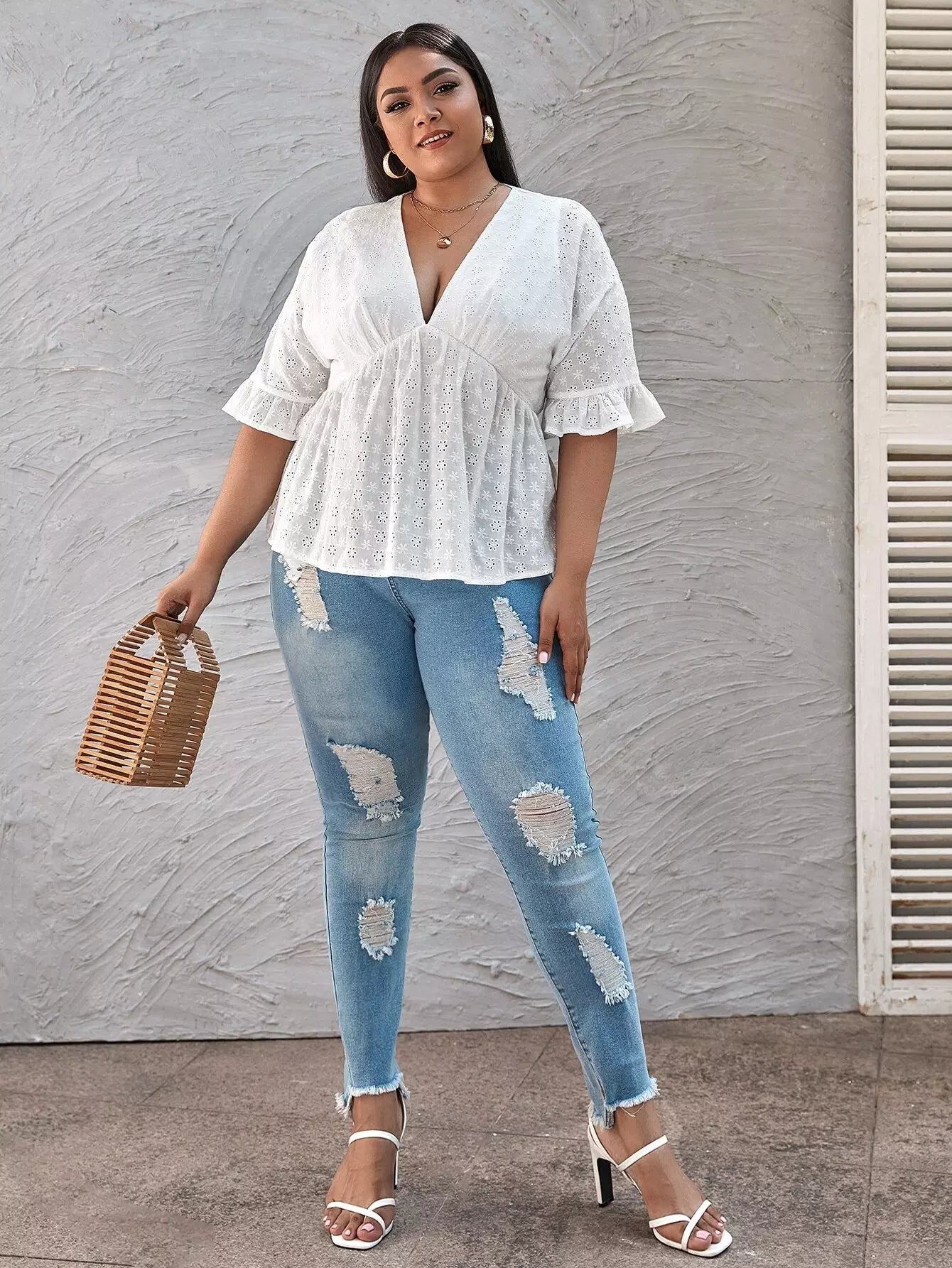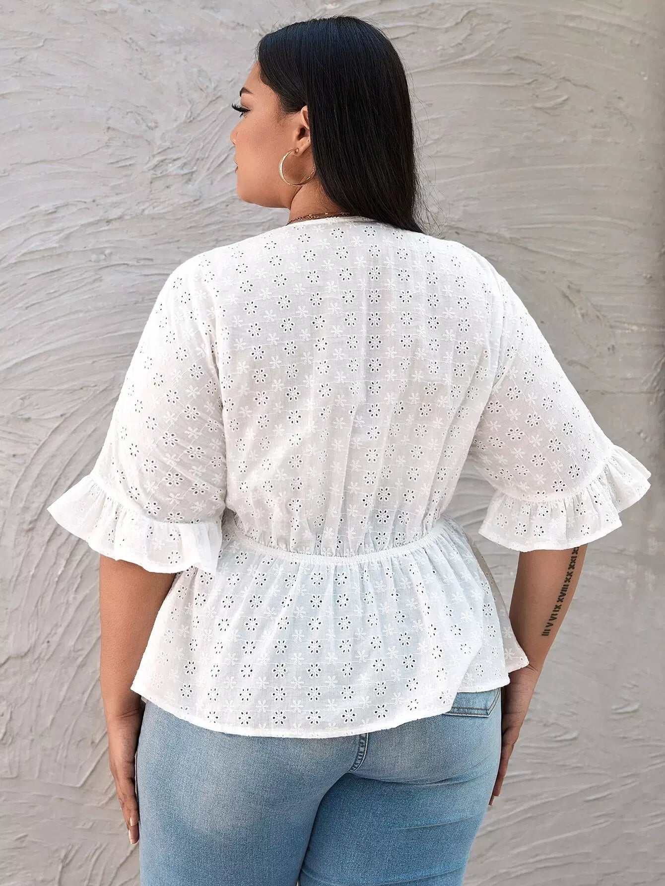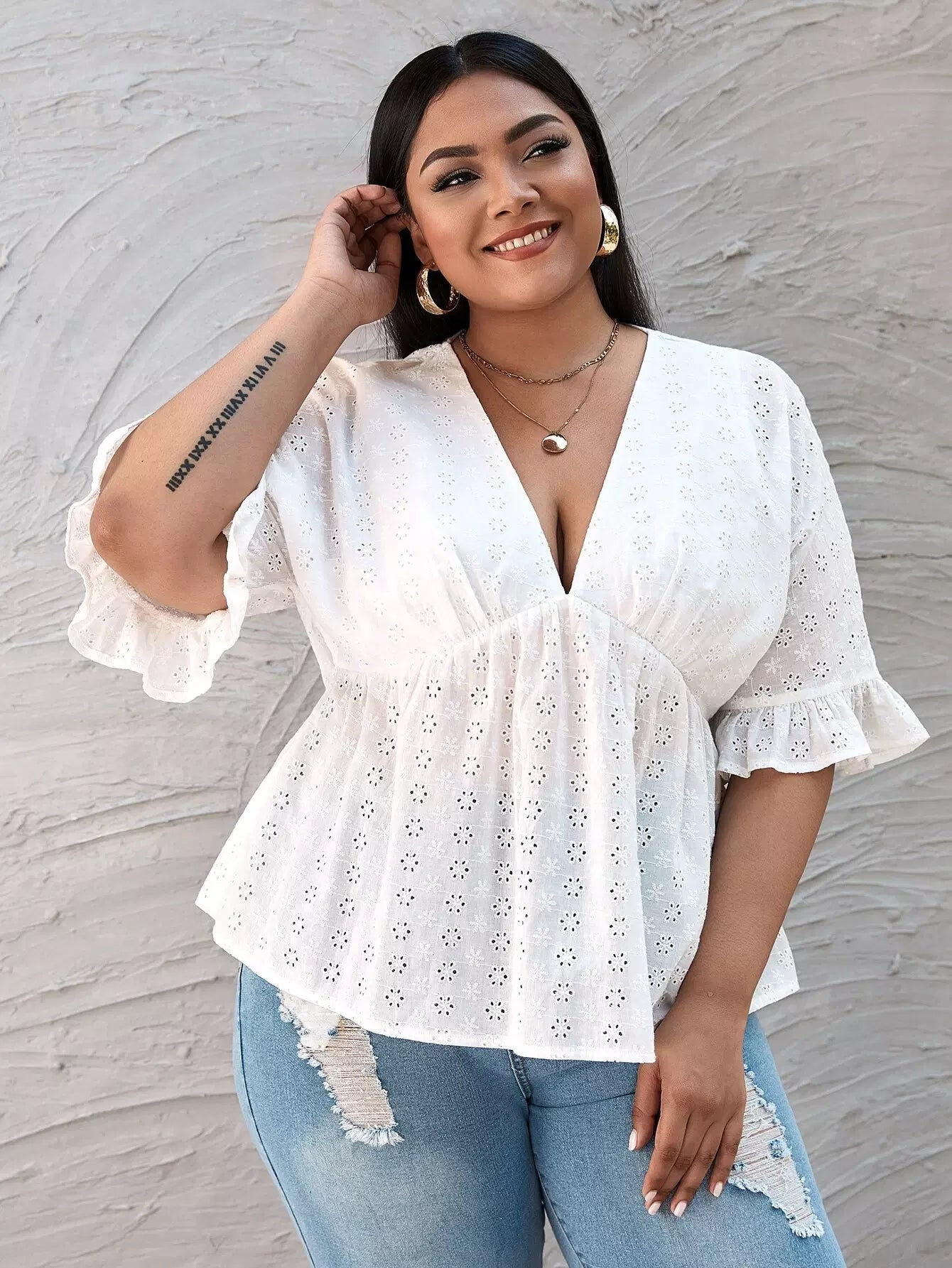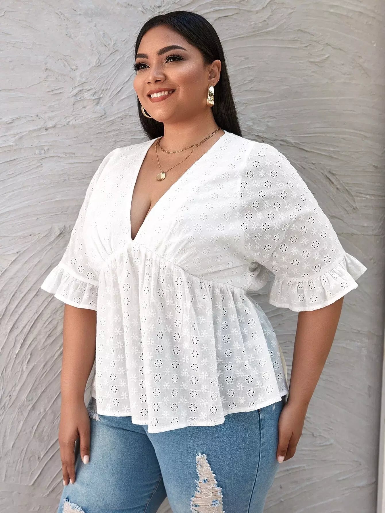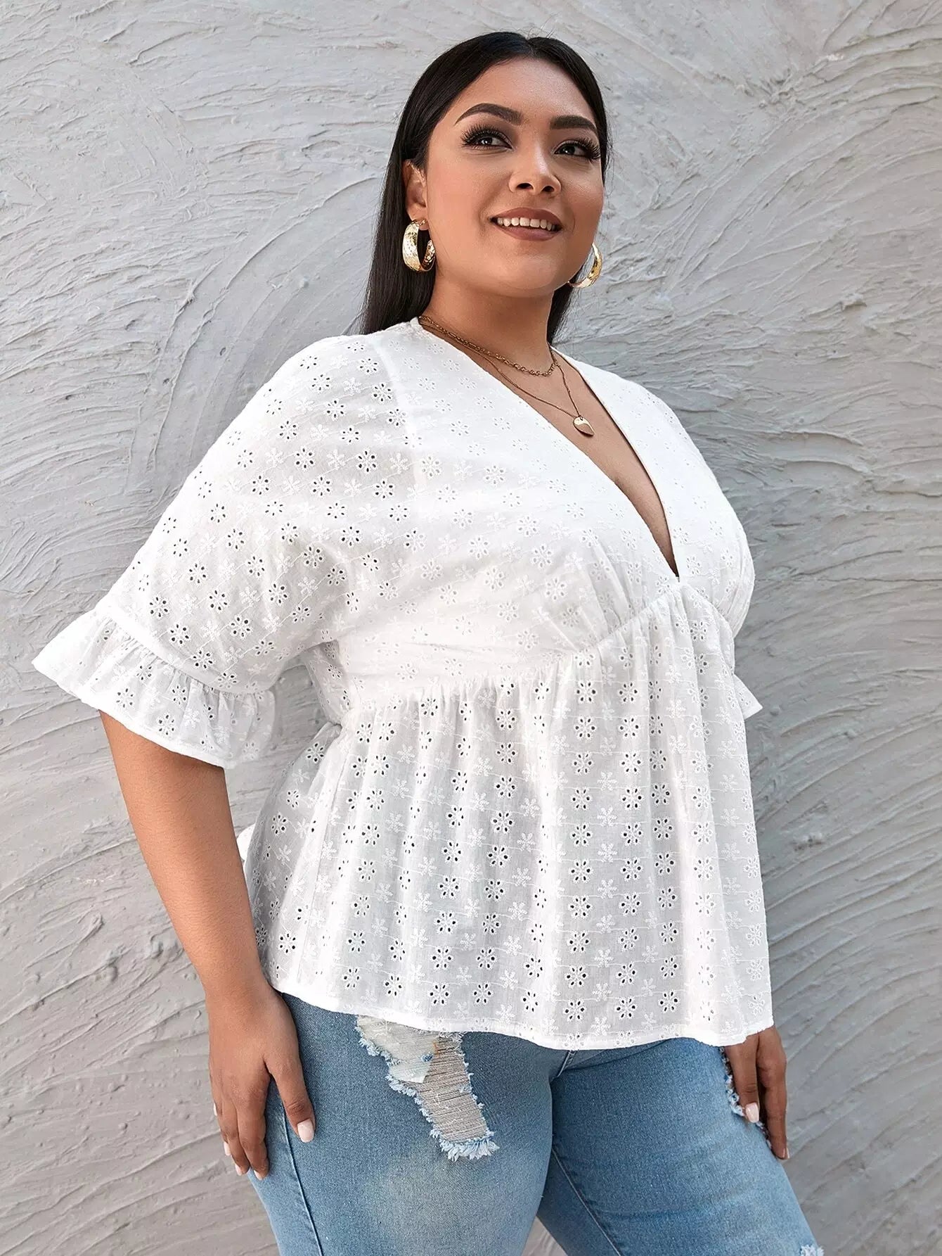 Plus Eyelet Embroidered Babydoll Blouse