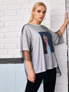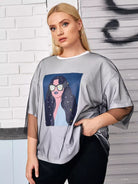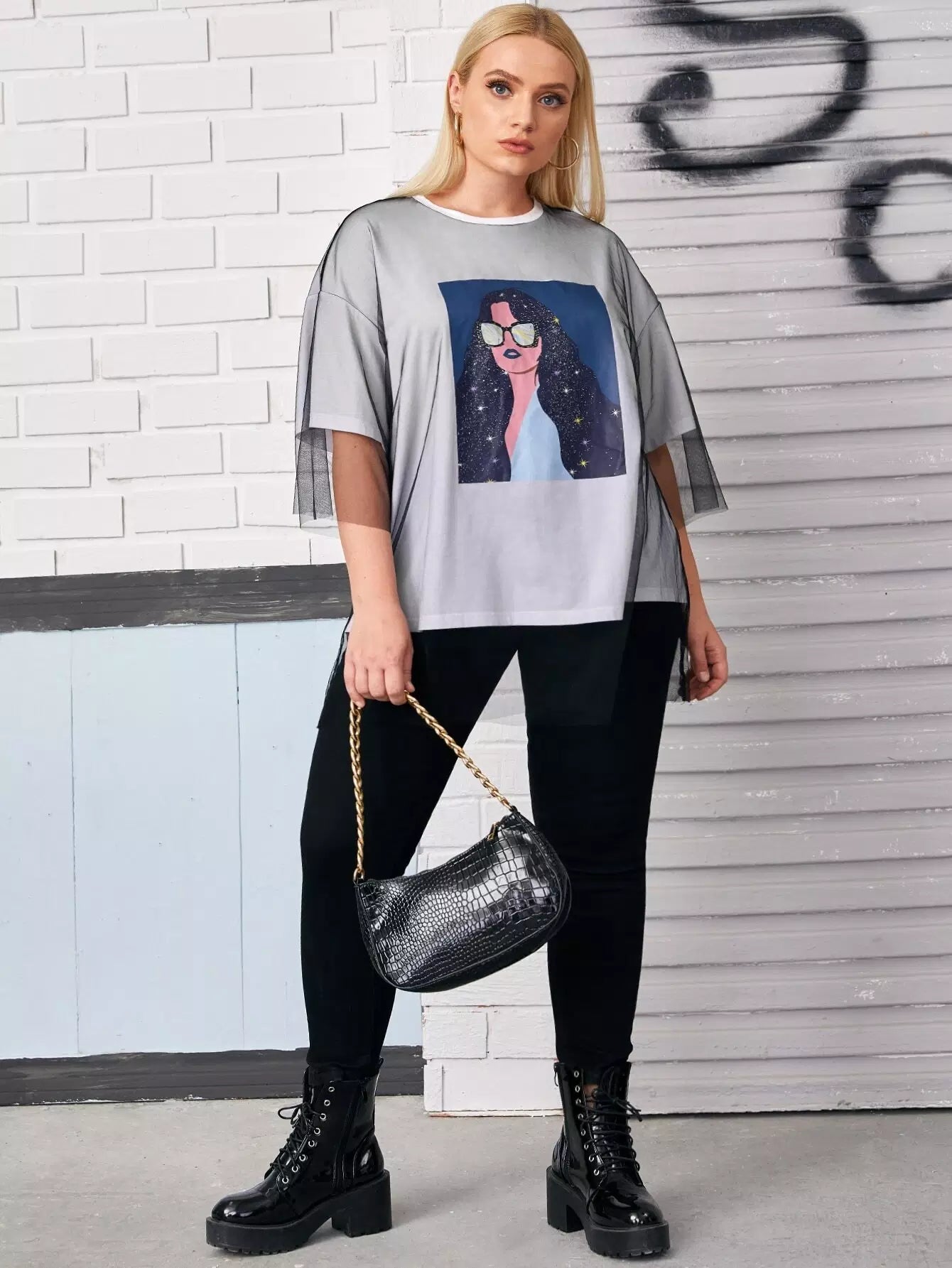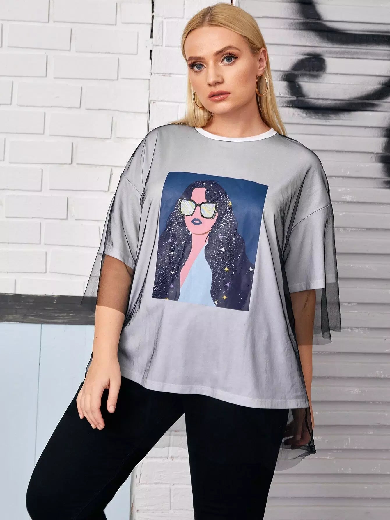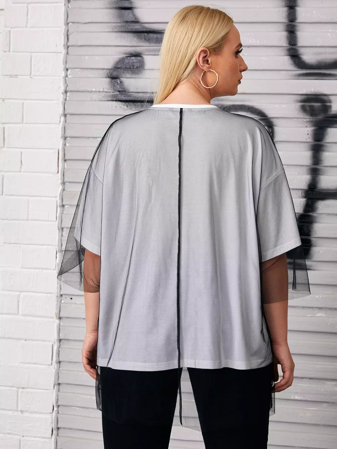 Plus Figure Graphic Drop Shoulder Mesh Tee
