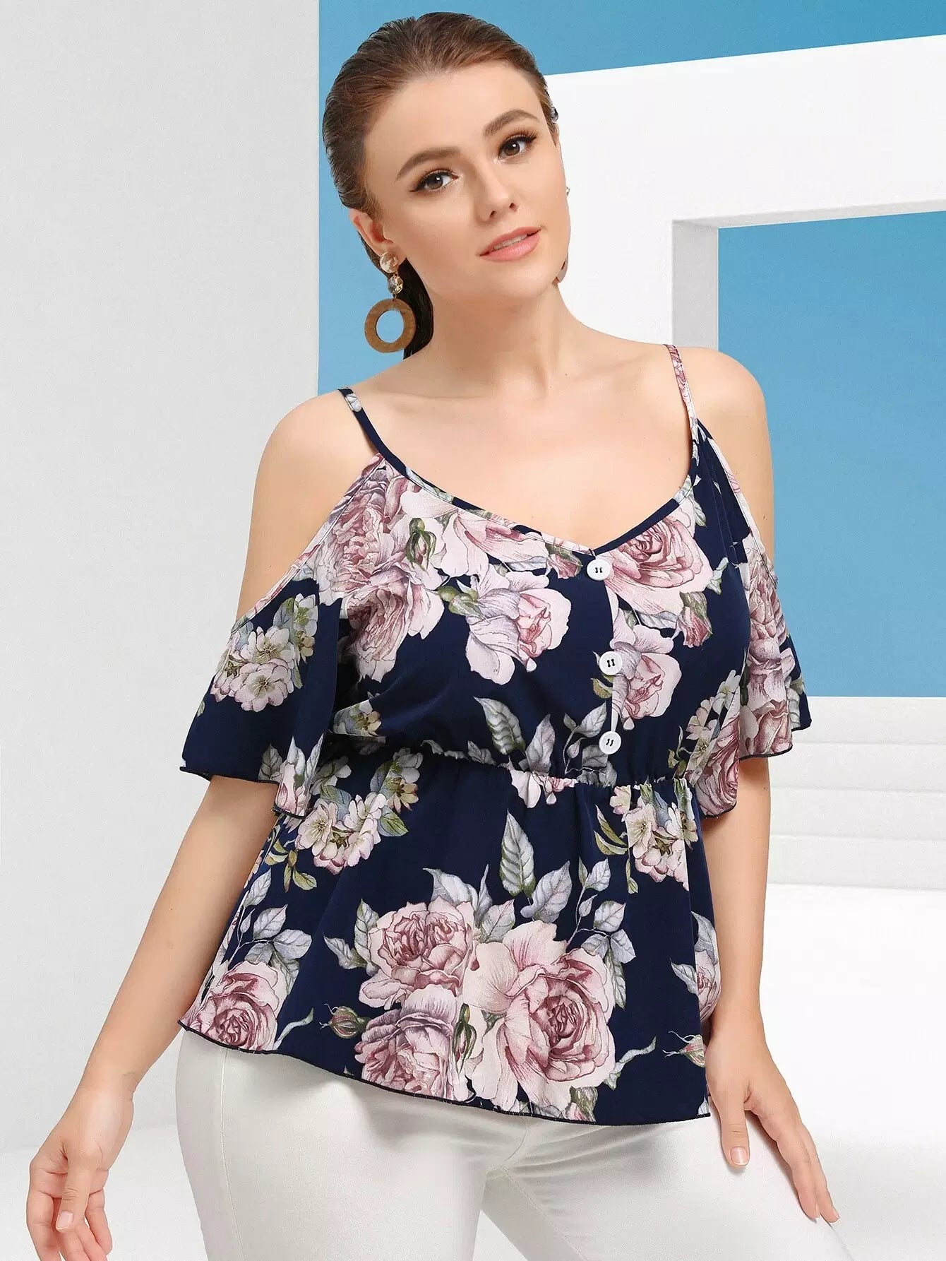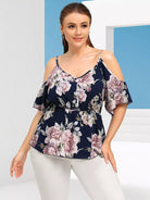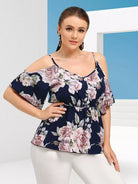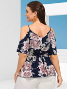 Plus Floral Print Cold Shoulder Peplum Blouse