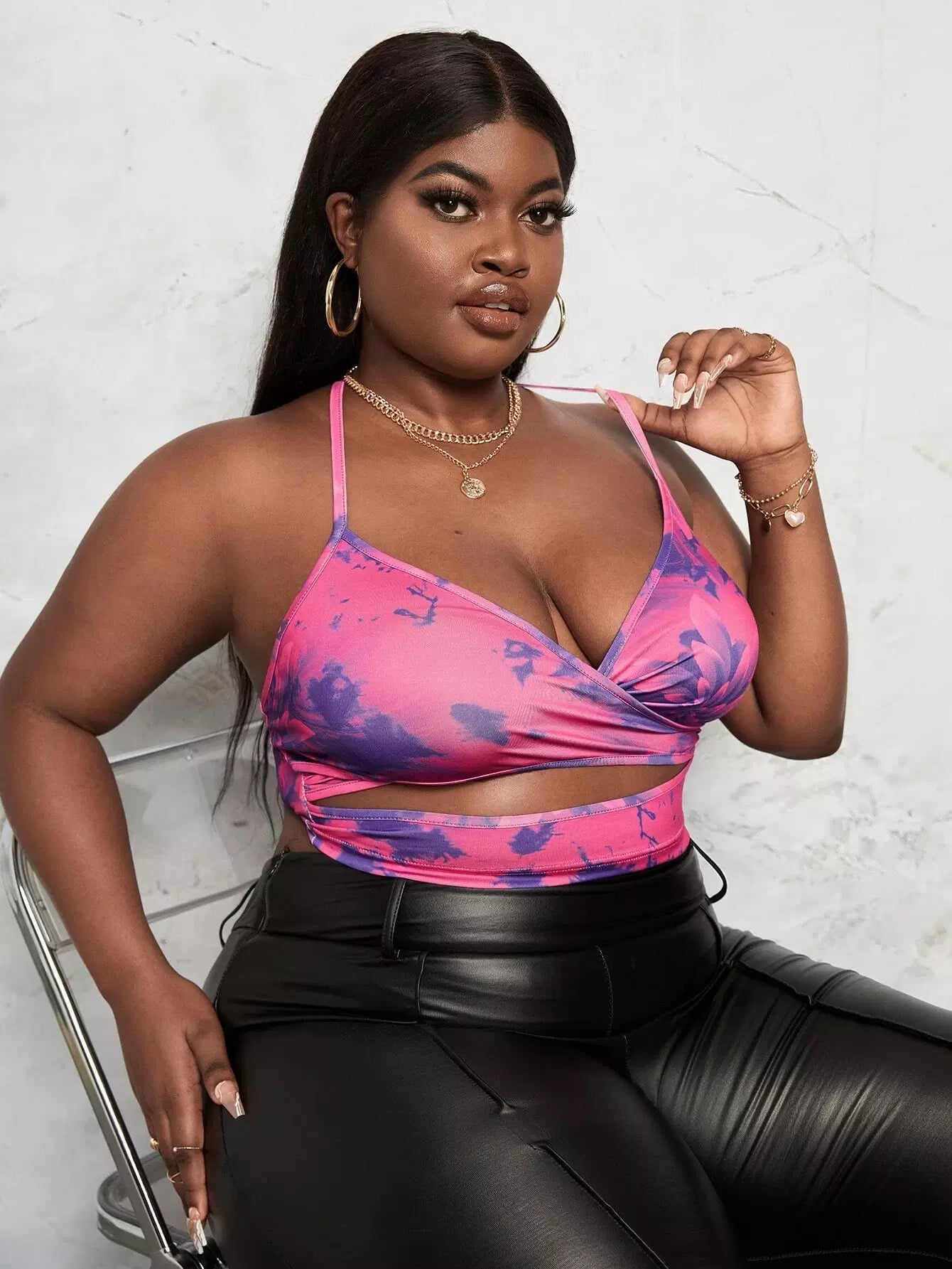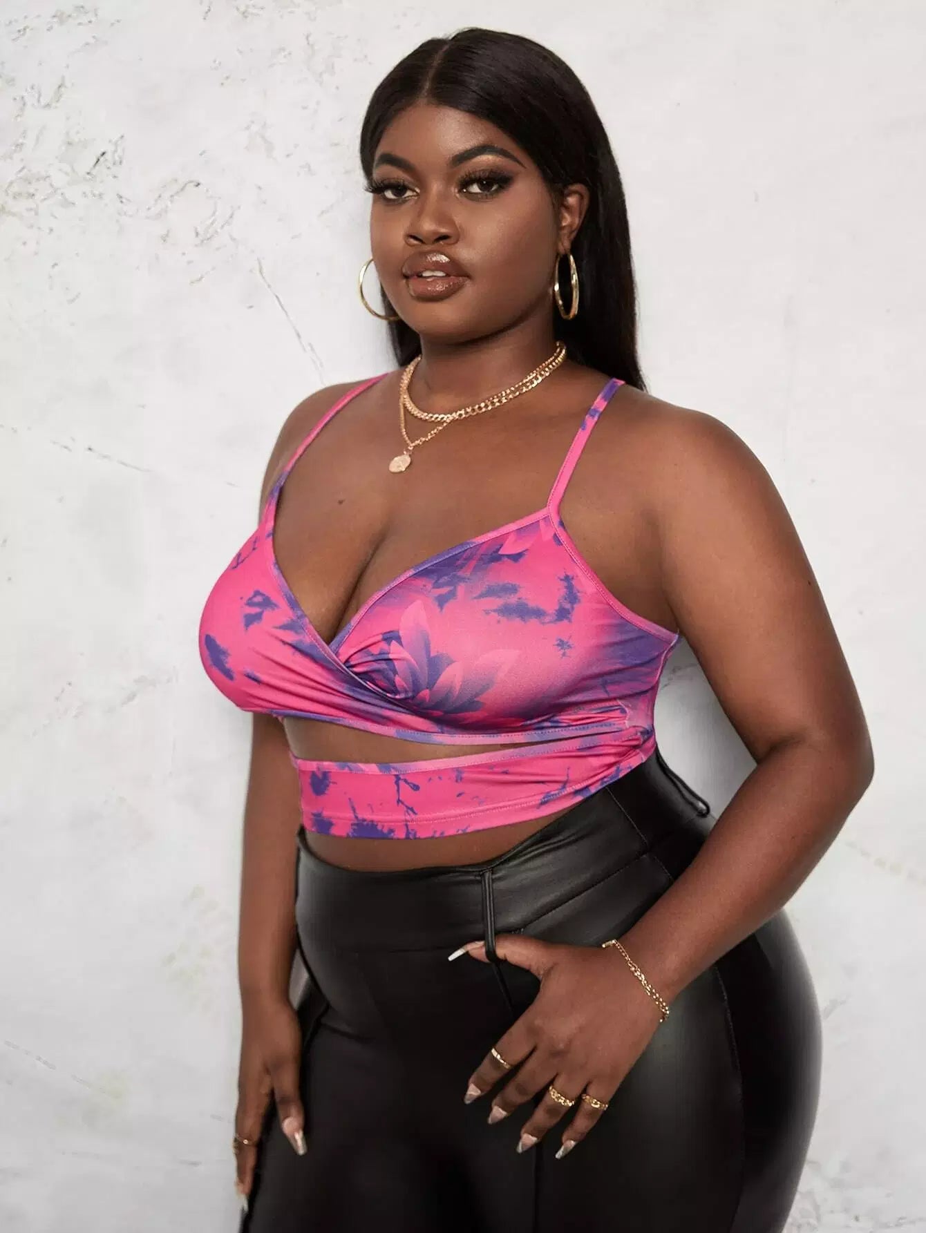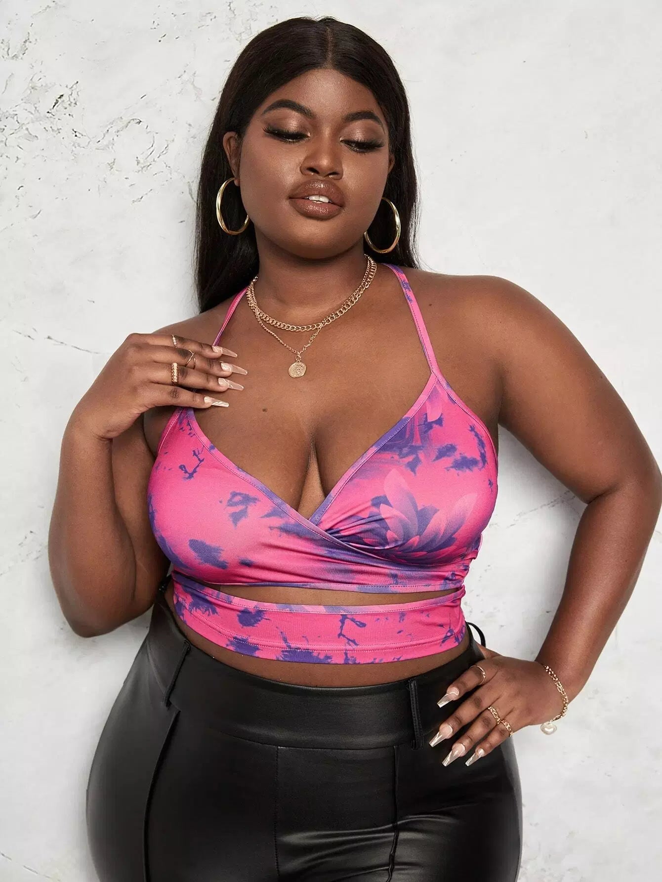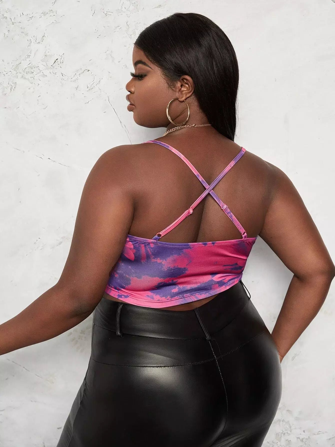 Plus Floral Print Cut Out Crisscross Back Cami Top