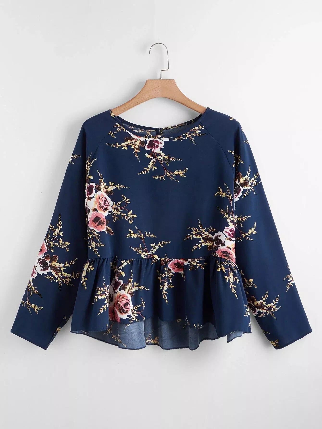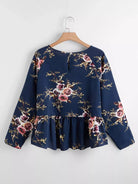 Plus Floral Print Dip Hem Babydoll Blouse