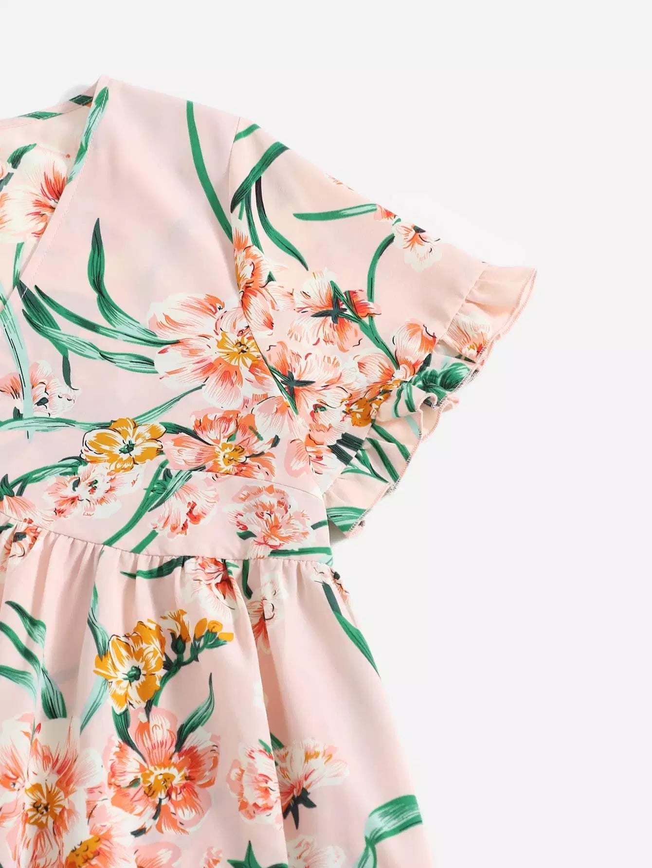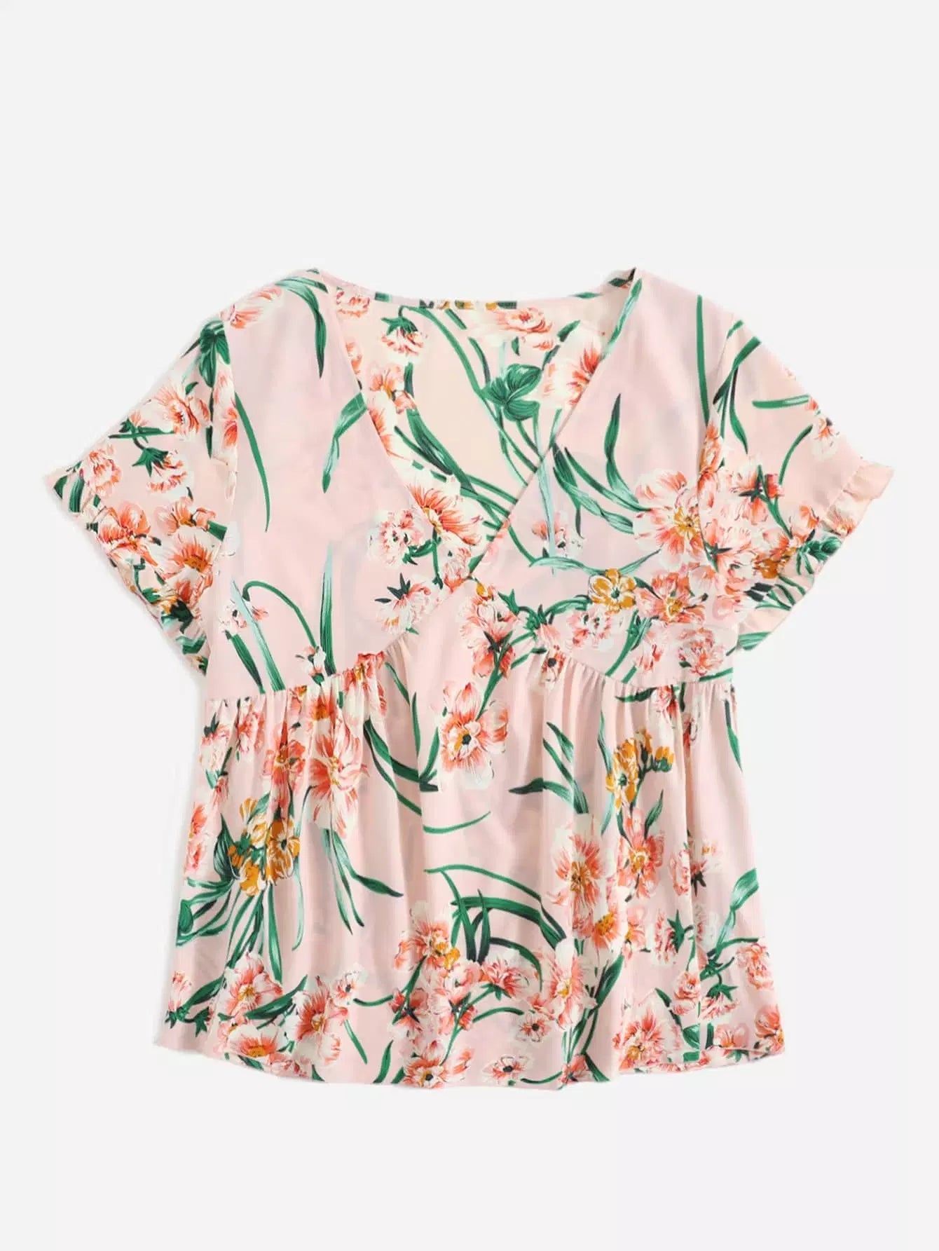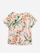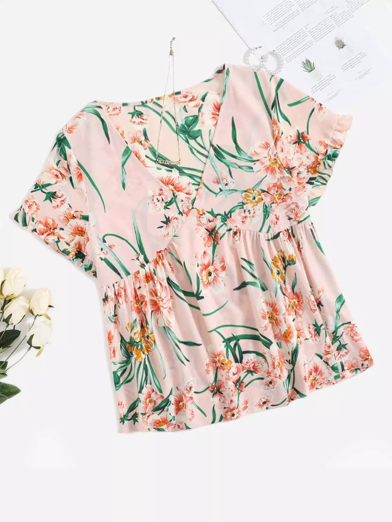 Plus Floral Print Frill Trim V-Neck Blouse