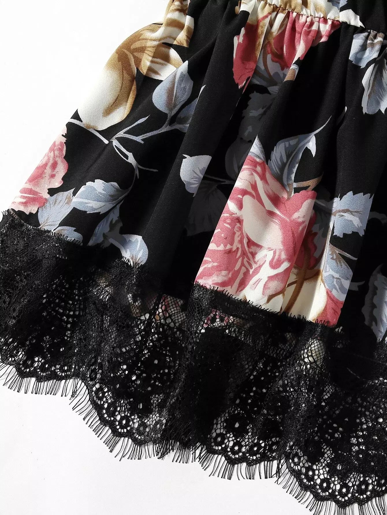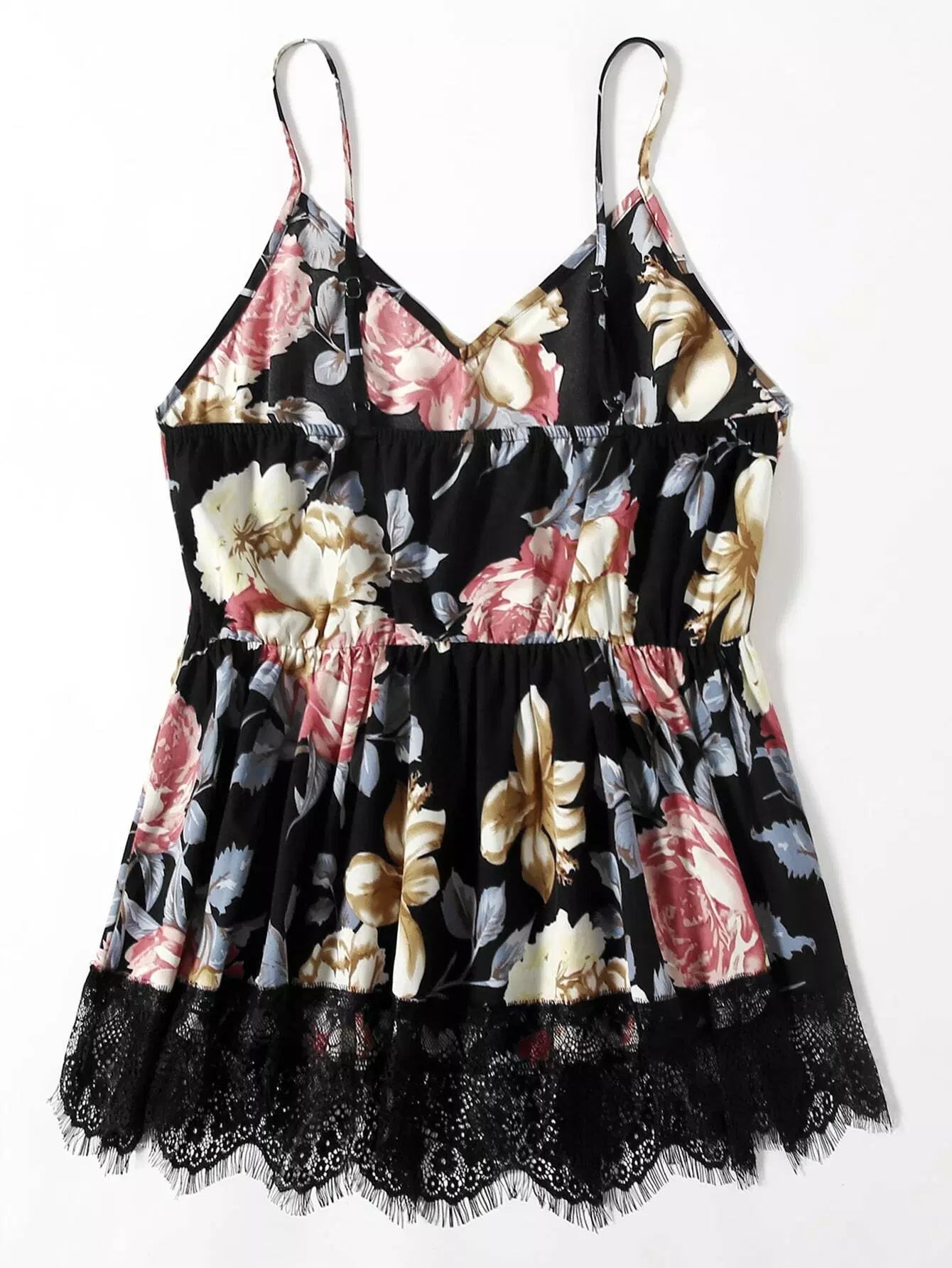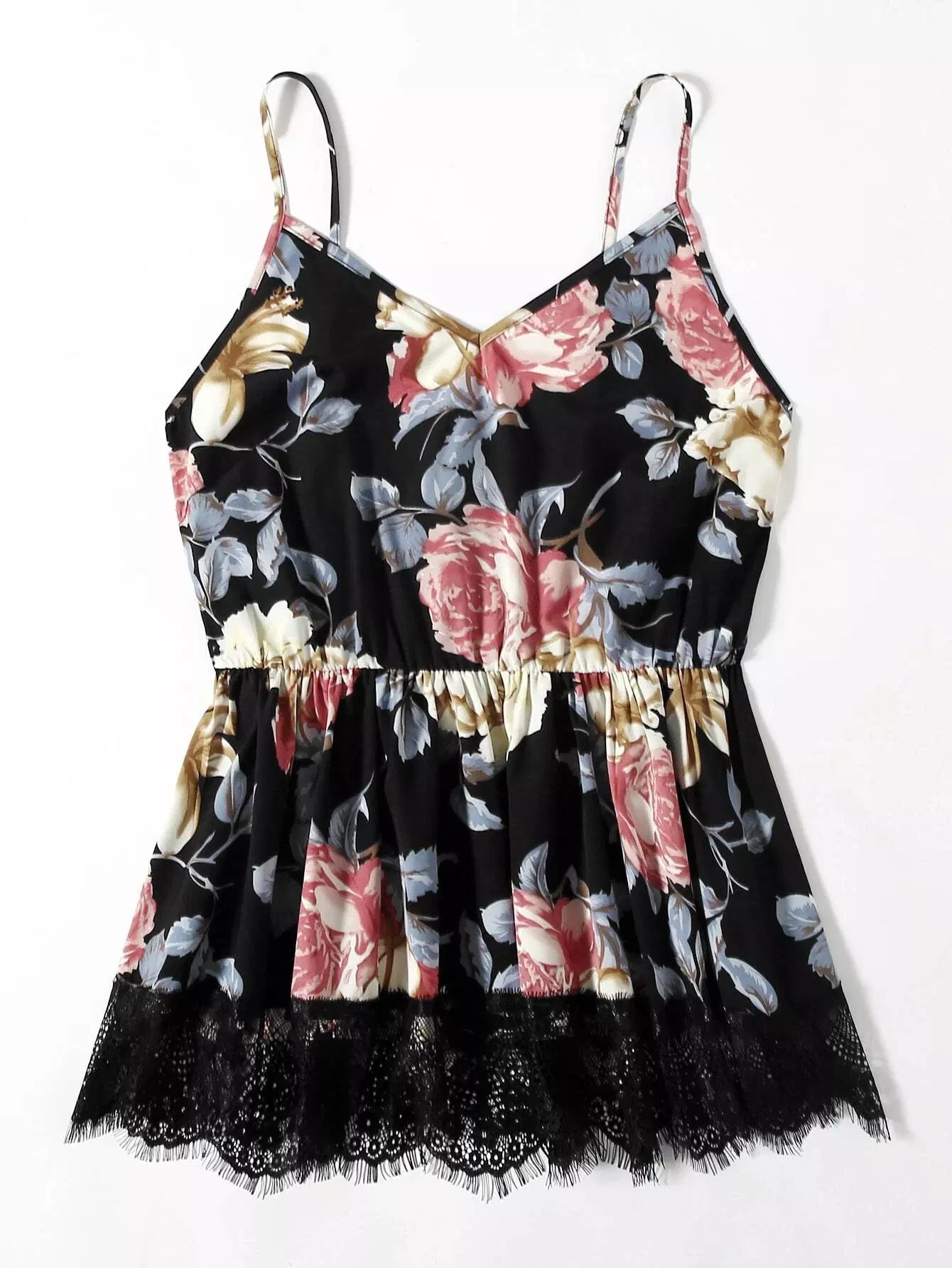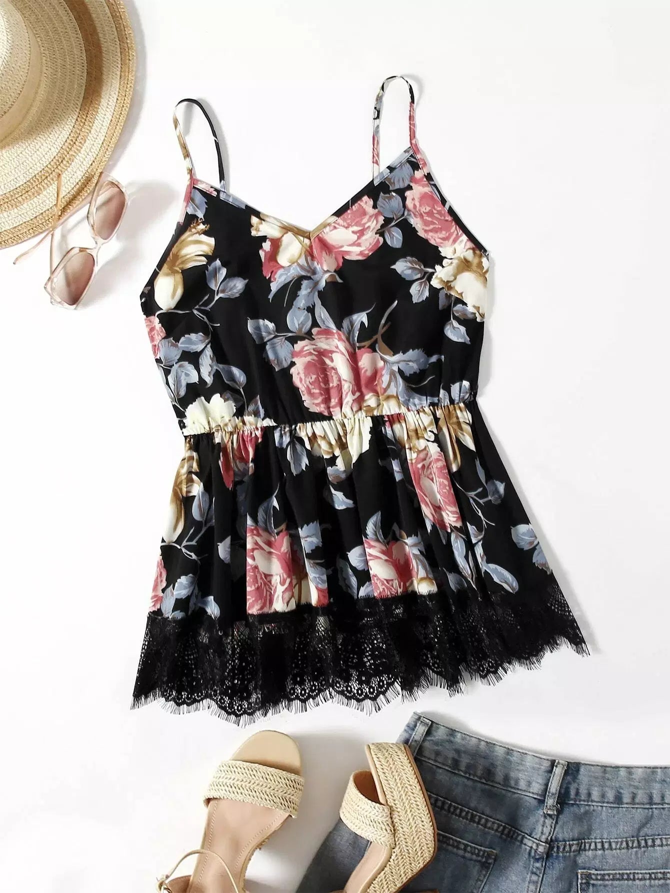 Women - Plus Floral Print Lace Hem Peplum Cami Top