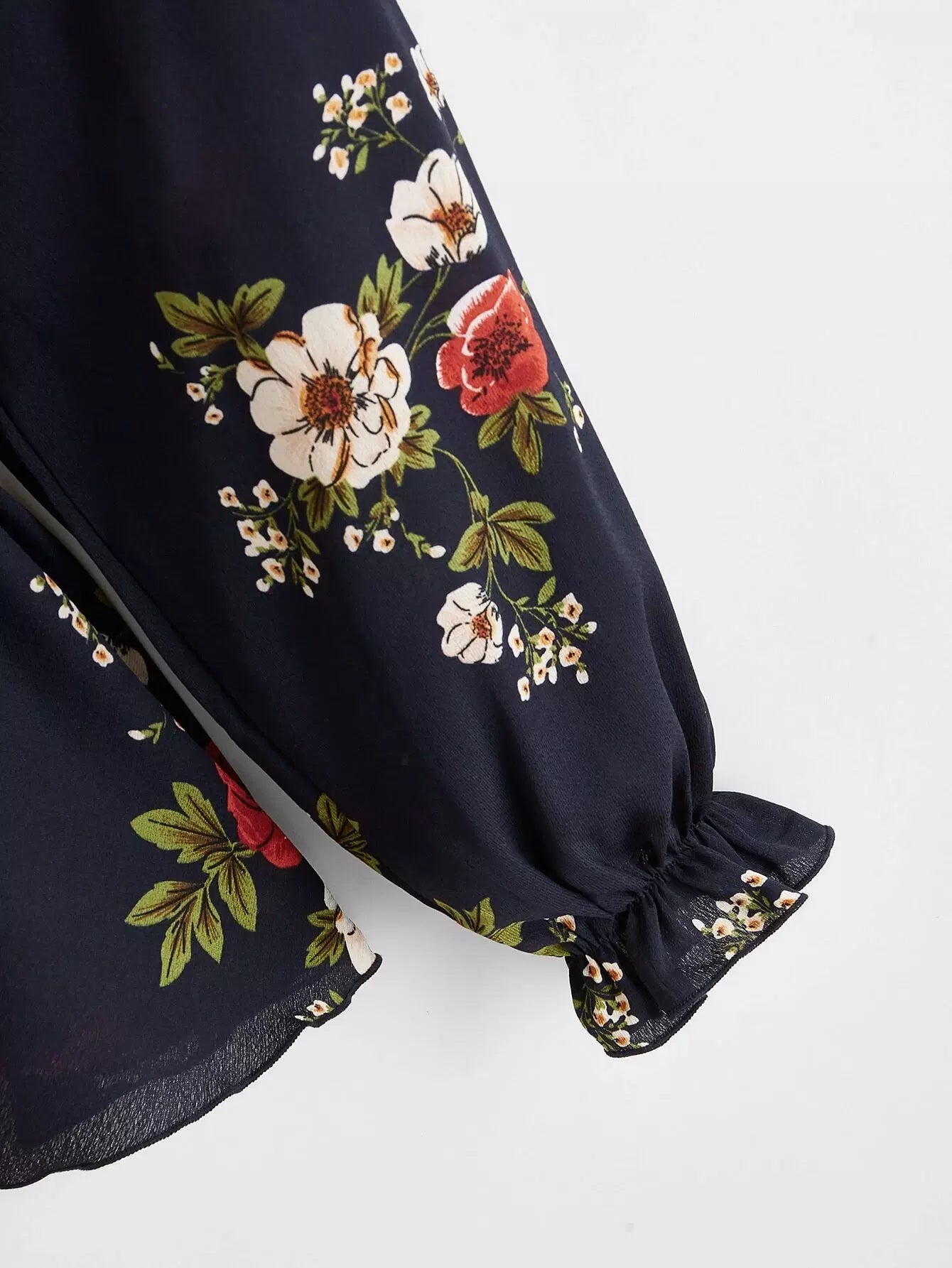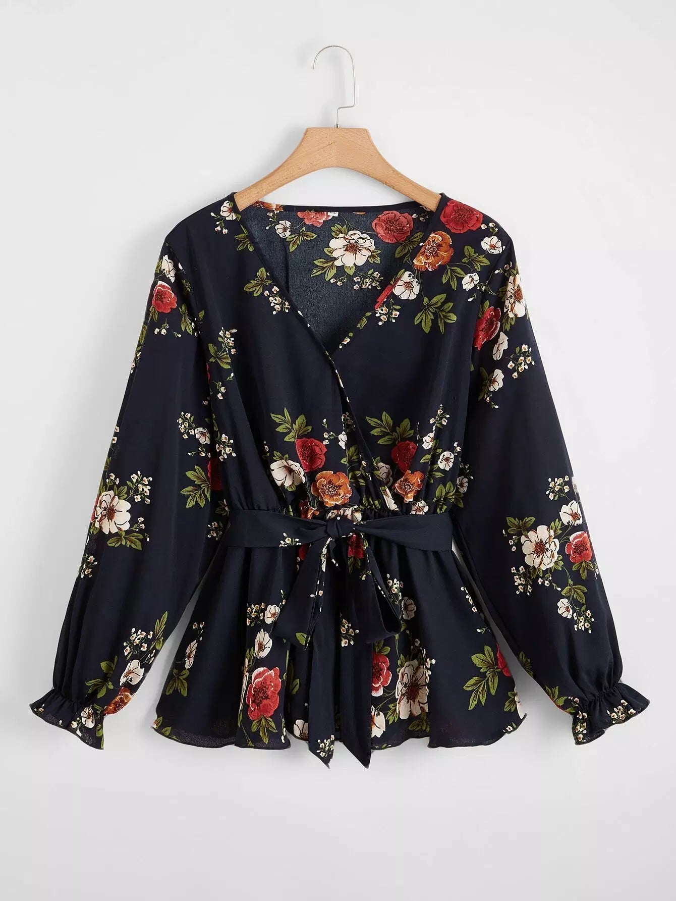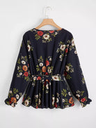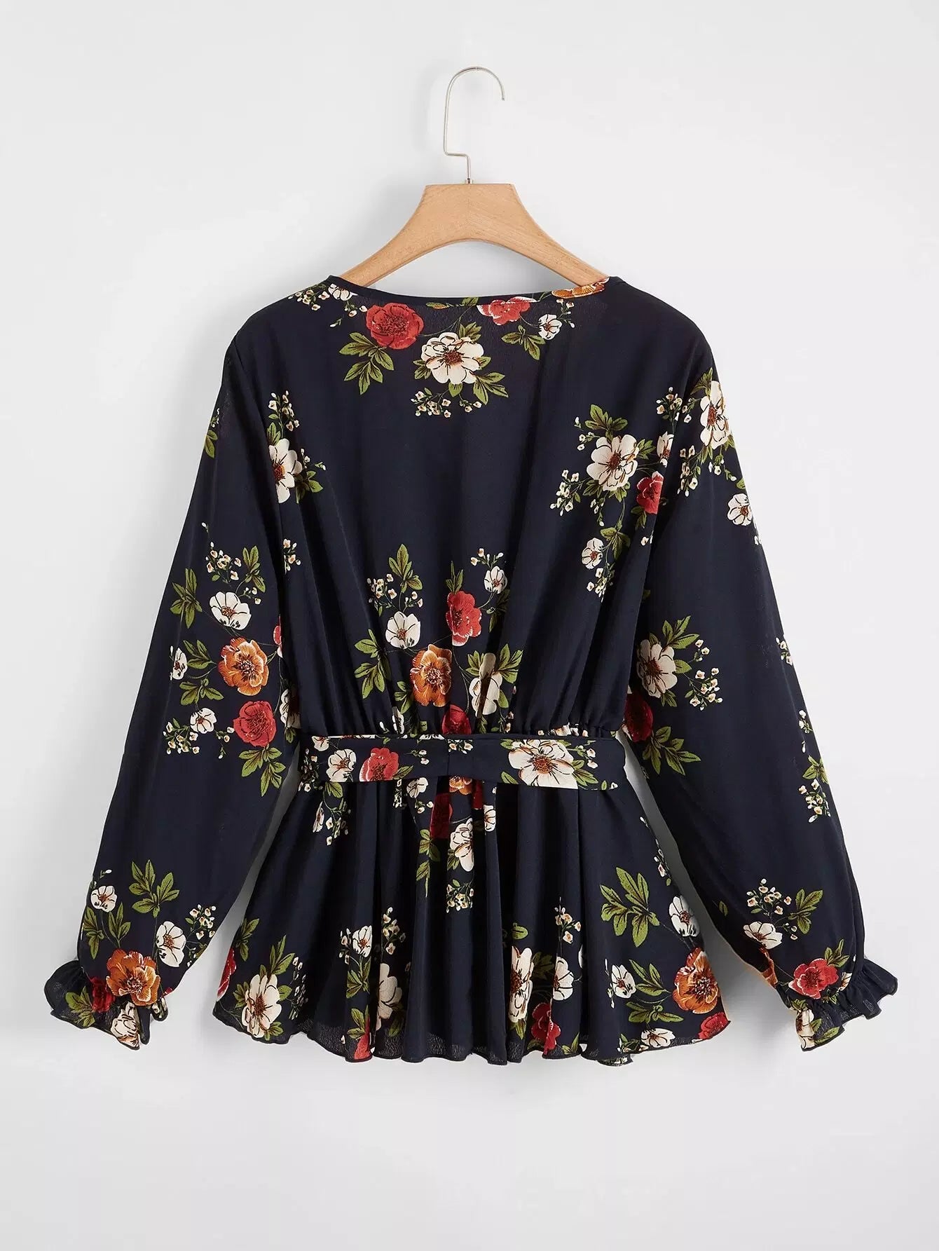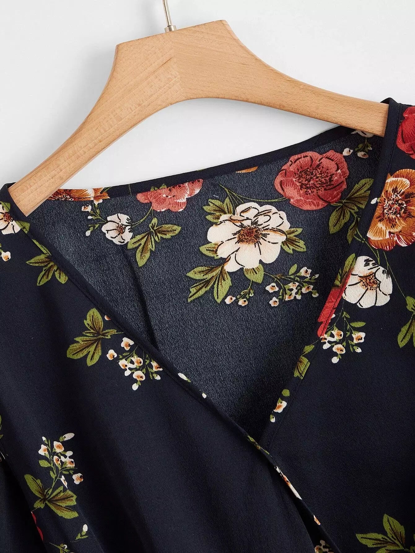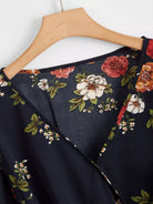 Plus Flounce Sleeve Floral Print Top Without Belt