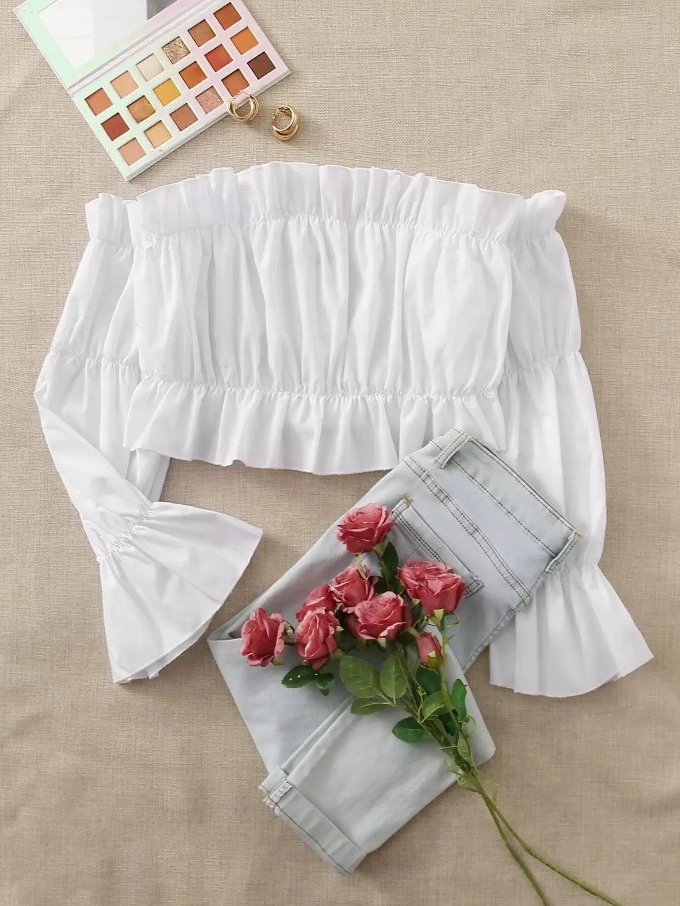 Plus Flounce Sleeve Off The Shoulder Top