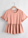 Plus Flounce Sleeve Ruffle Hem Blouse